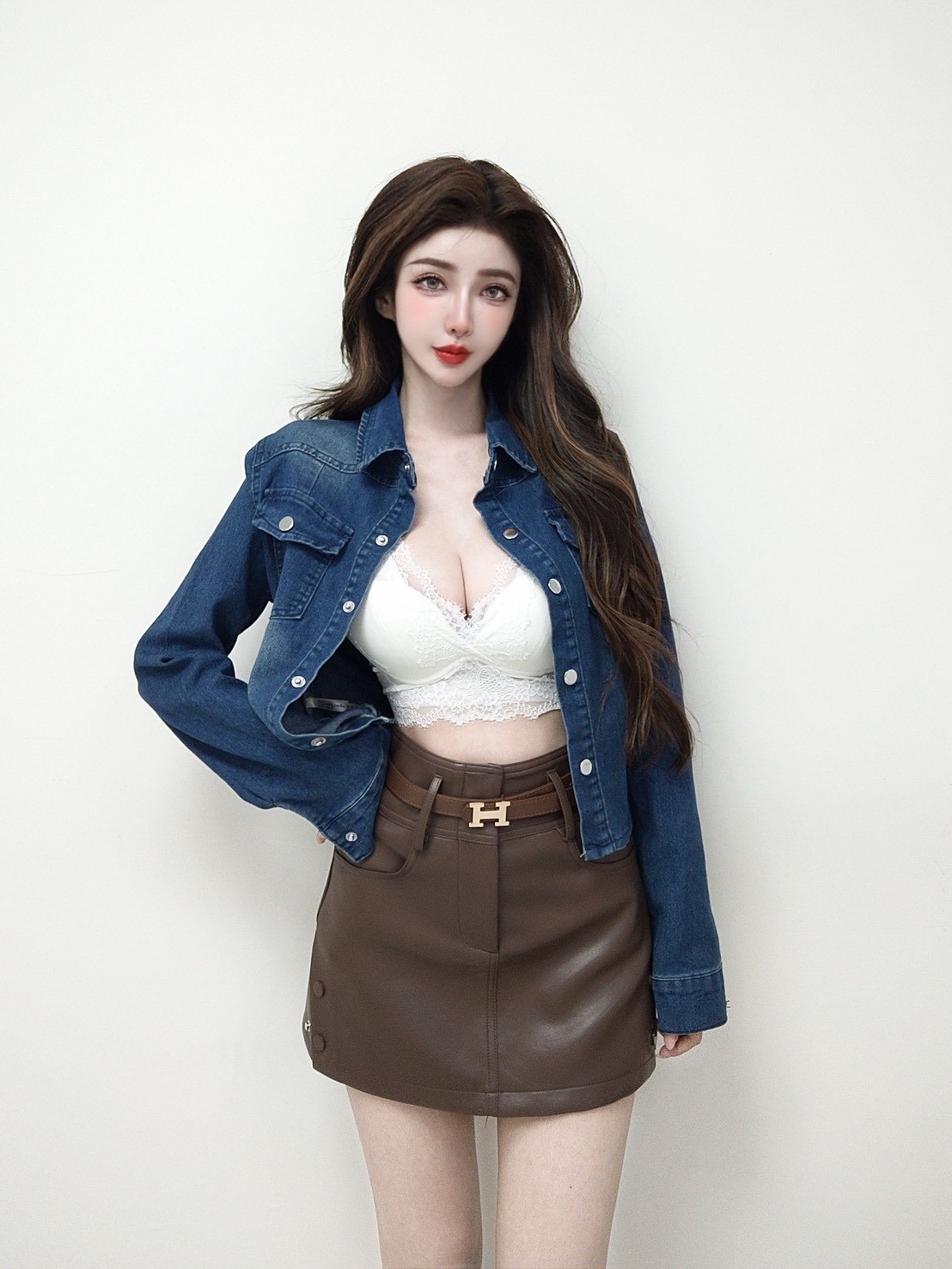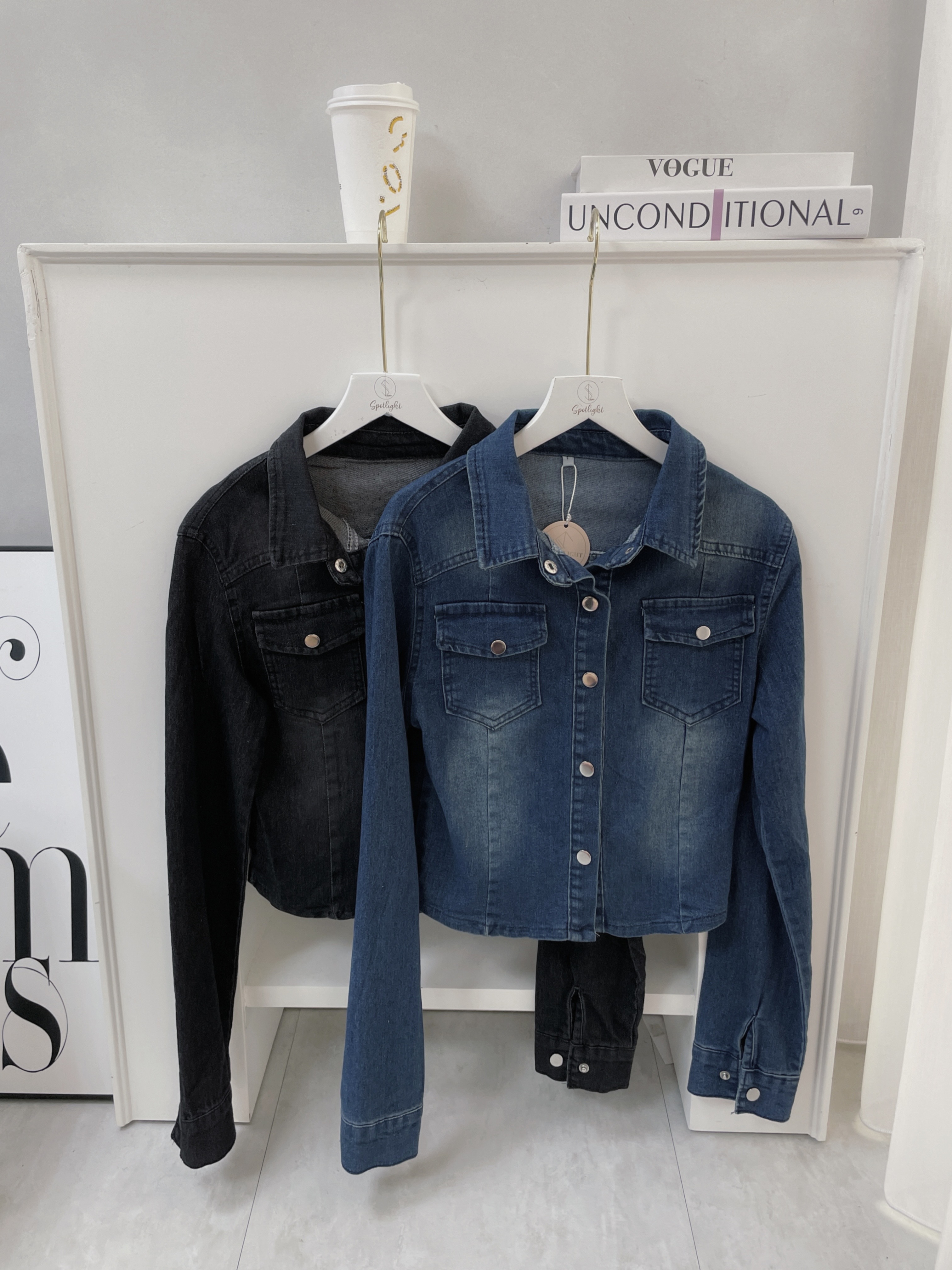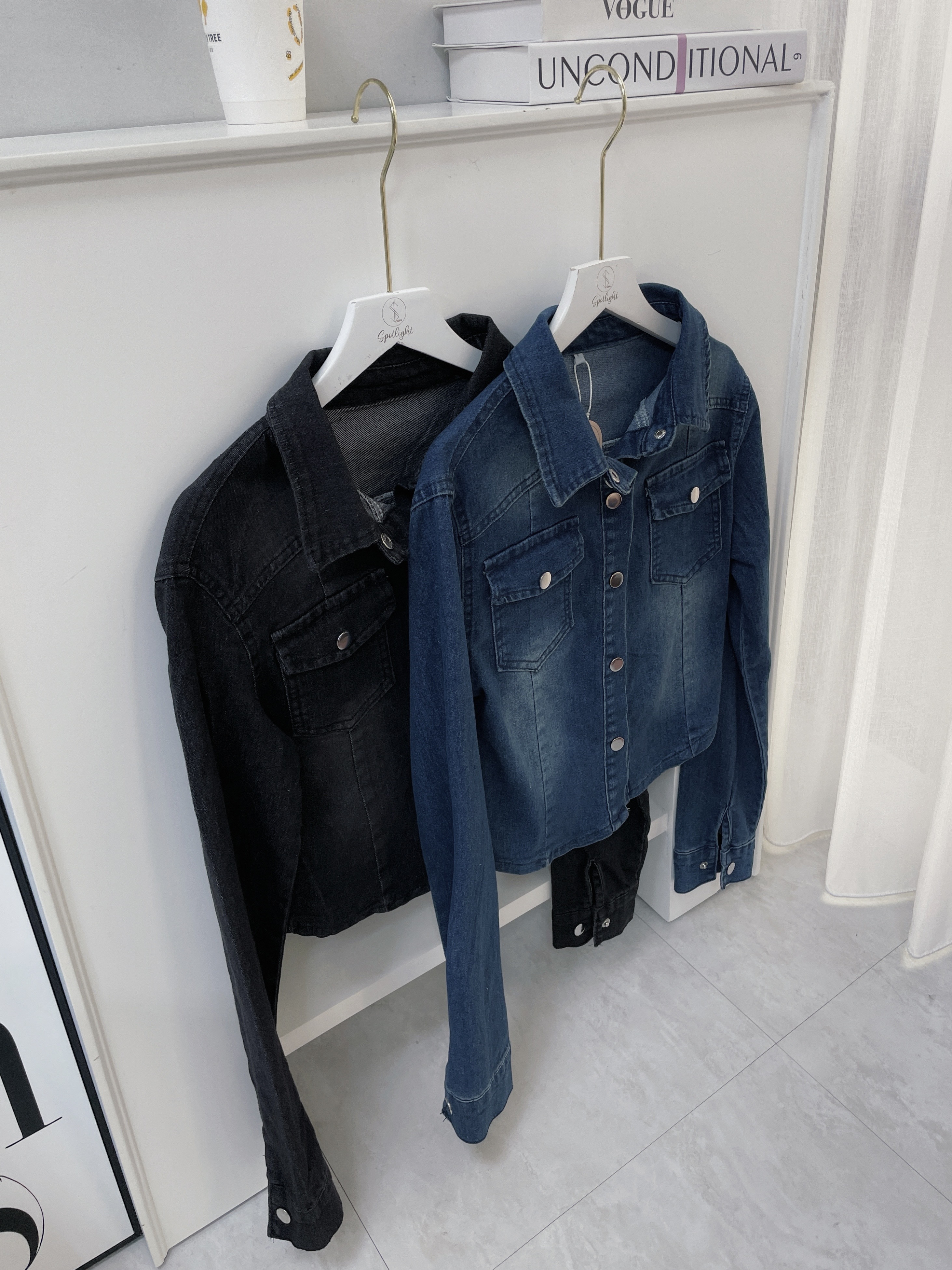 韓國極致貼身銀釦牛仔襯衫
