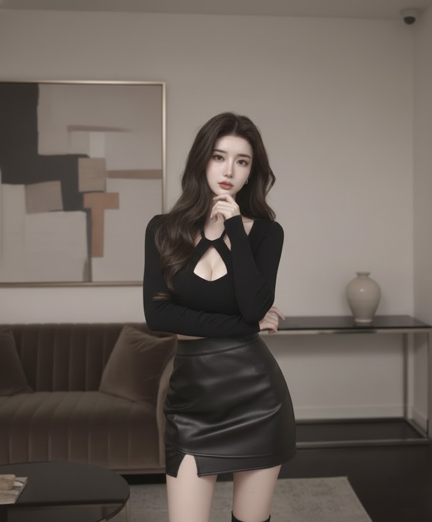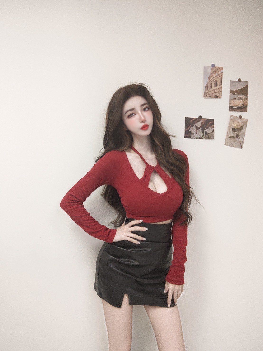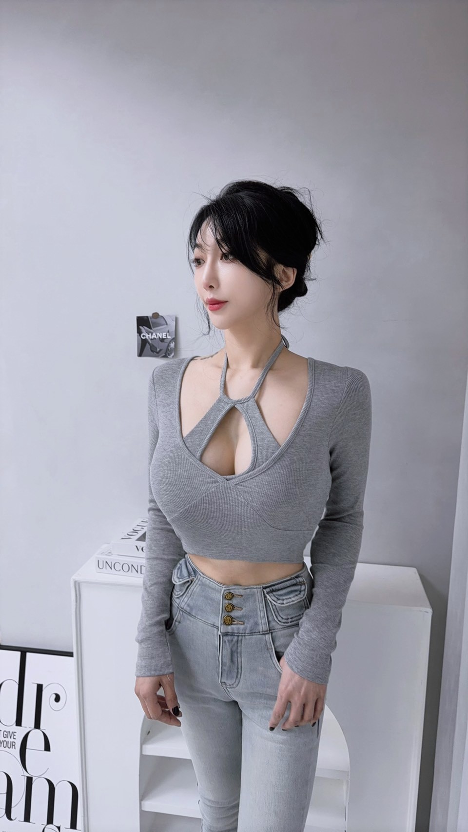性感陷阱 羅紋繞脖挖胸假兩件式上衣