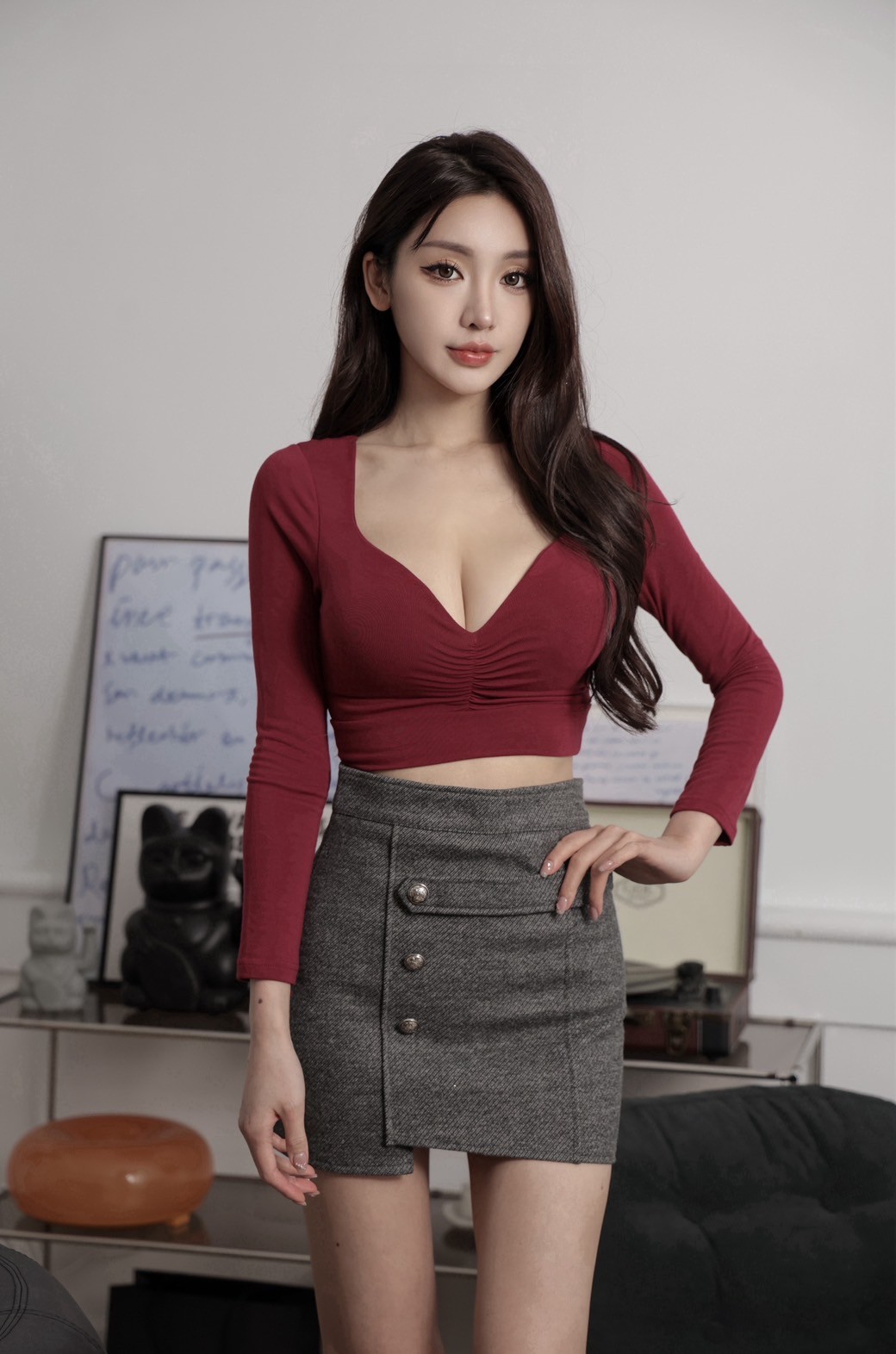 性感up up 桃心胸抓皺厚杯長袖發熱上衣
