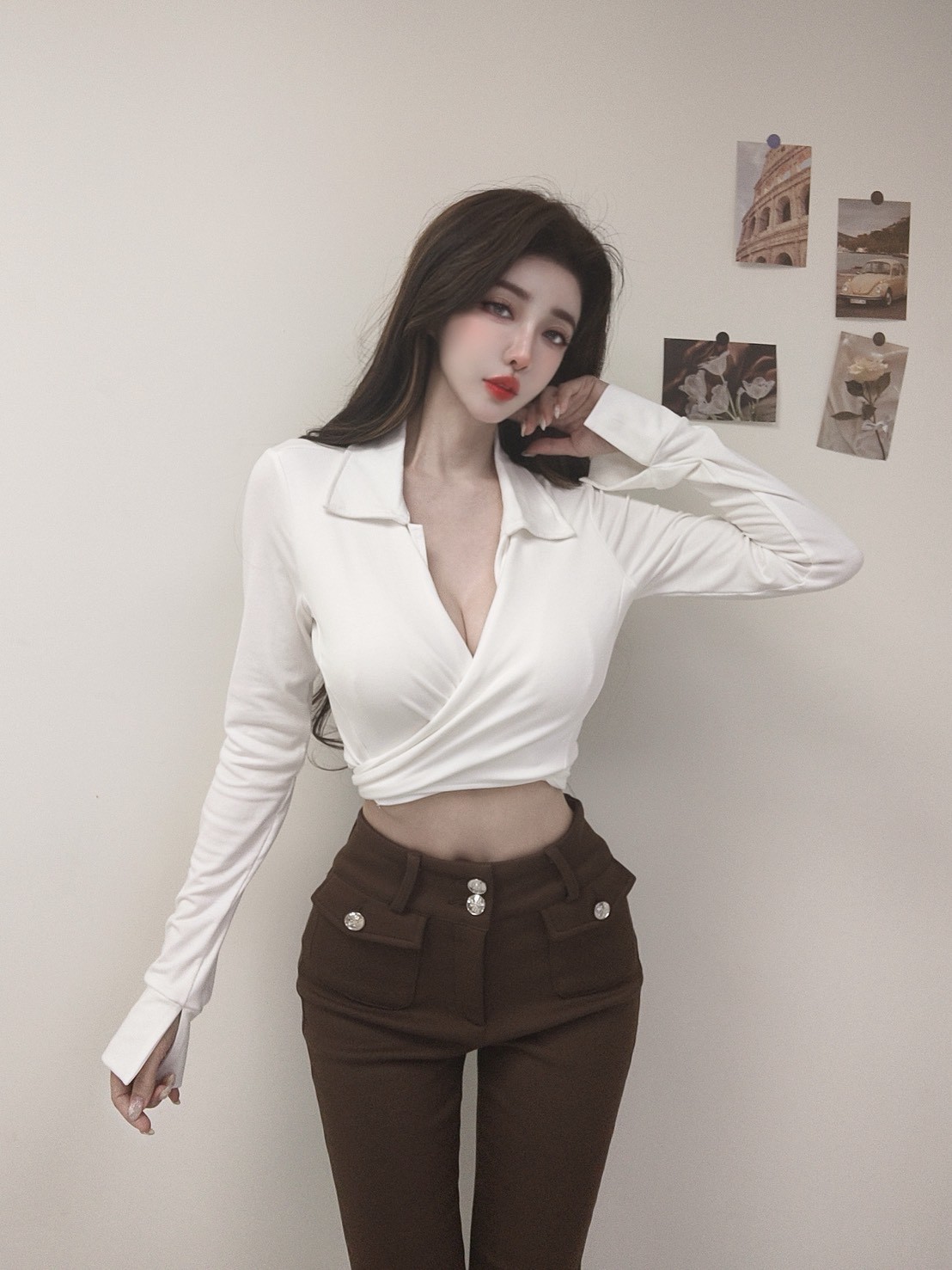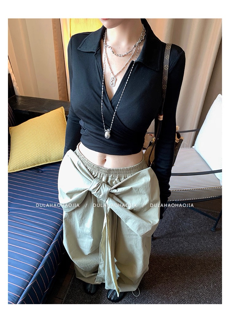 絕美貼身 襯衫式棉質綁帶上衣