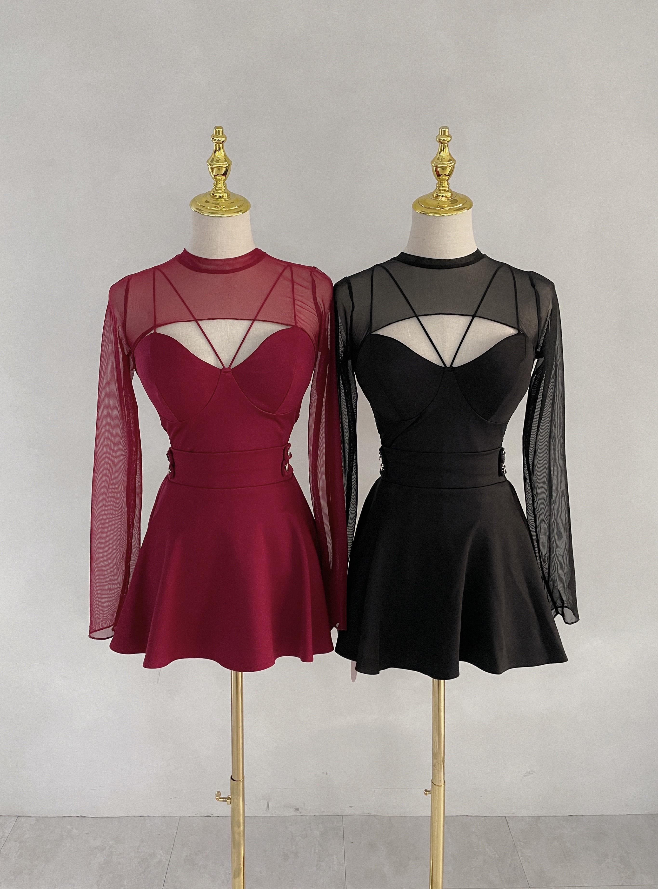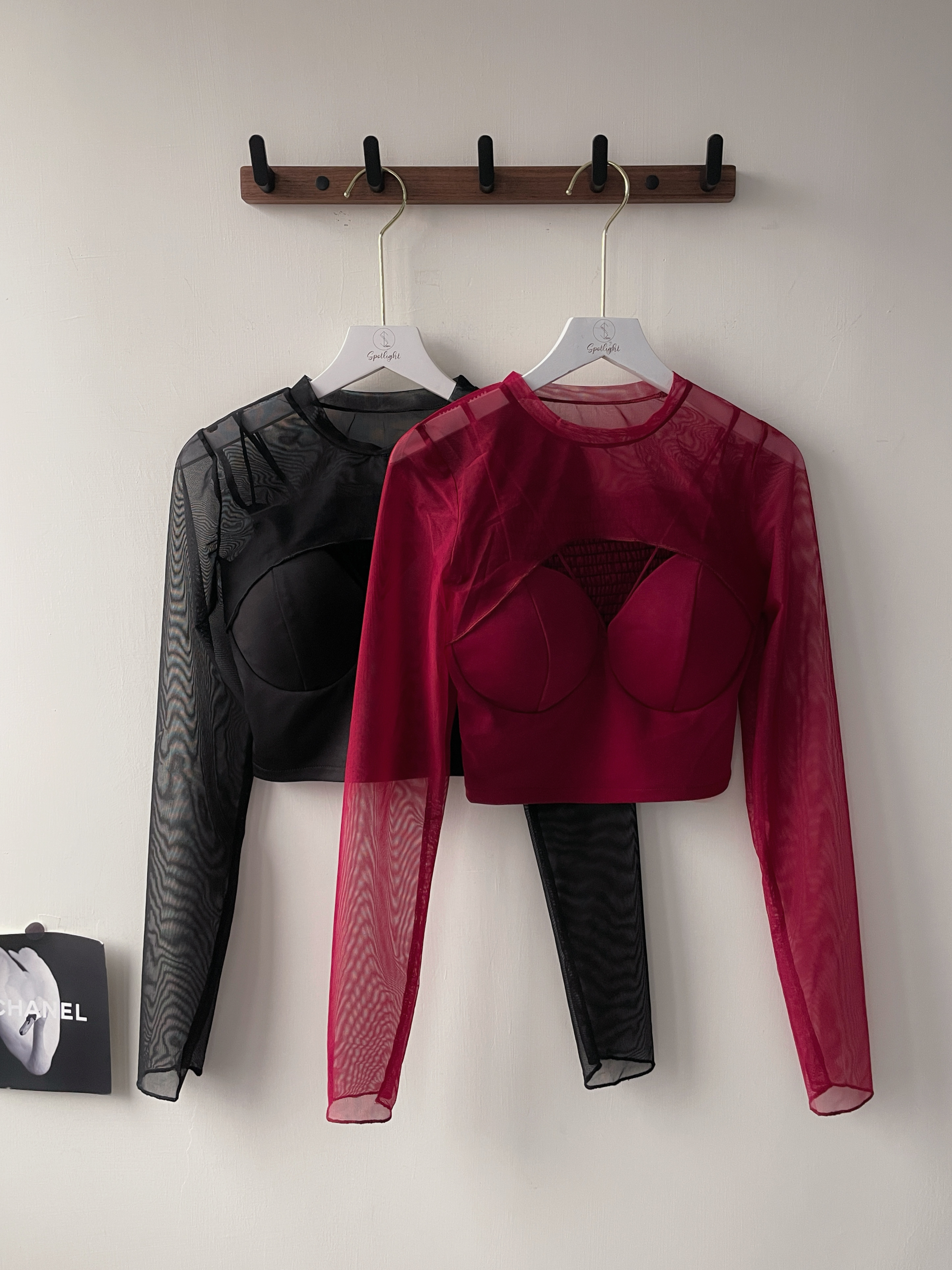 雙肩帶桃心網紗長袖上衣
