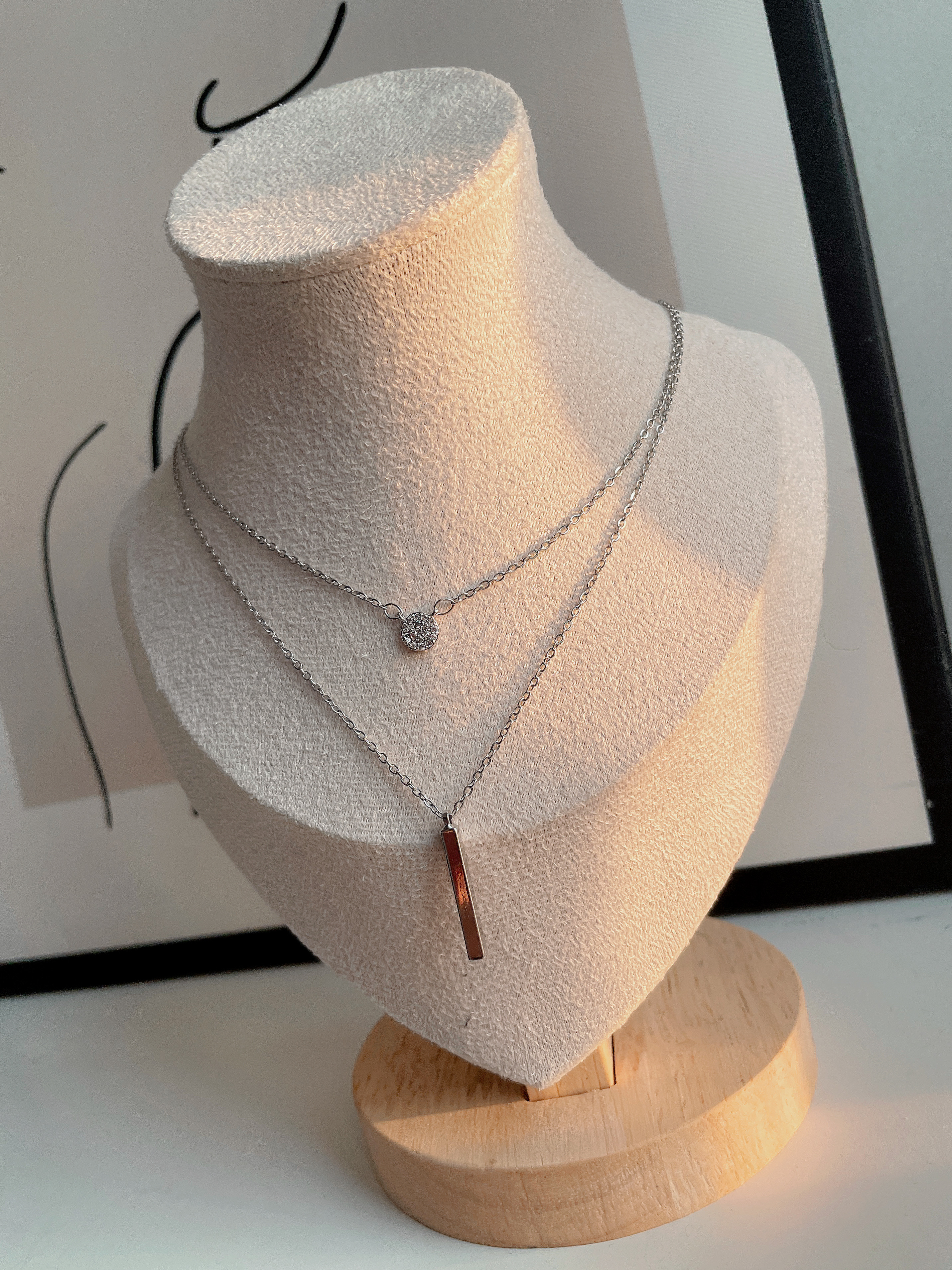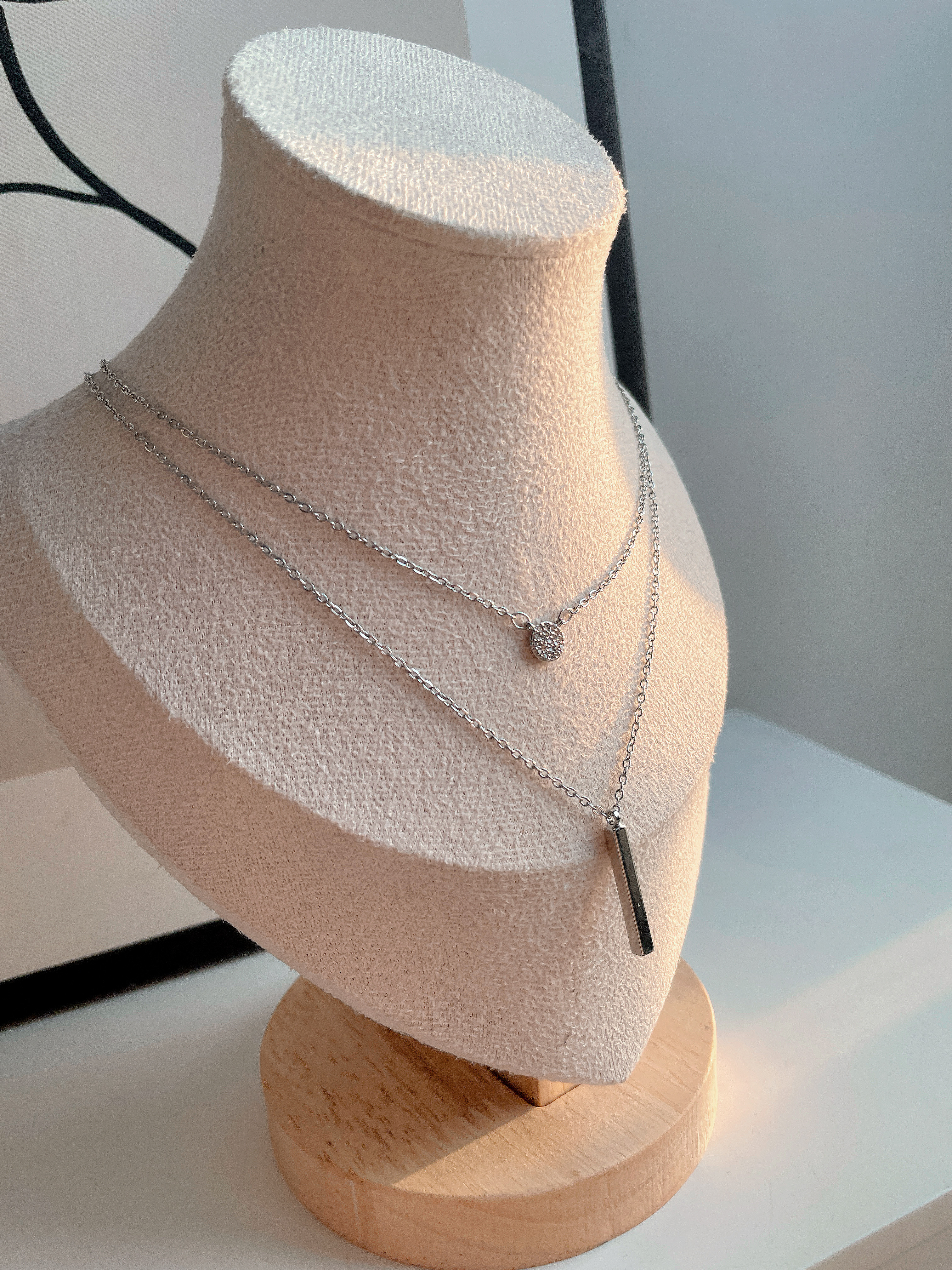 雙層疊戴一字亮鑽項鍊