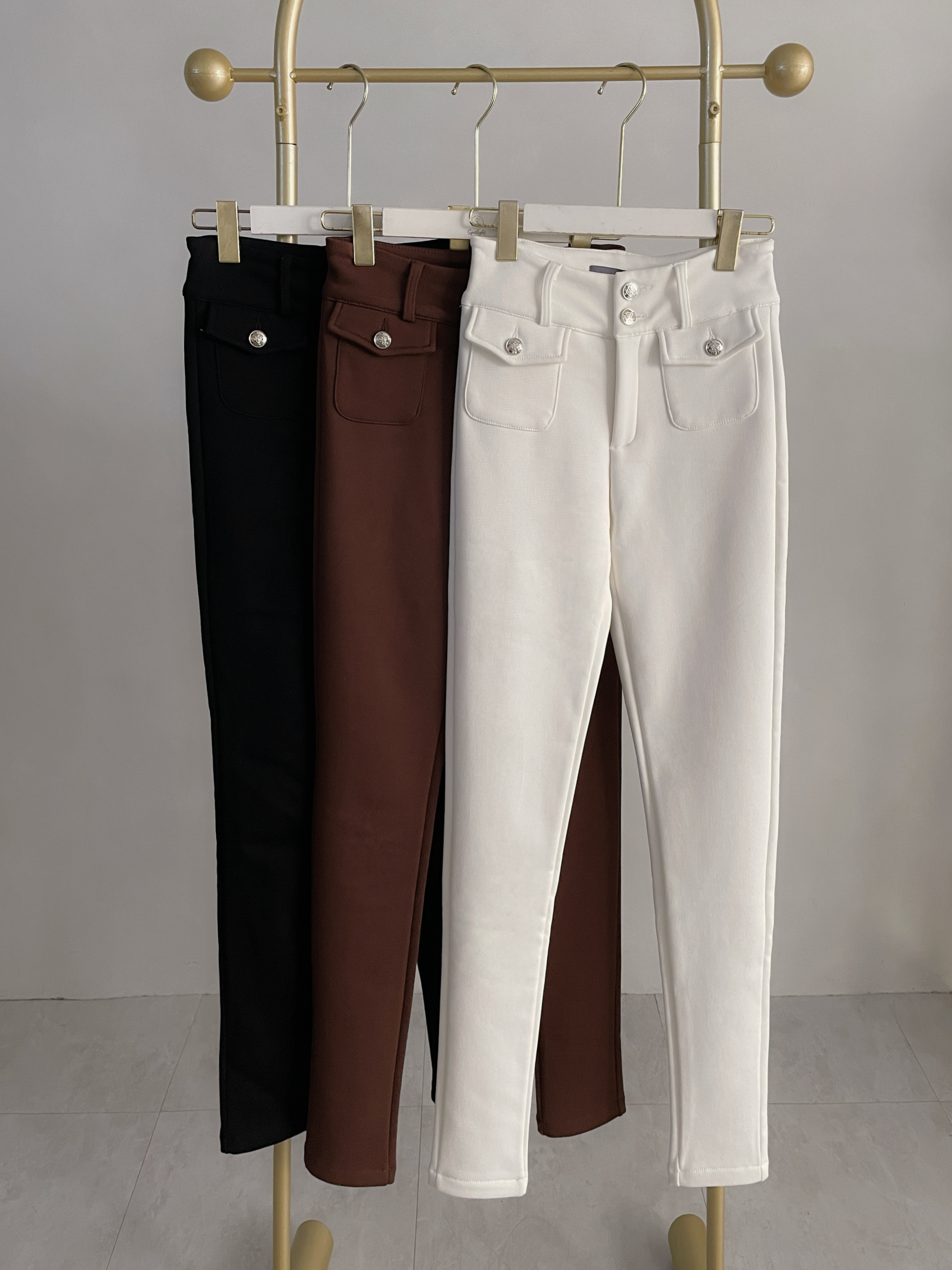 發熱系列 韓國雙銀釦內加絨窄管褲
