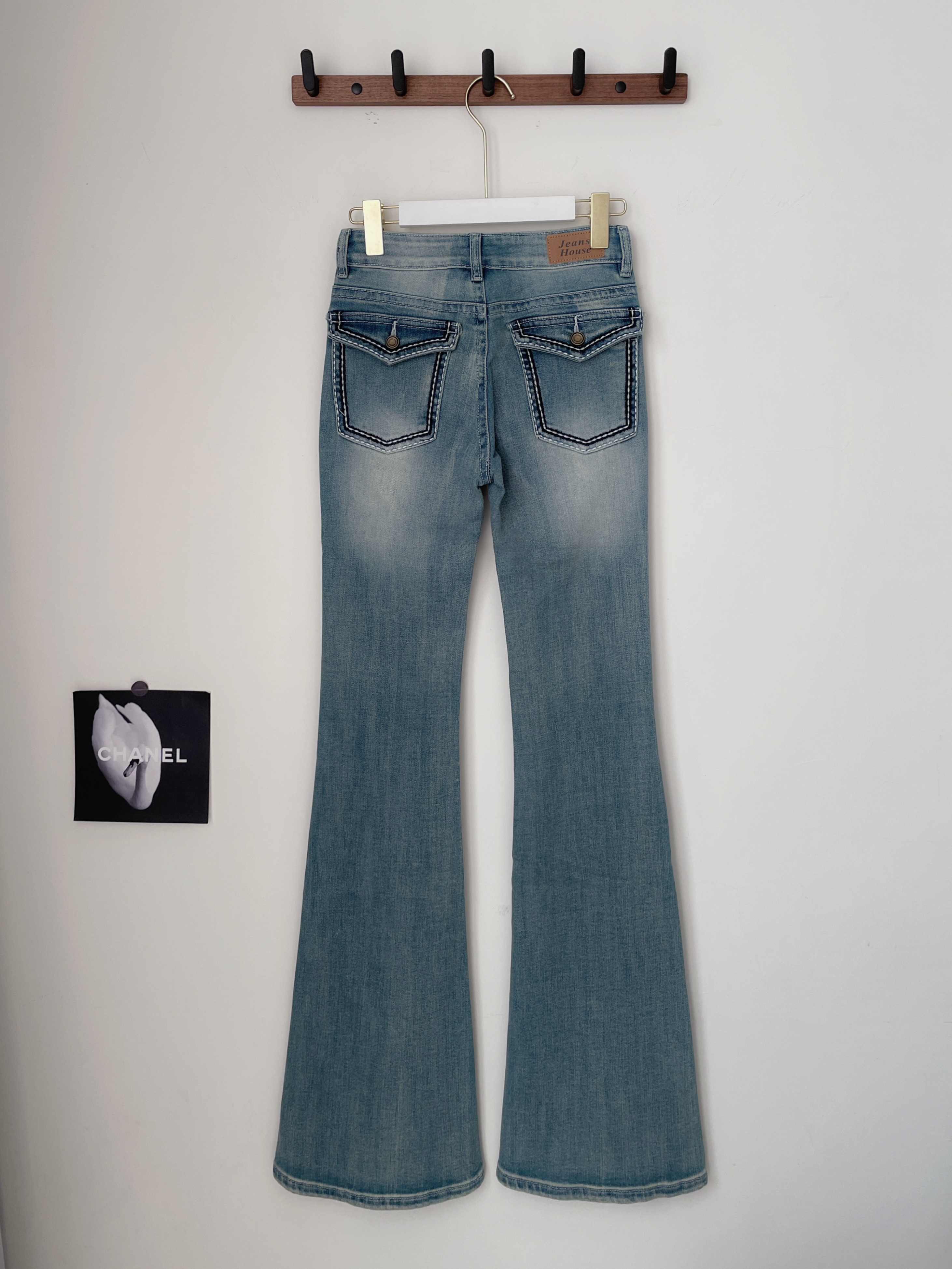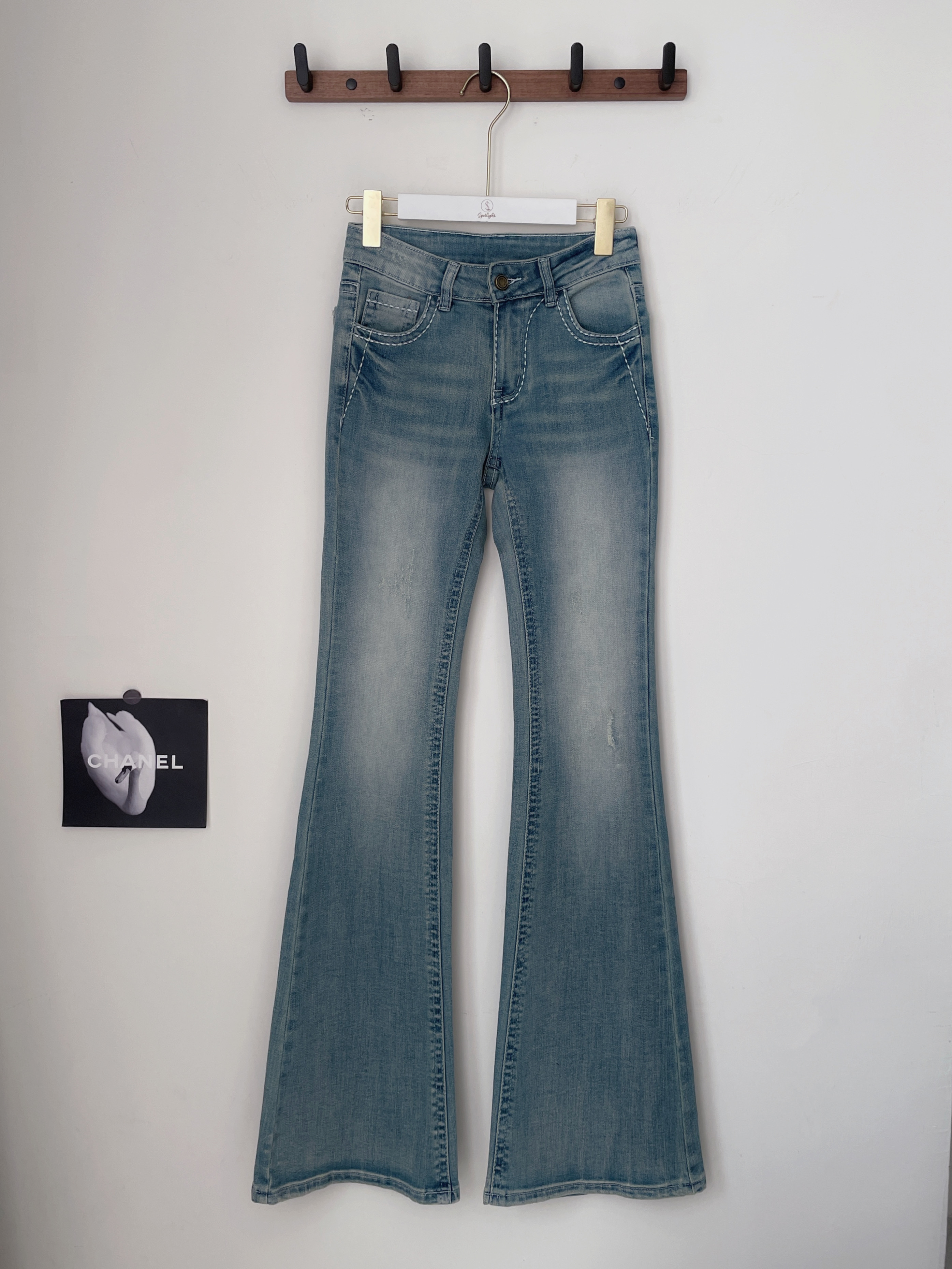 輪廓衝擊 撞色車線微刷破牛仔喇叭褲