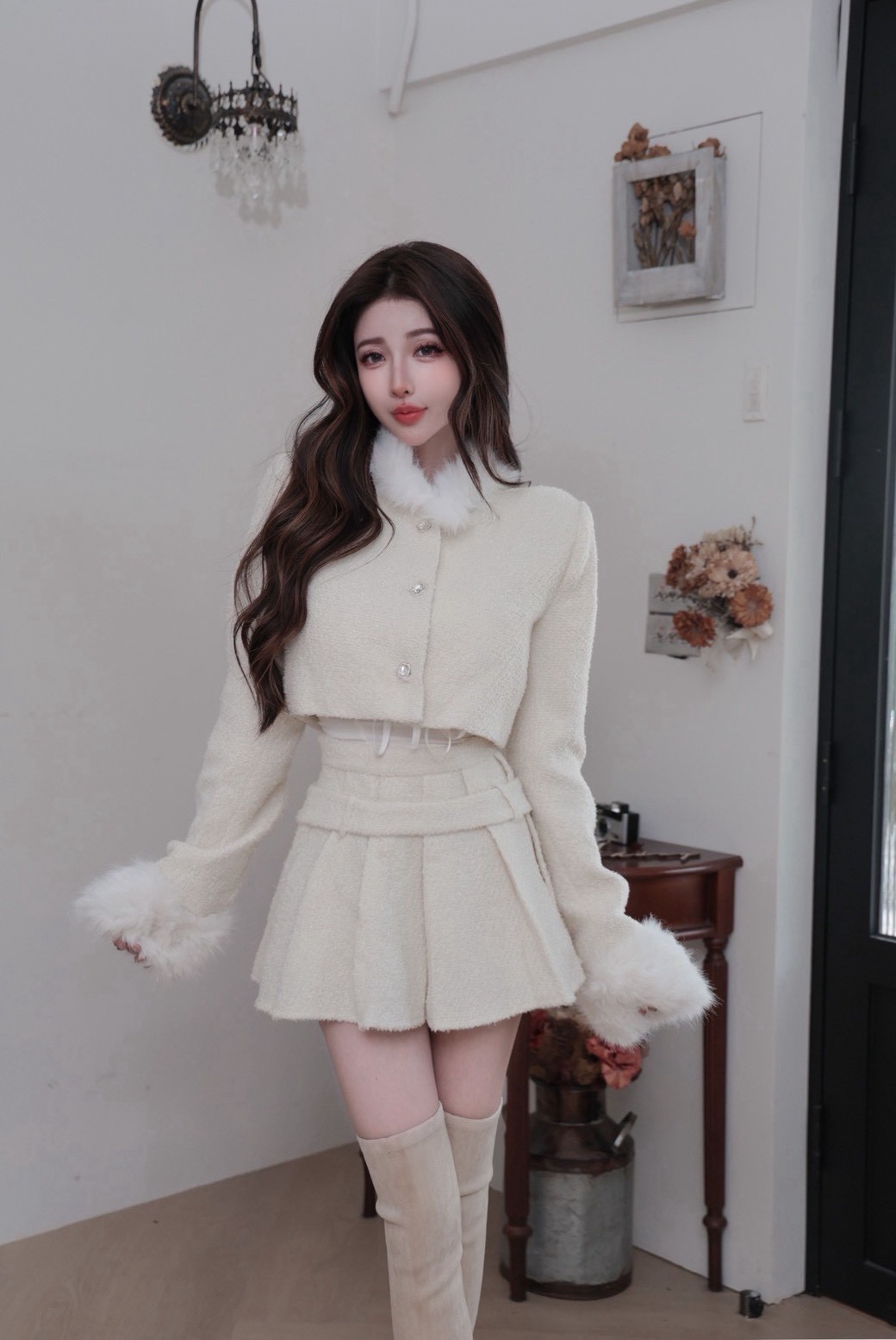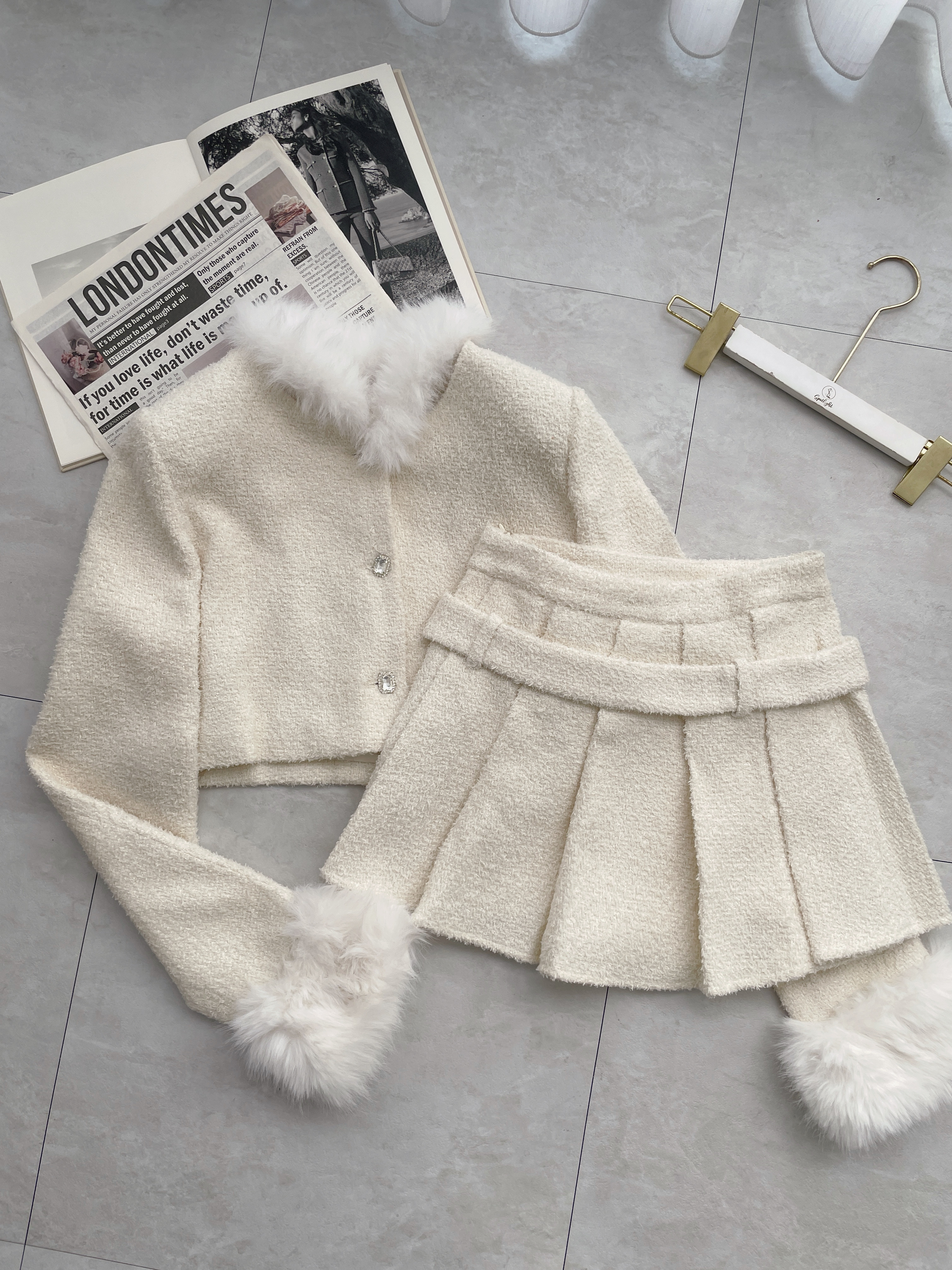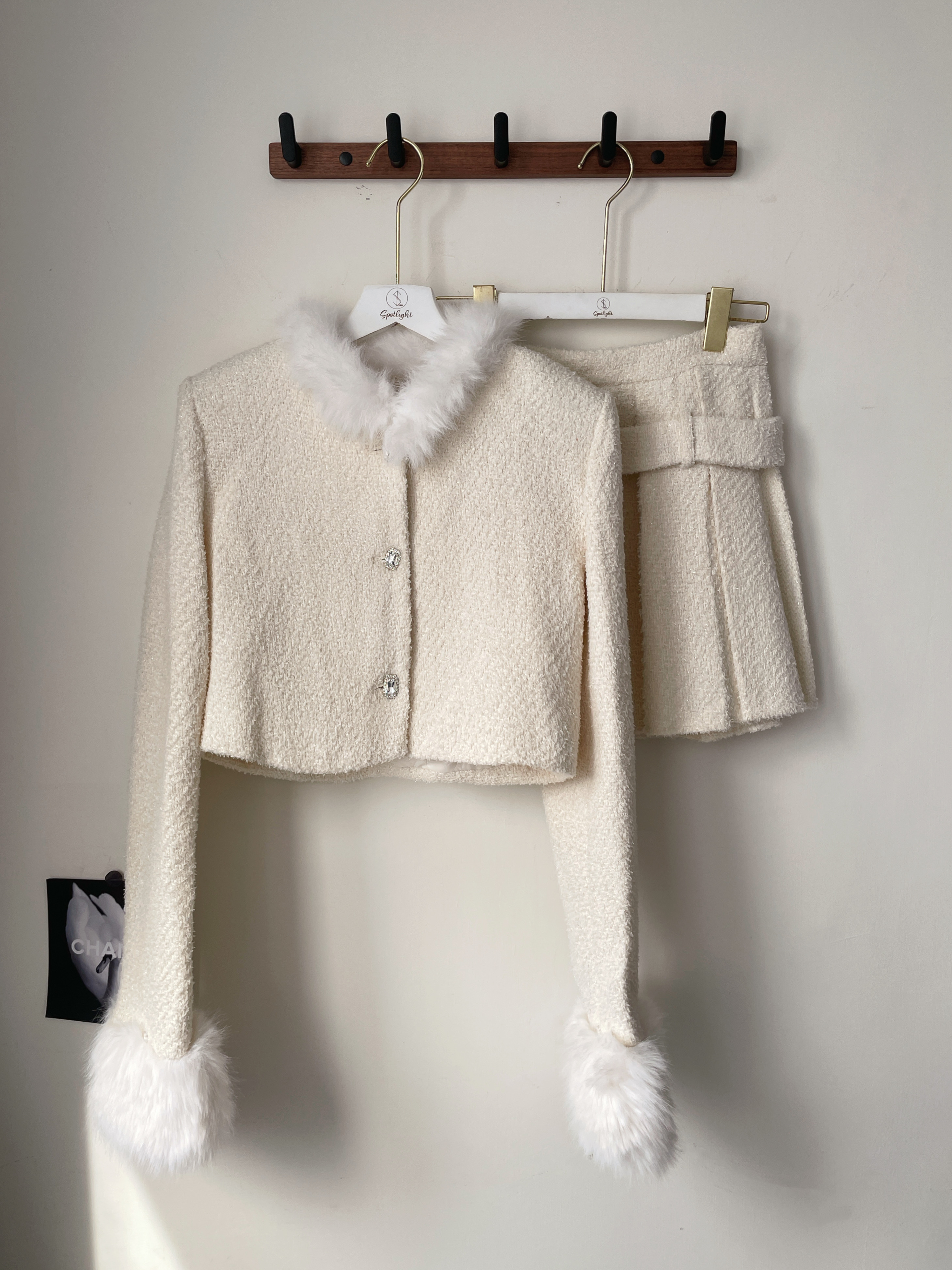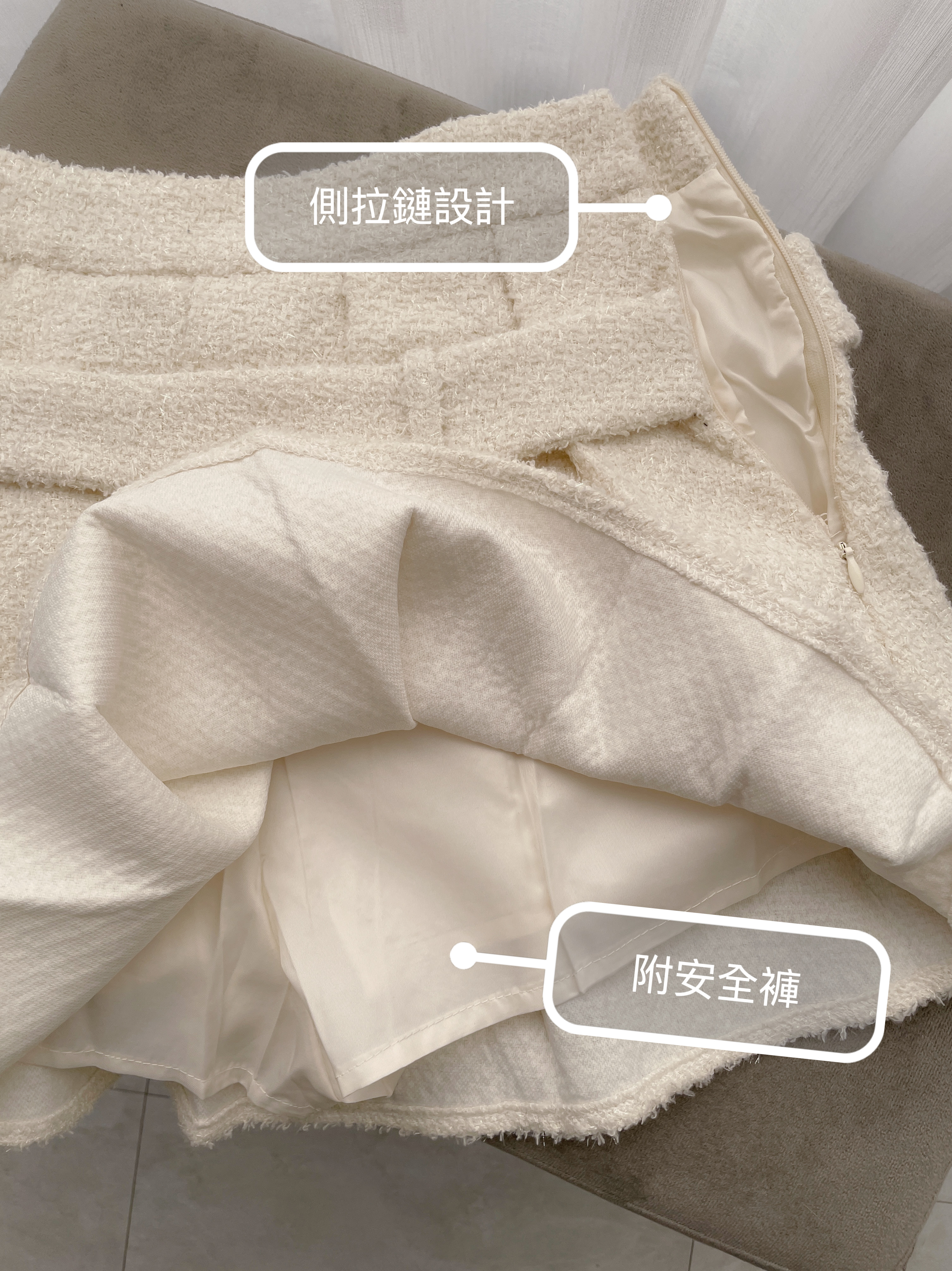 【SET】小香亮蔥毛絨外套+百褶短裙
