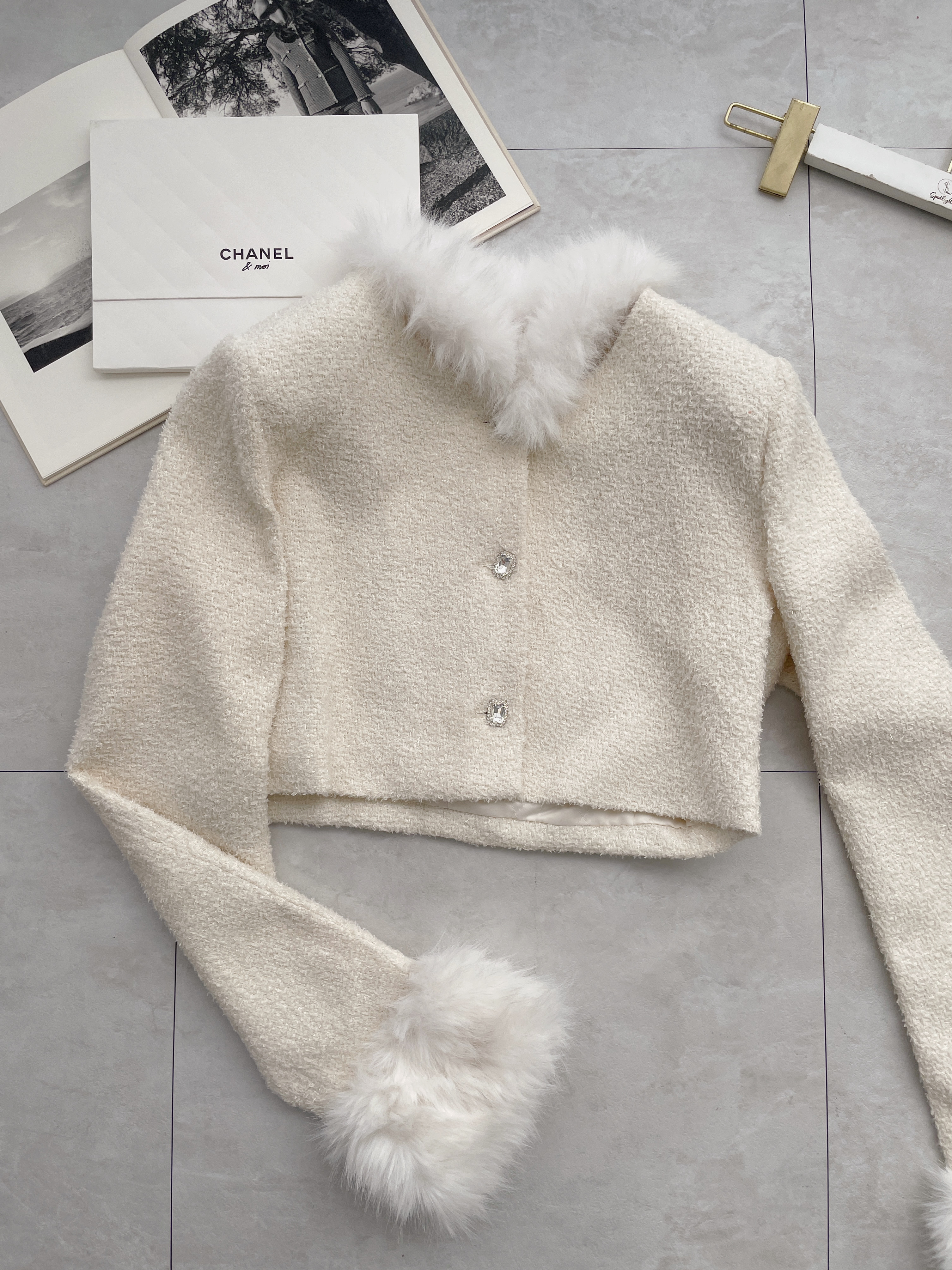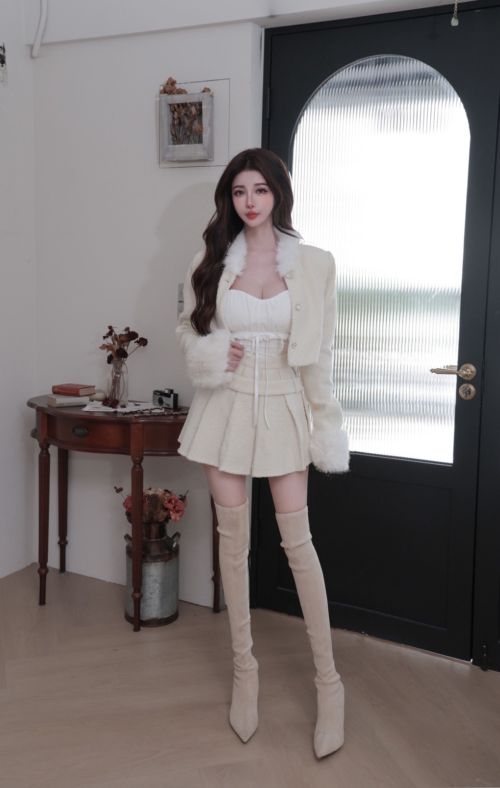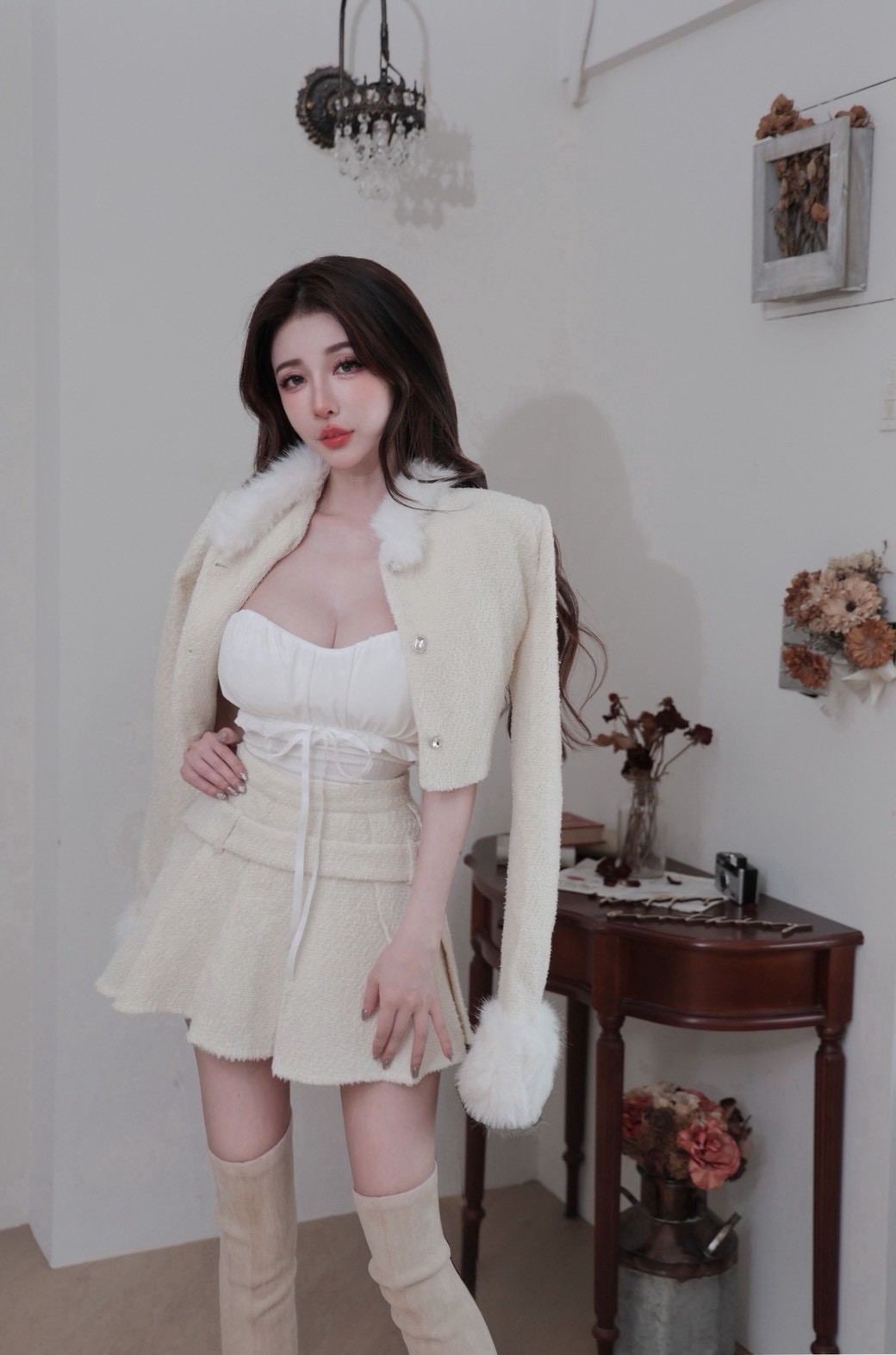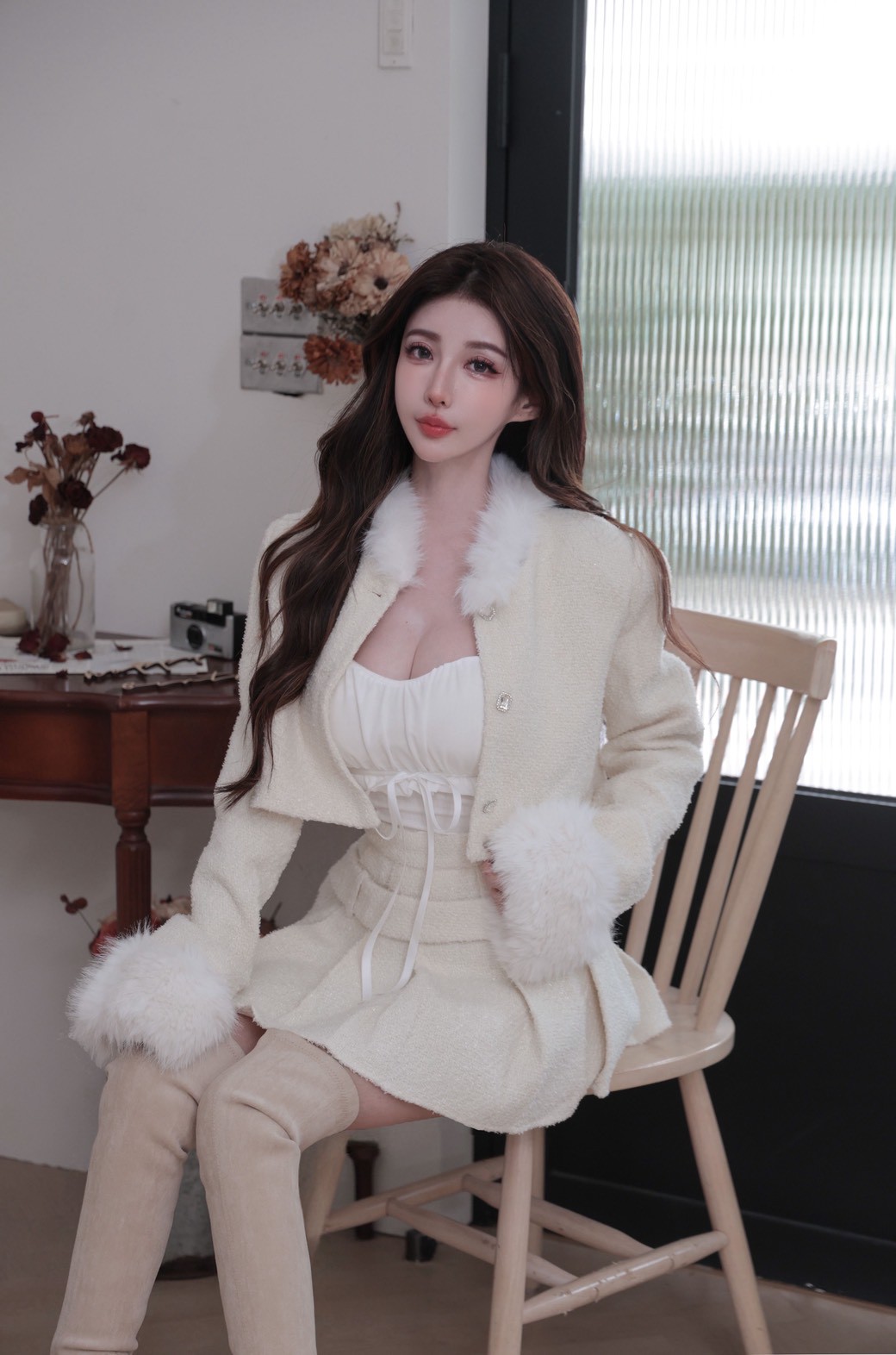 【SET】小香亮蔥毛絨外套+百褶短裙