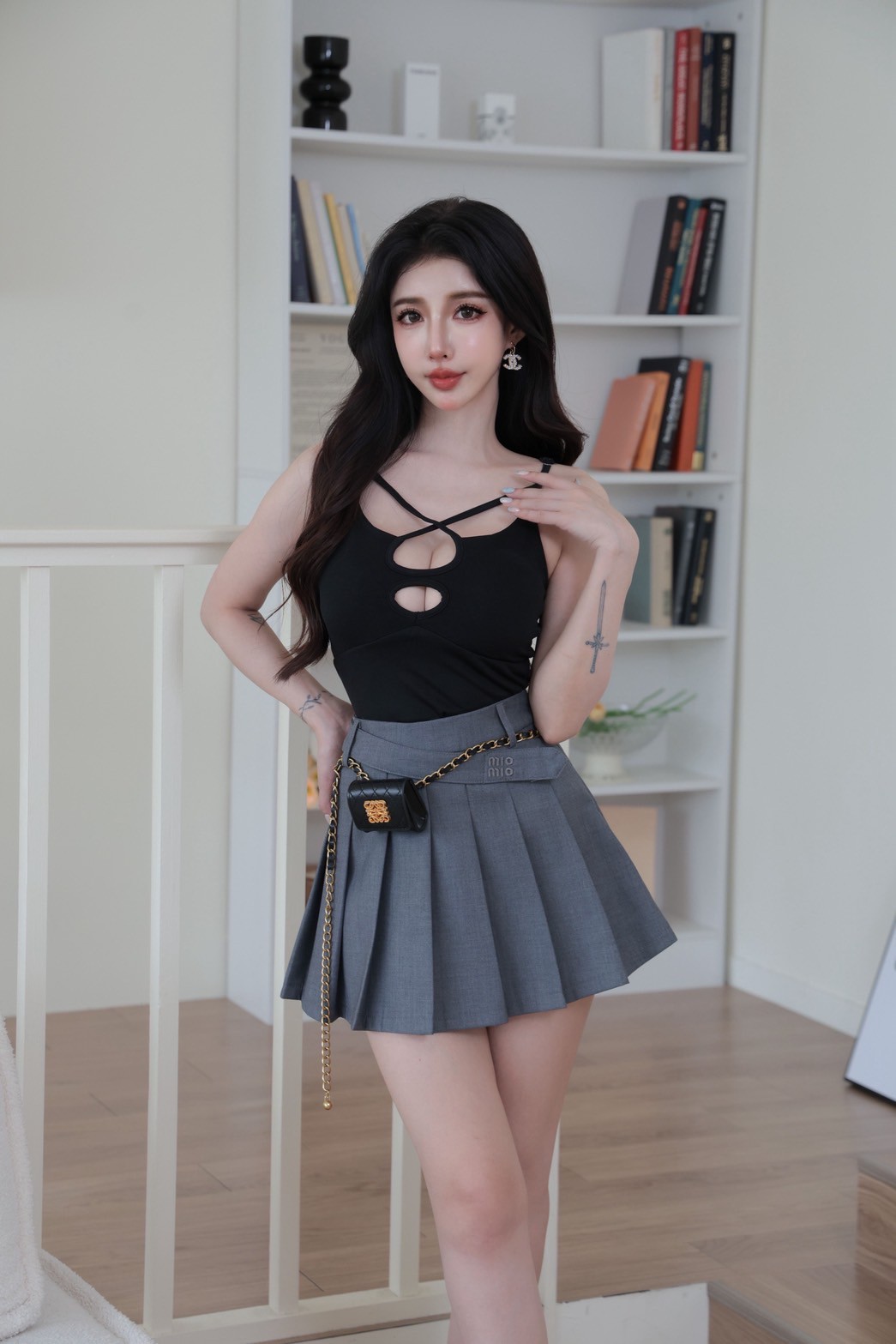 高挺度的面料讓每一個褶子都清晰立體,不會塌塌的,顯腿長效果加倍!