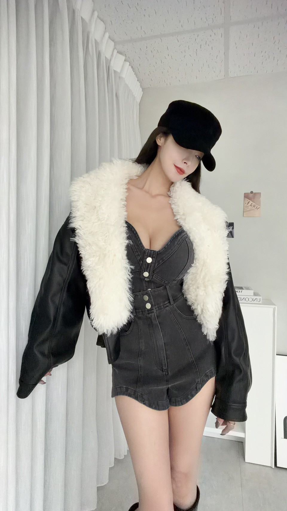 質感荔枝紋皮革結合柔軟毛毛拼接,打造高級氛圍。毛毛領可拆設計,依造型自由變換。