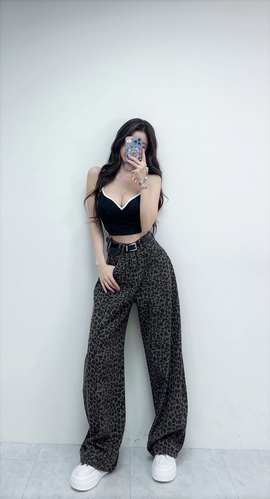 豹紋附腰帶彎刀褲