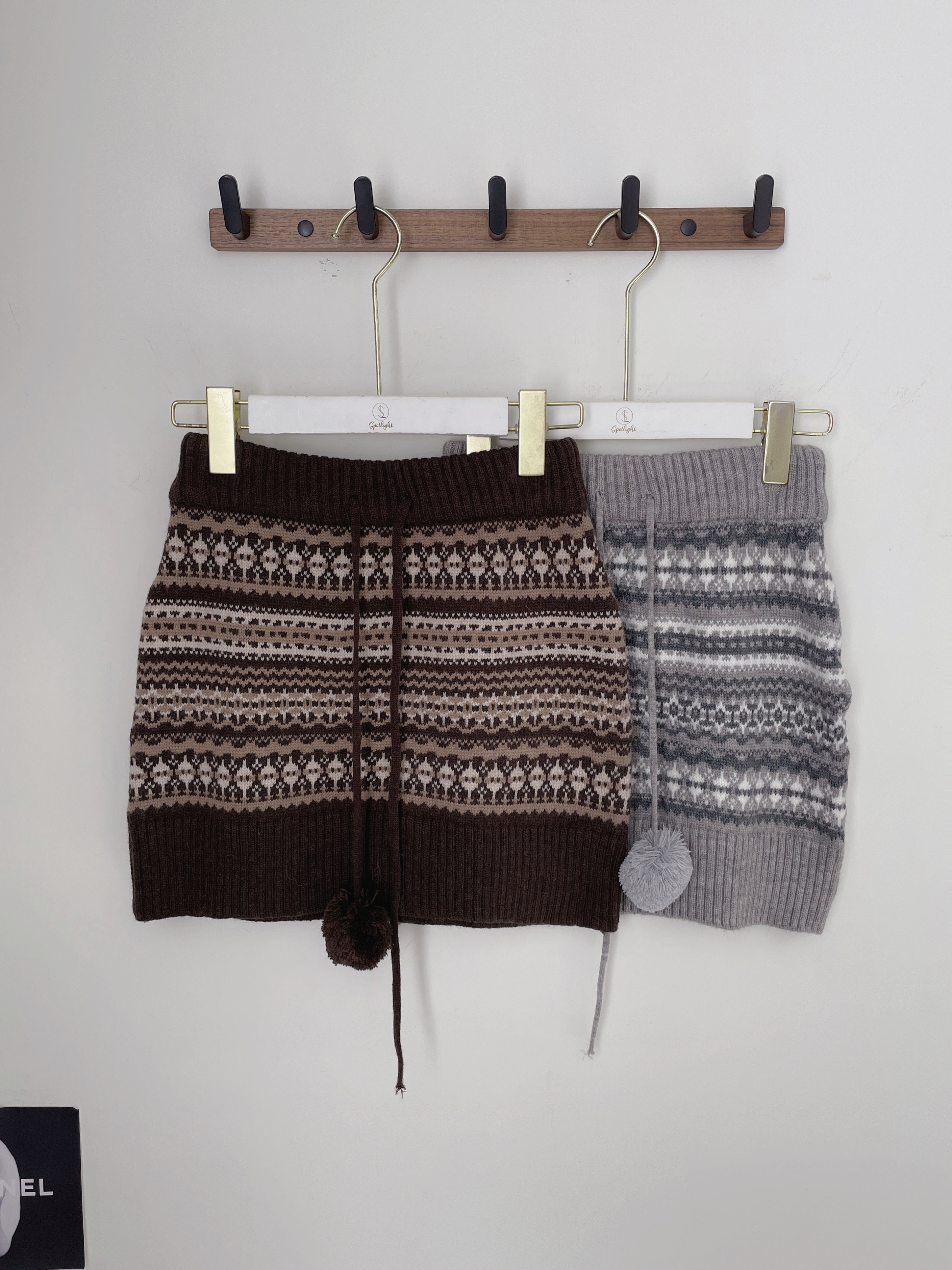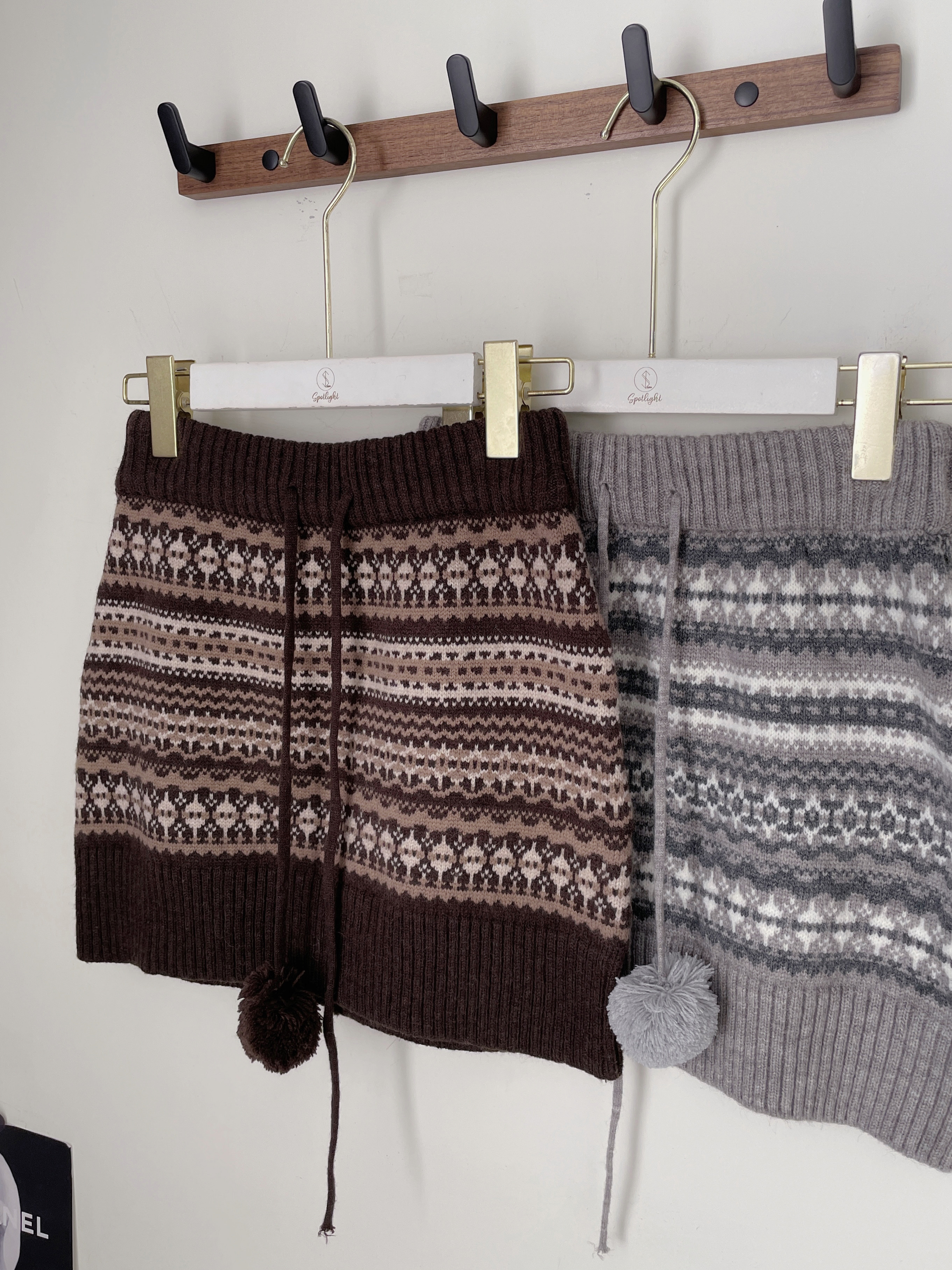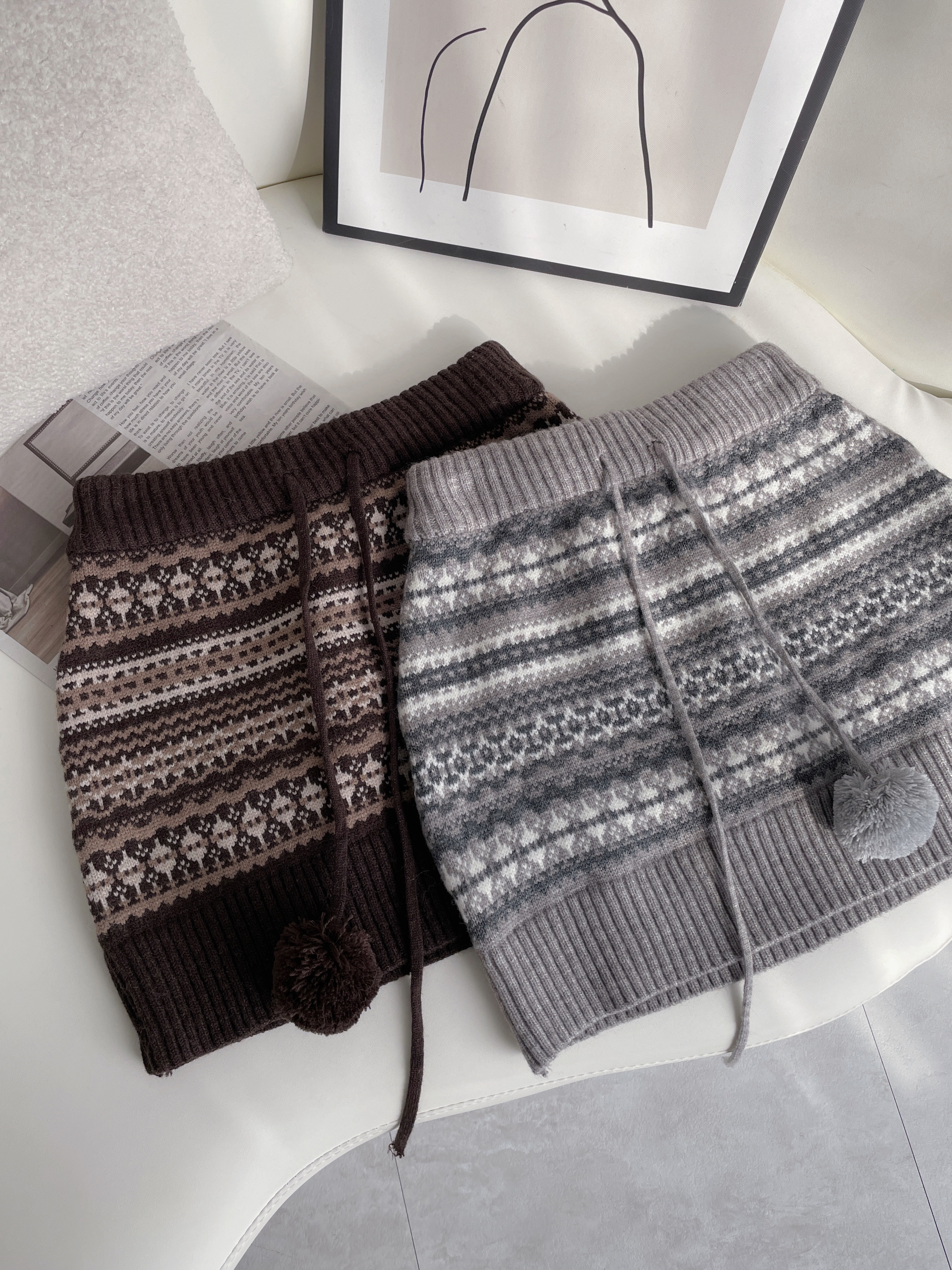 費爾島圖騰毛球針織短裙