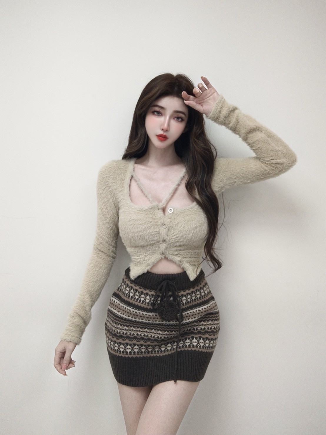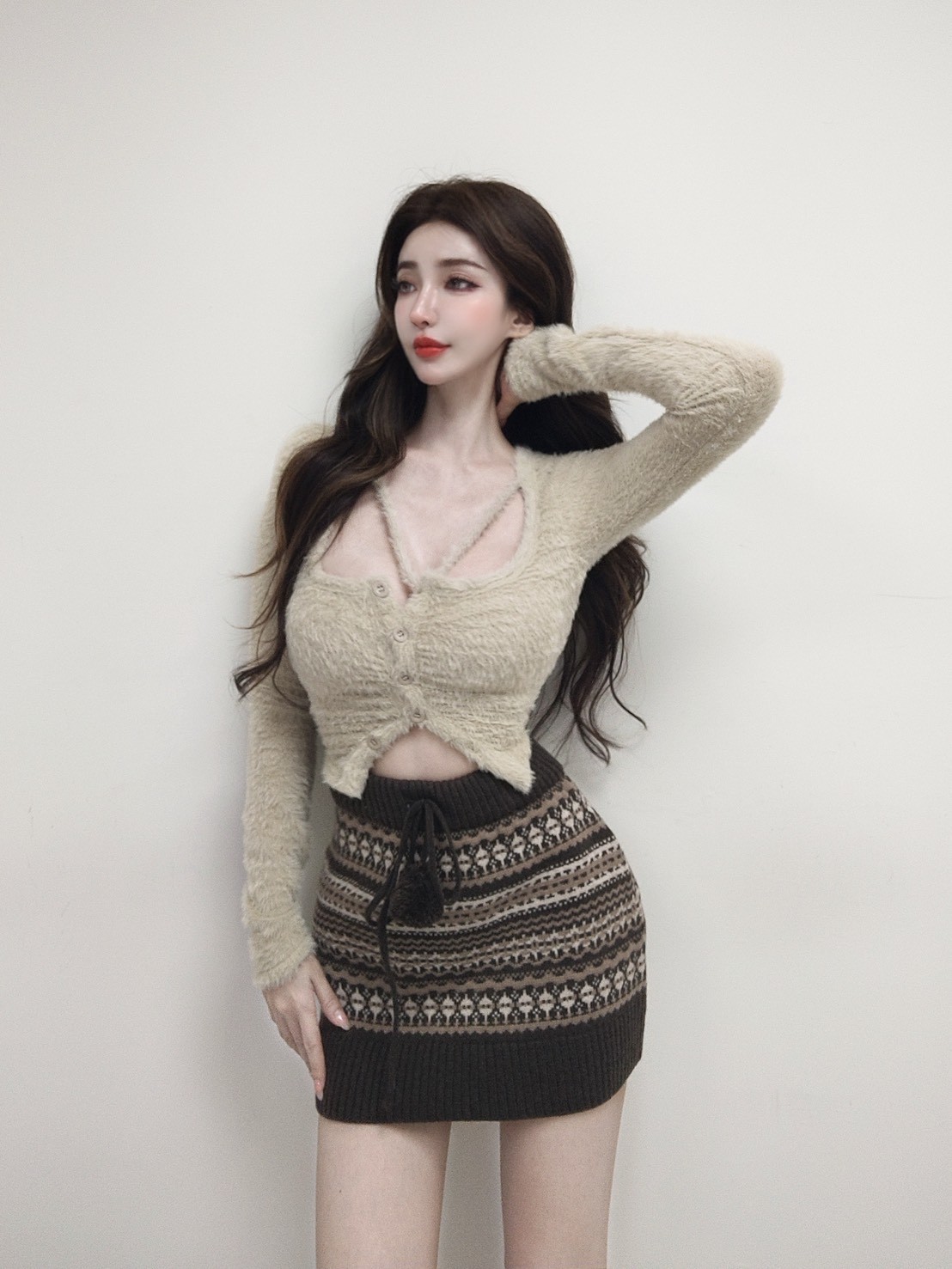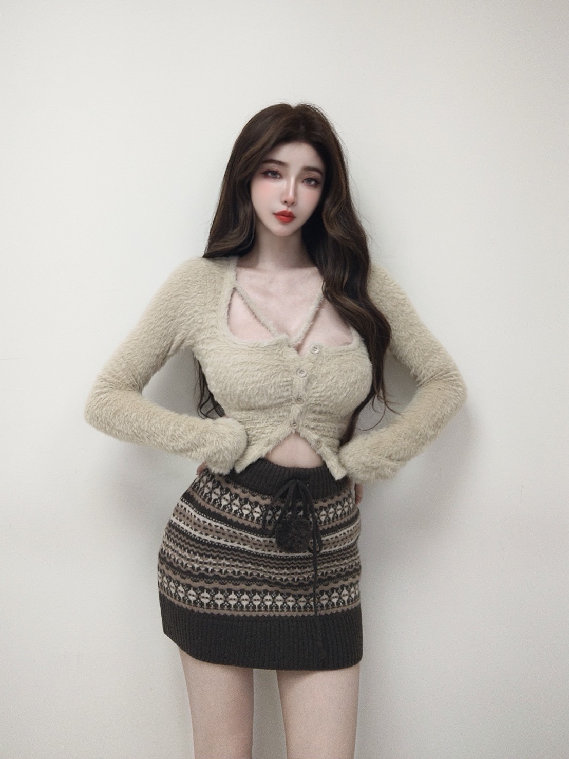 費爾島圖騰毛球針織短裙