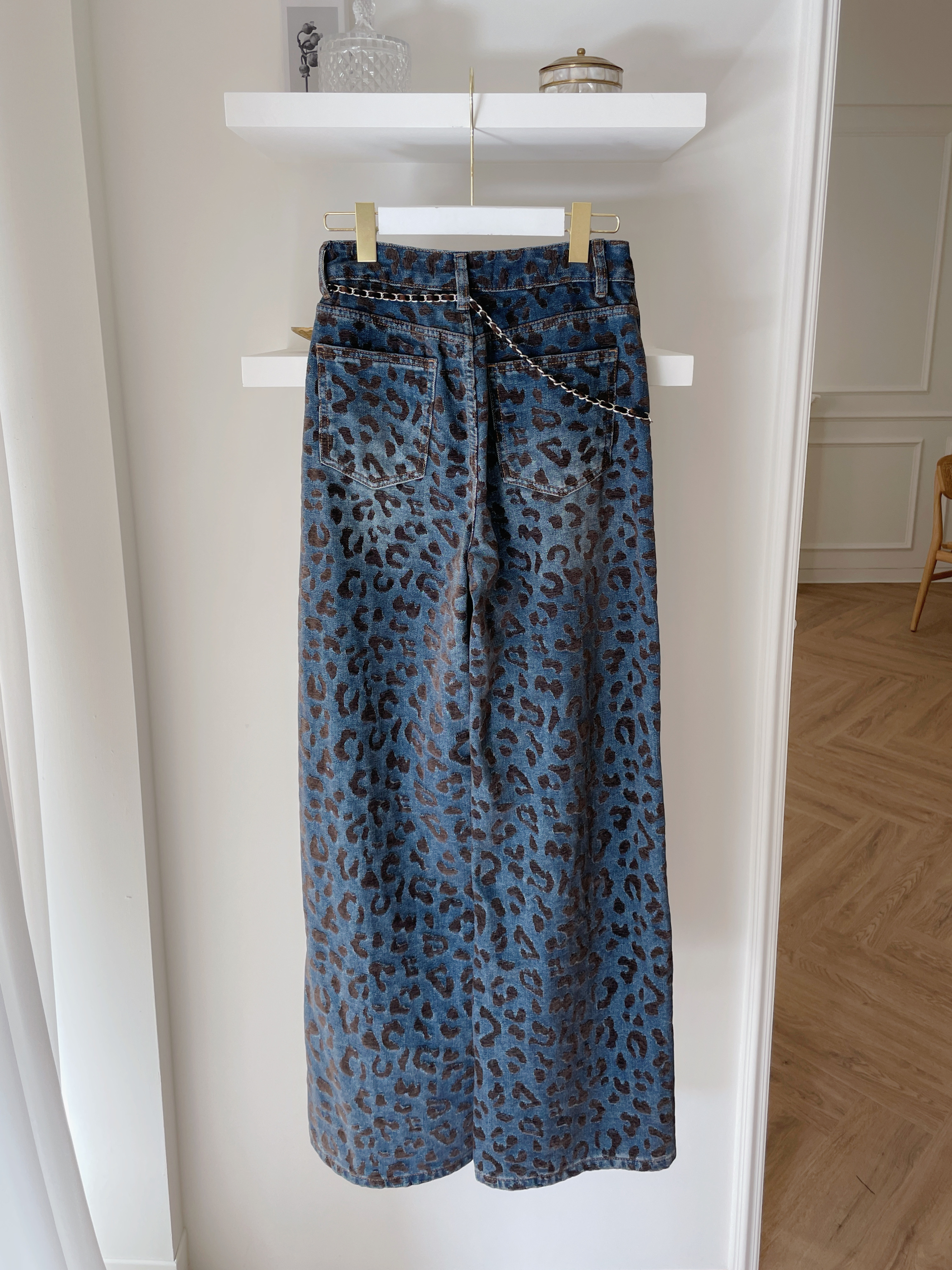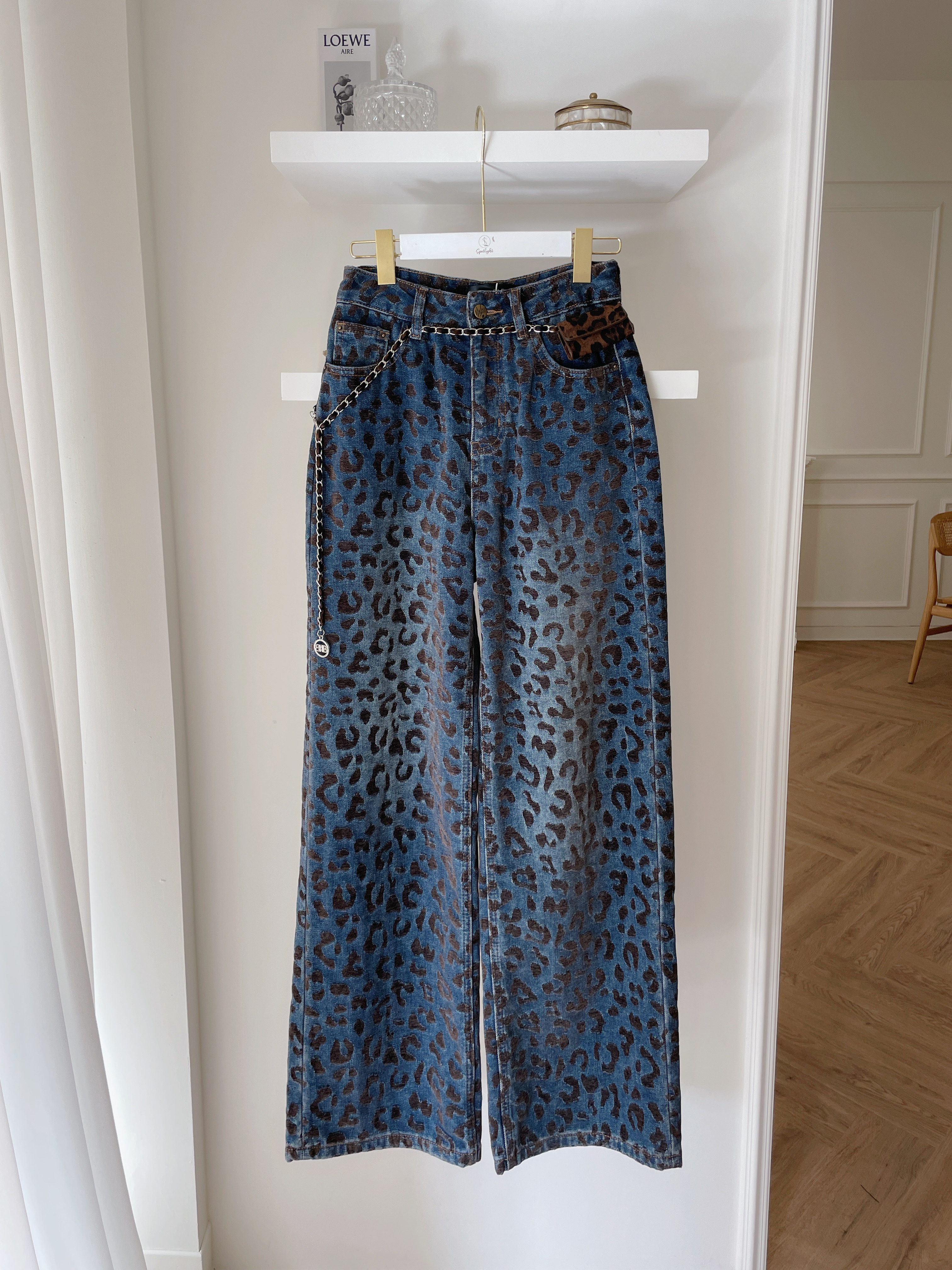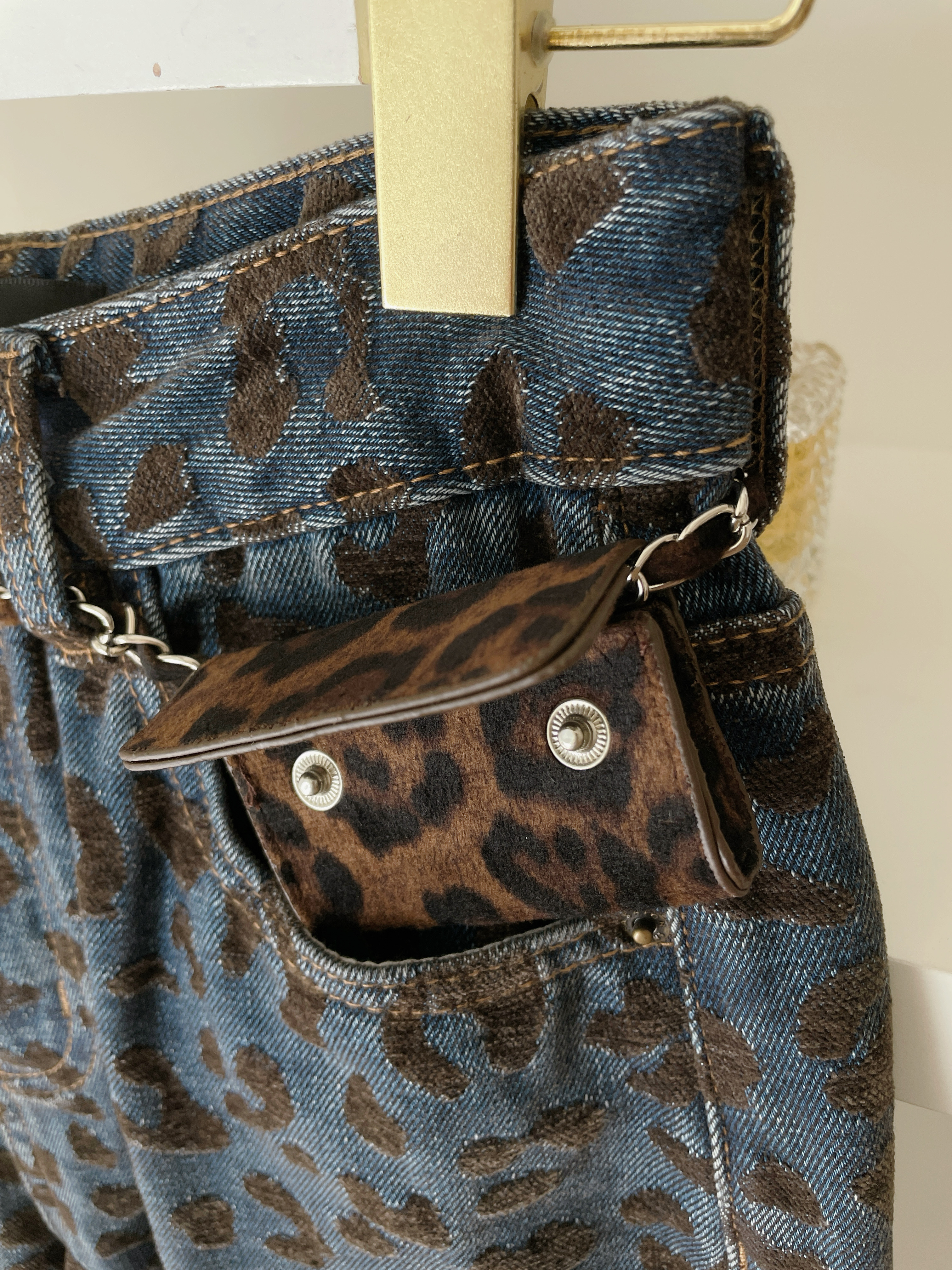 靜夜豹影 韓國漸變豹紋腰包牛仔寬褲