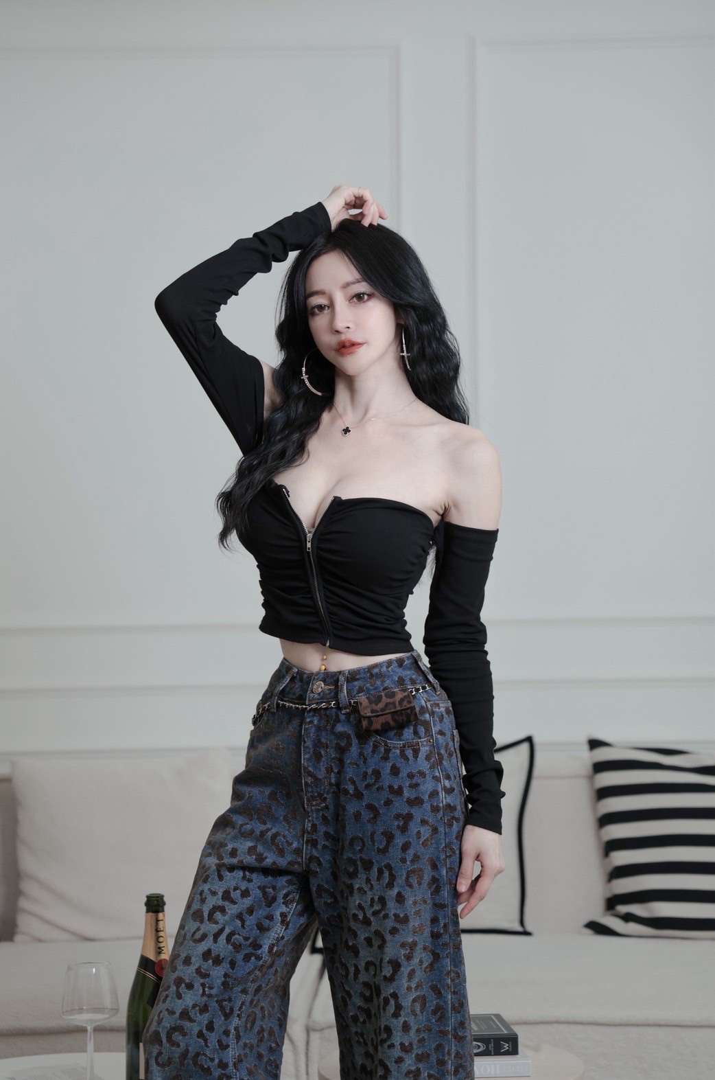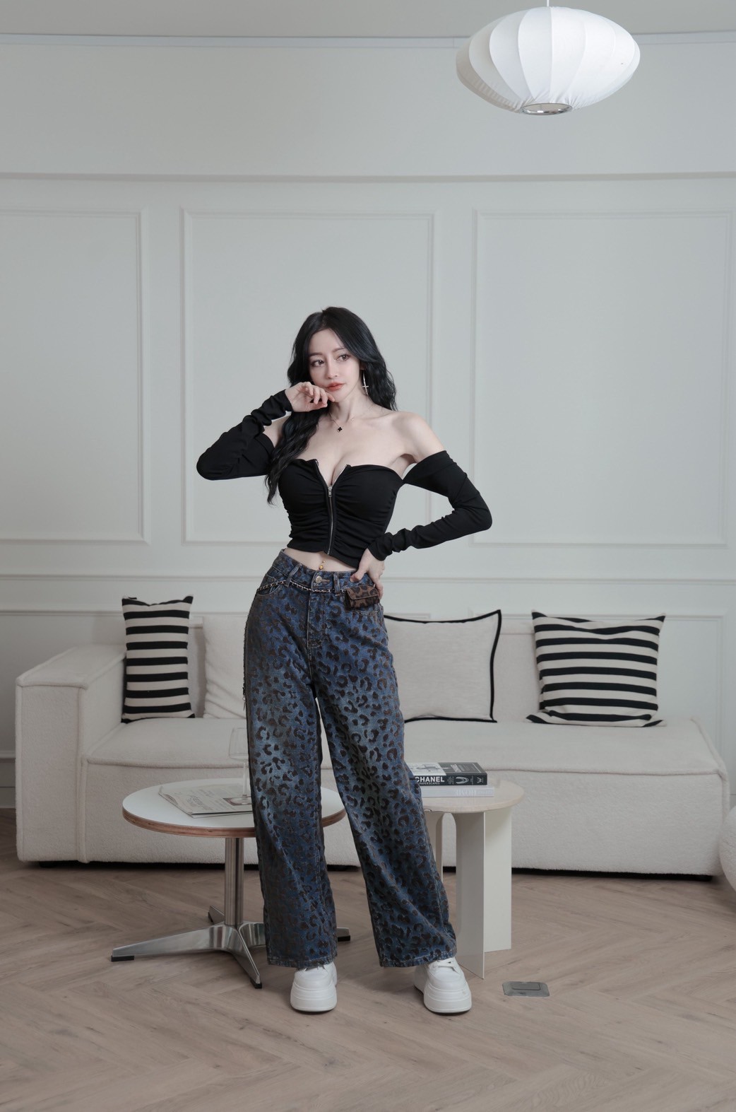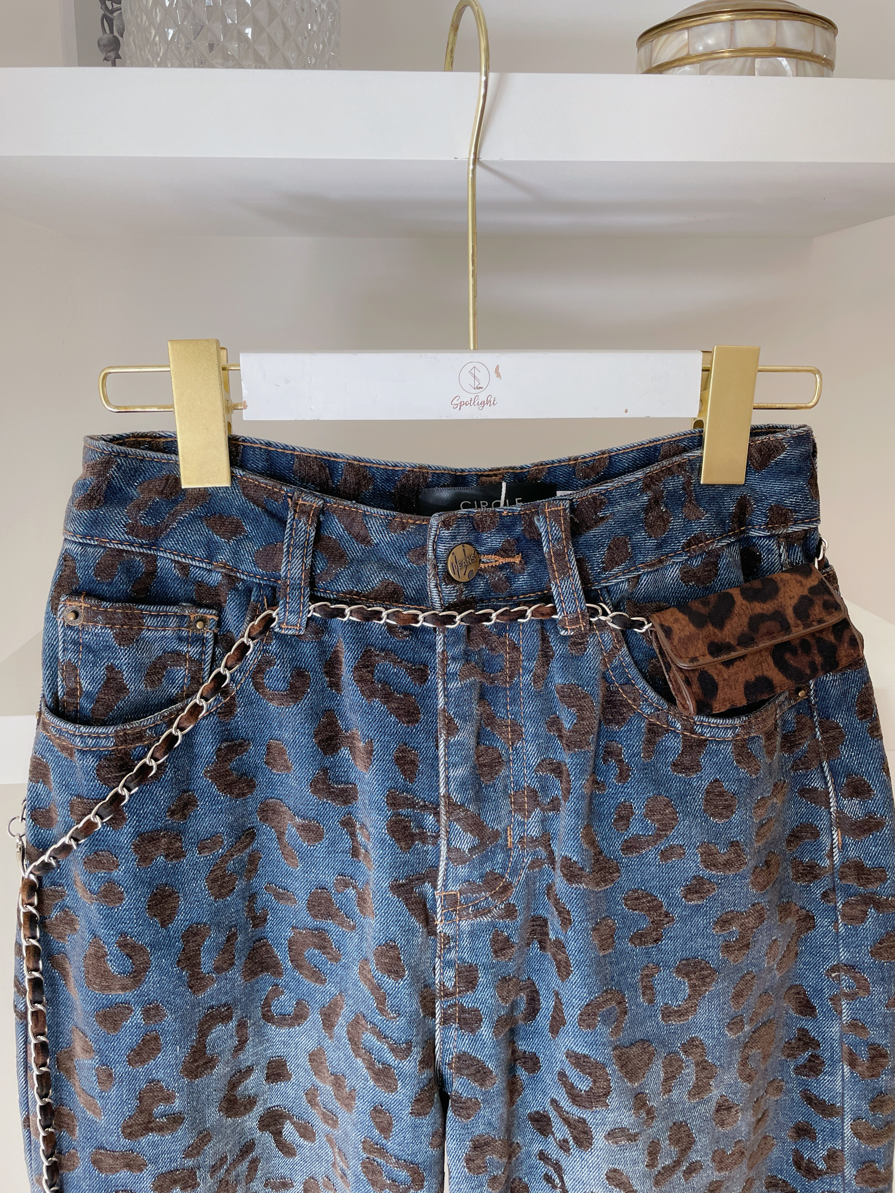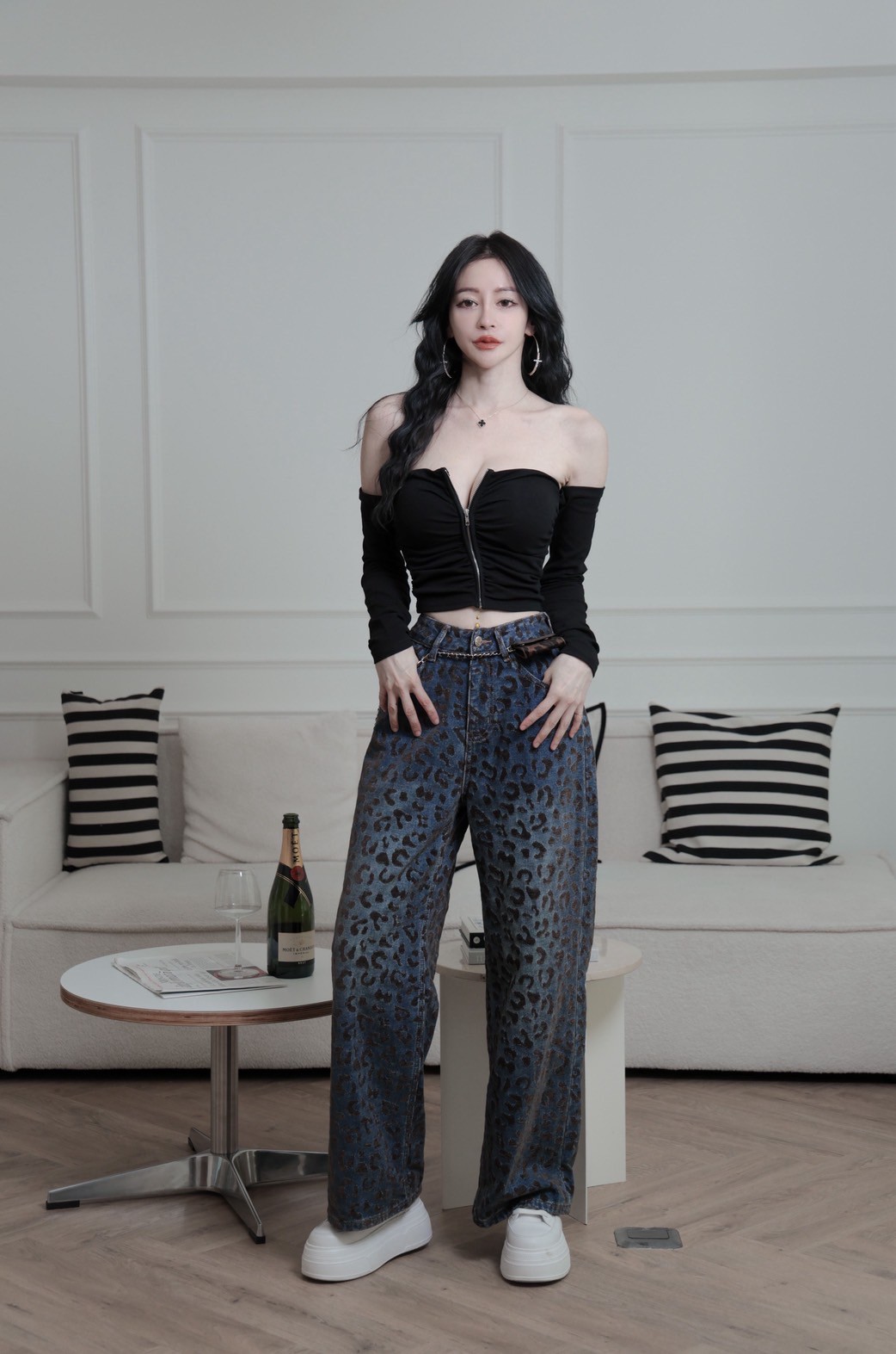 靜夜豹影 韓國漸變豹紋腰包牛仔寬褲