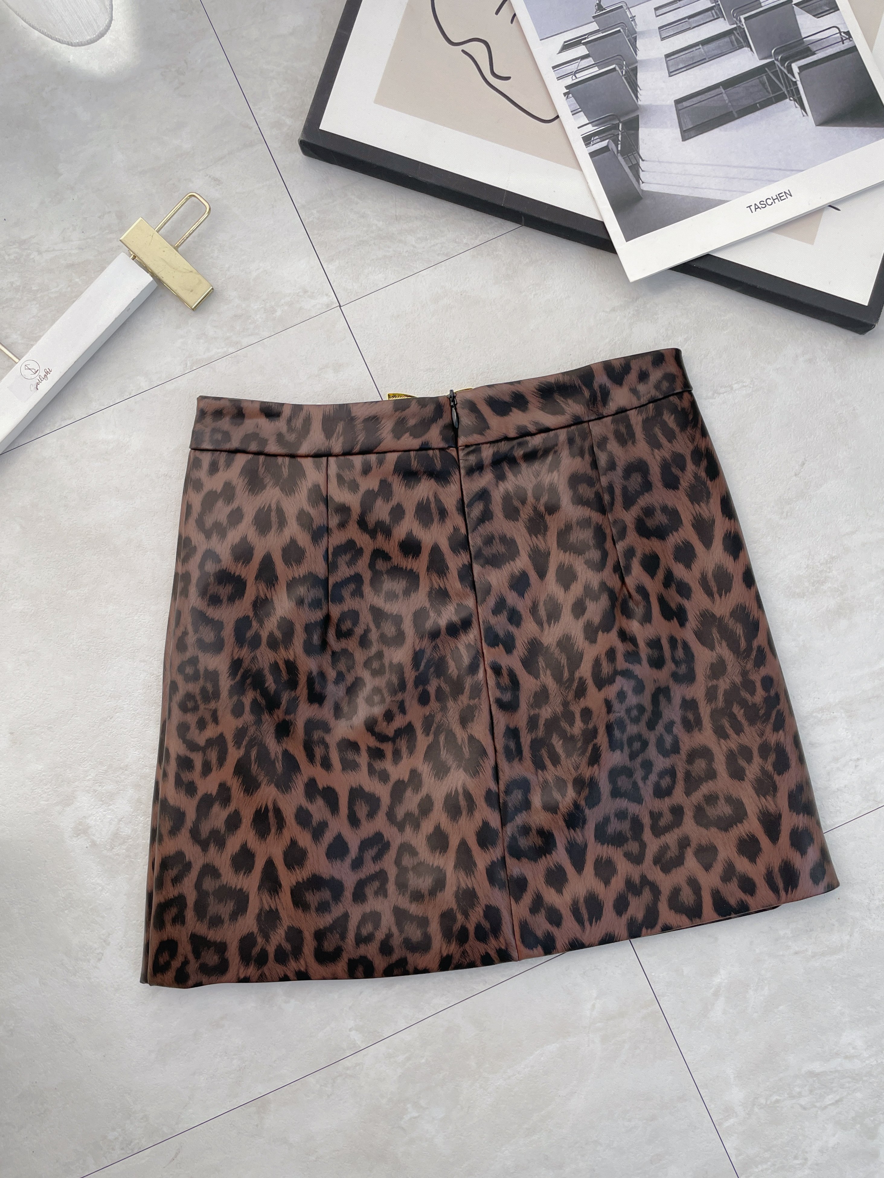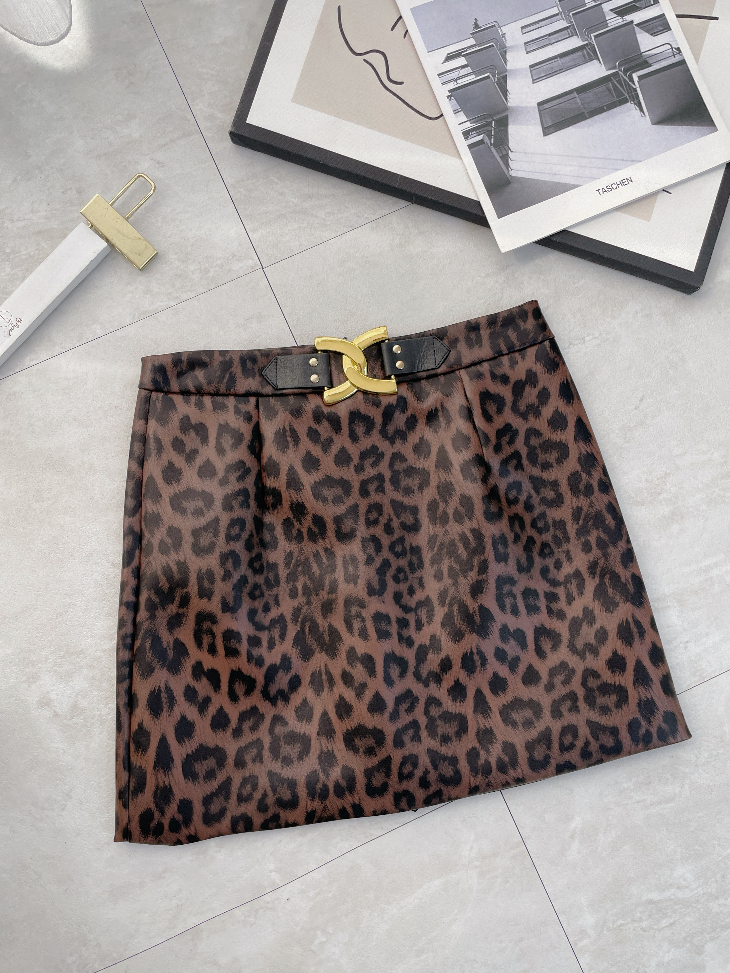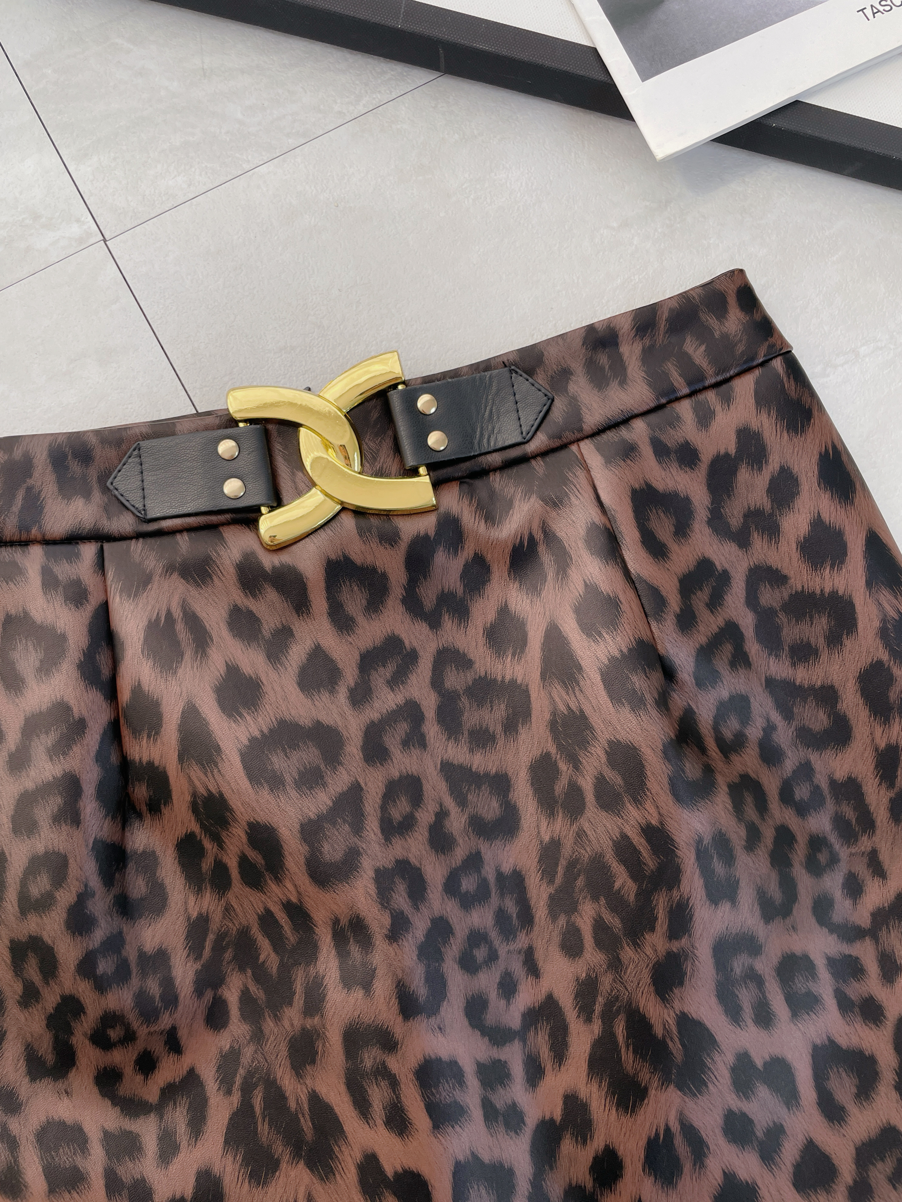 韓國亮面皮革豹紋短裙