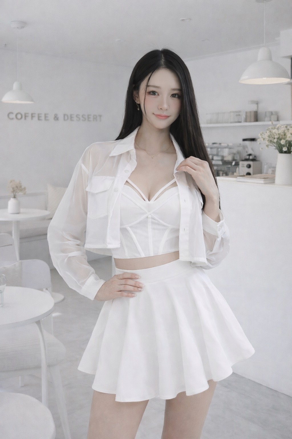 【SET】雙口袋排釦雪紡上衣+傘裙