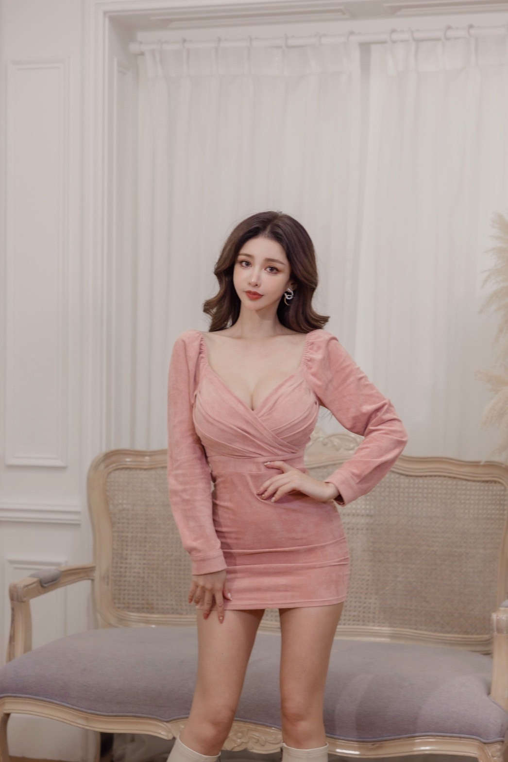 優雅迷人 一字胸壓褶側抓皺麂皮短洋