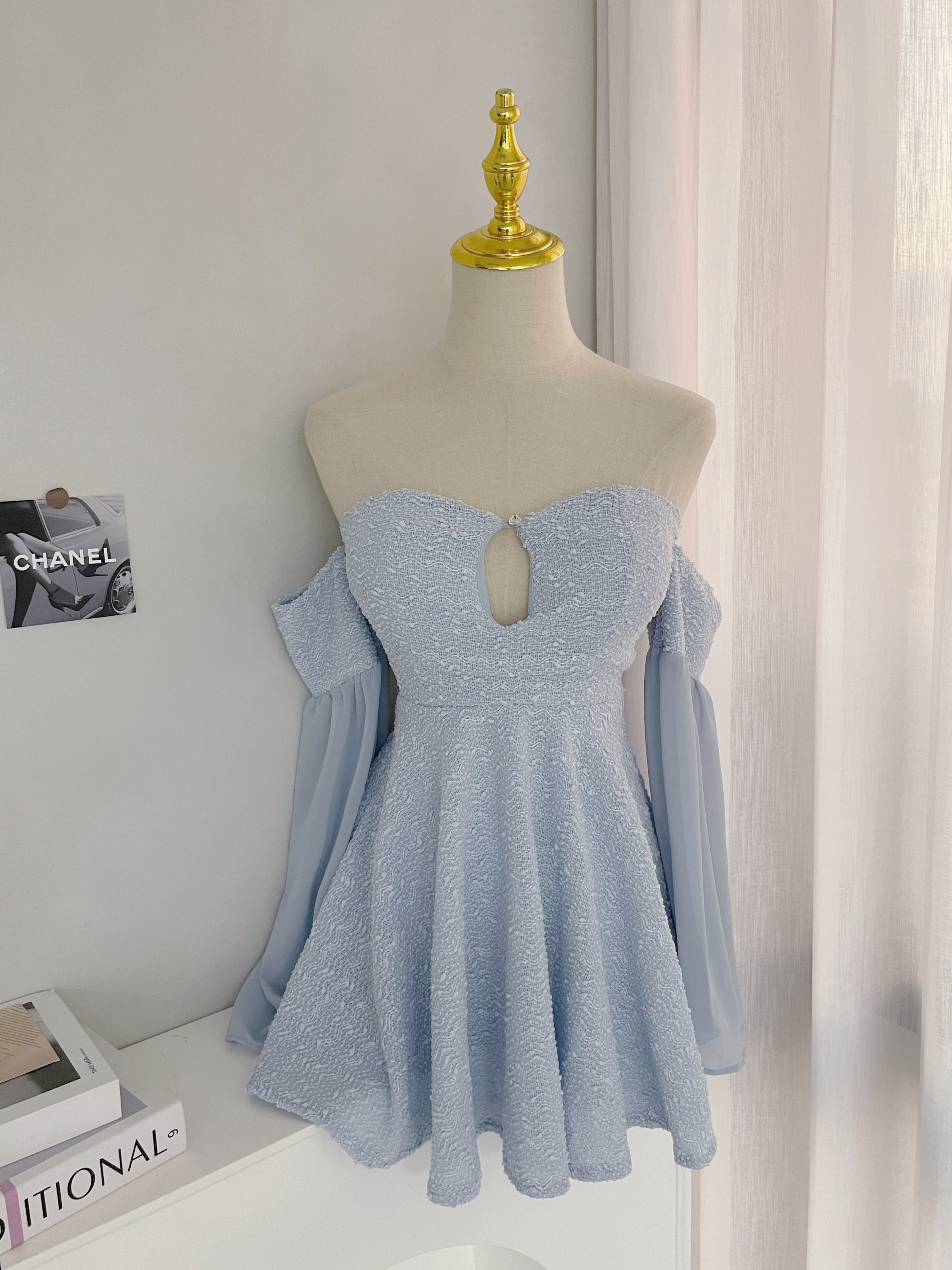 桃心挖胸小香雪紡長袖短洋