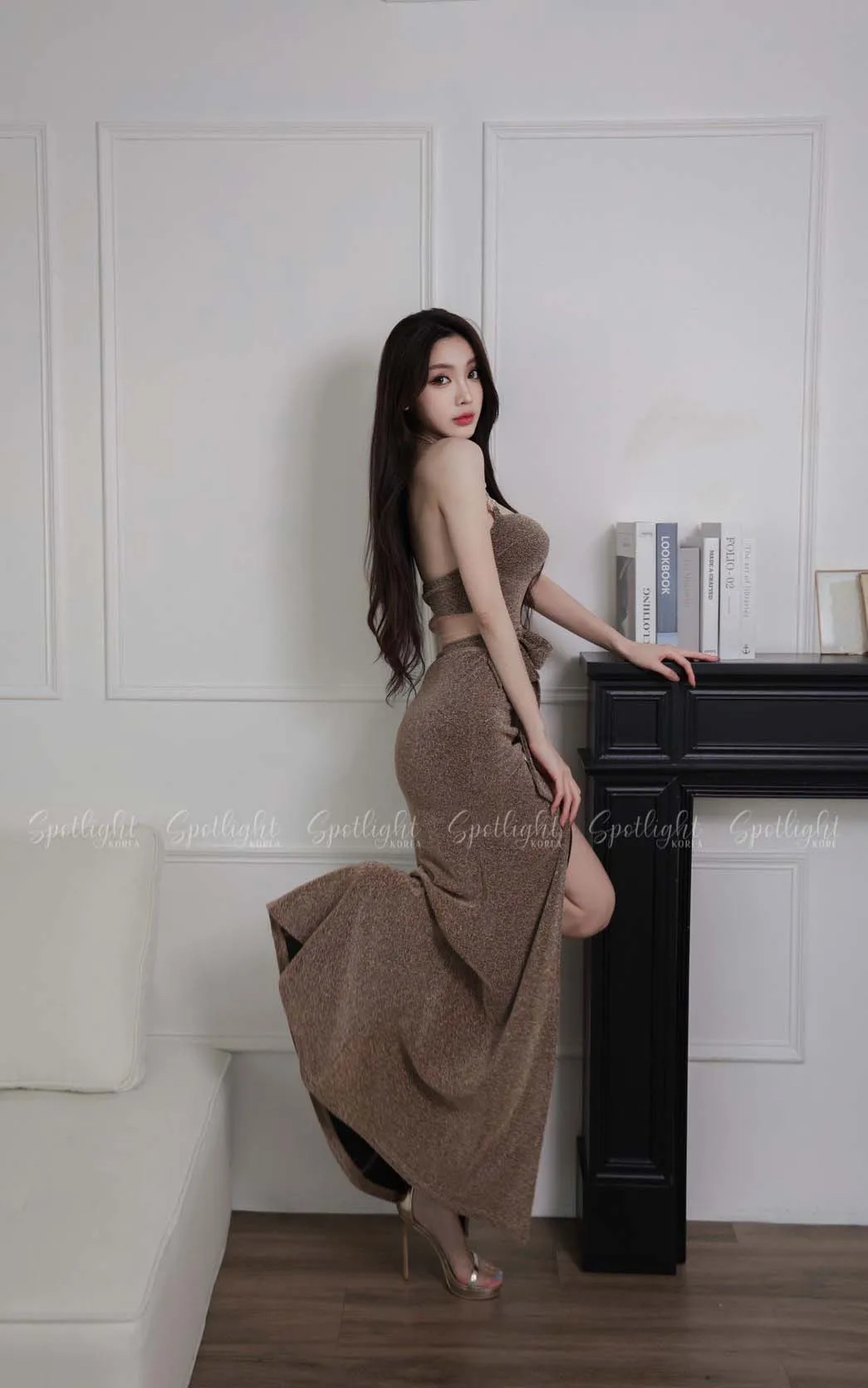 | 彈性金蔥布 | 有彈性 | 後中開拉鏈/附罩杯 |