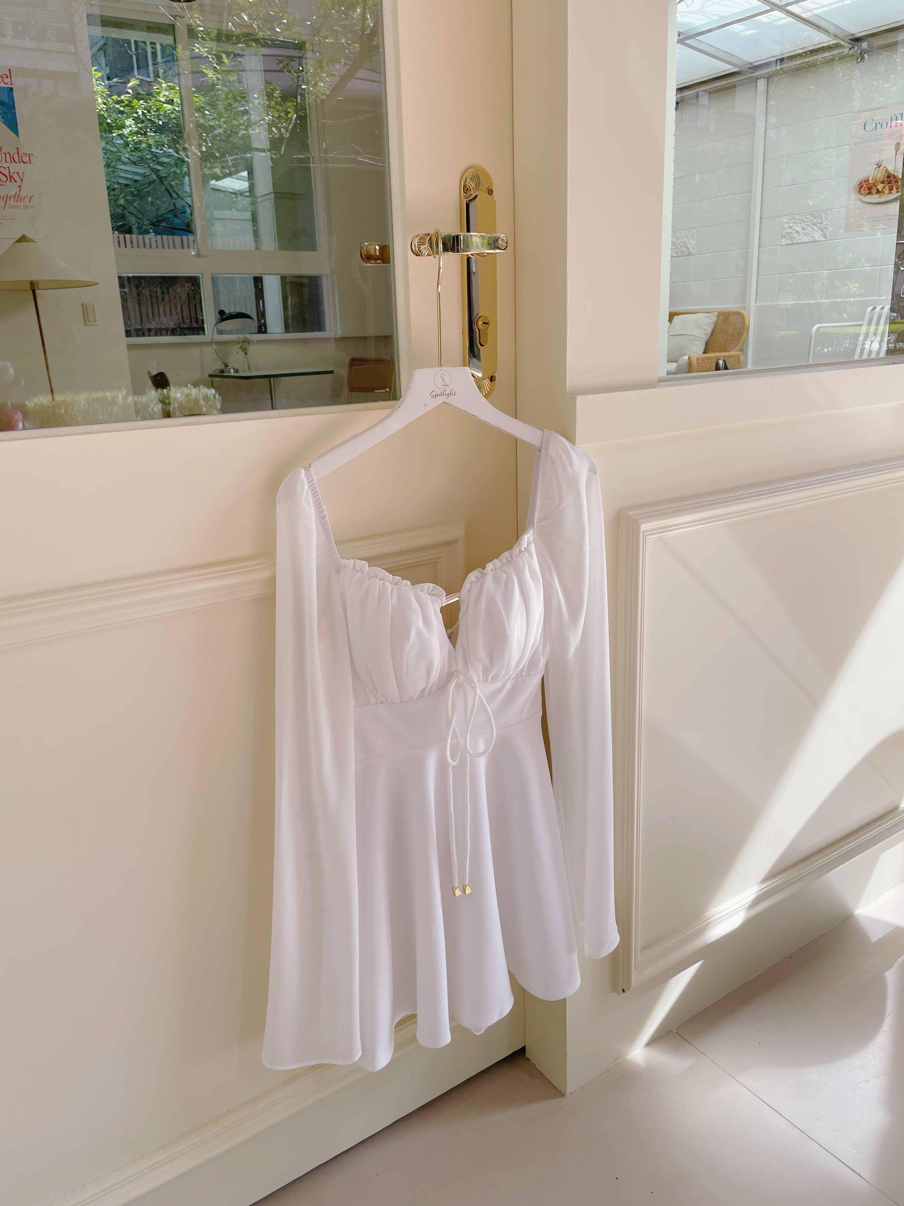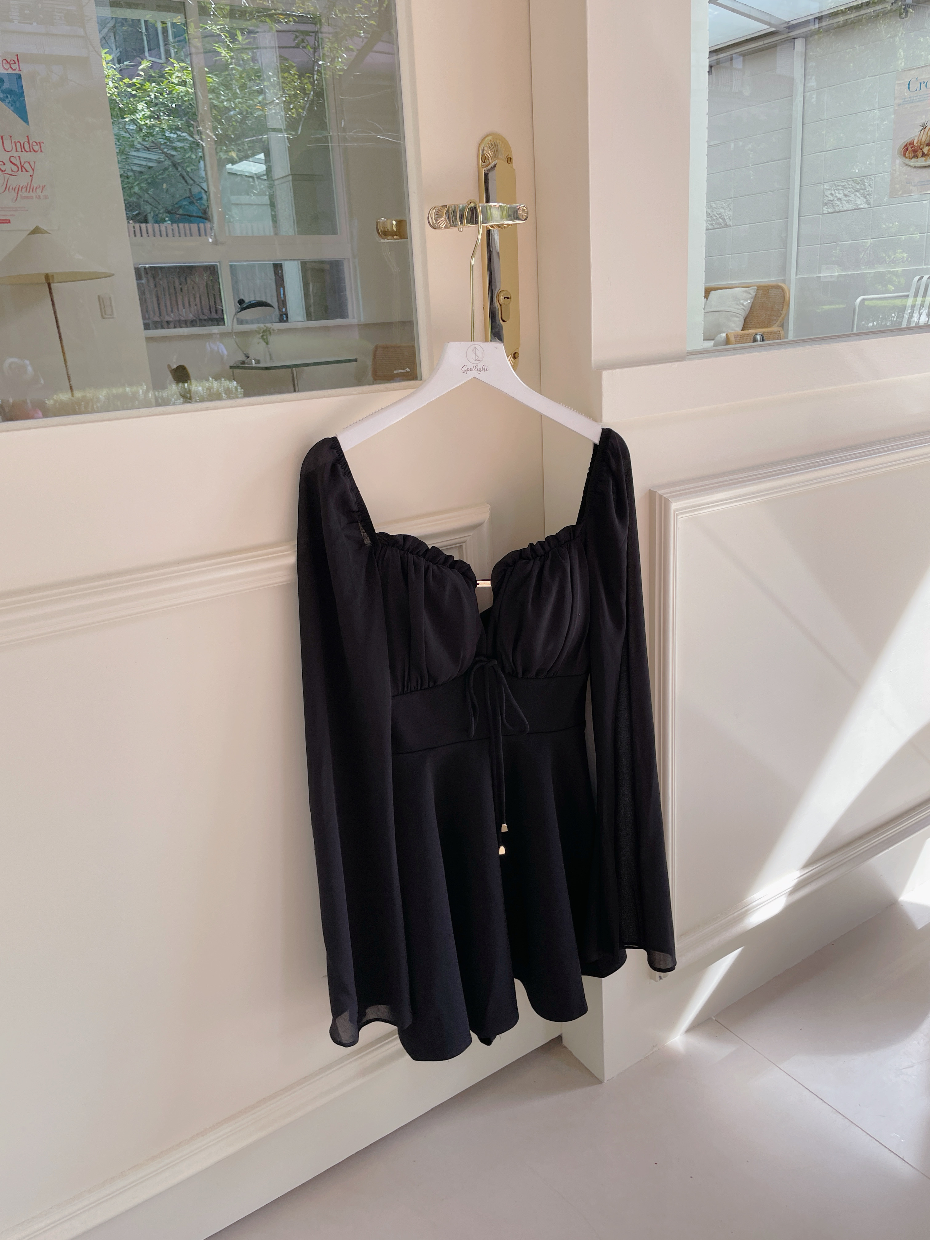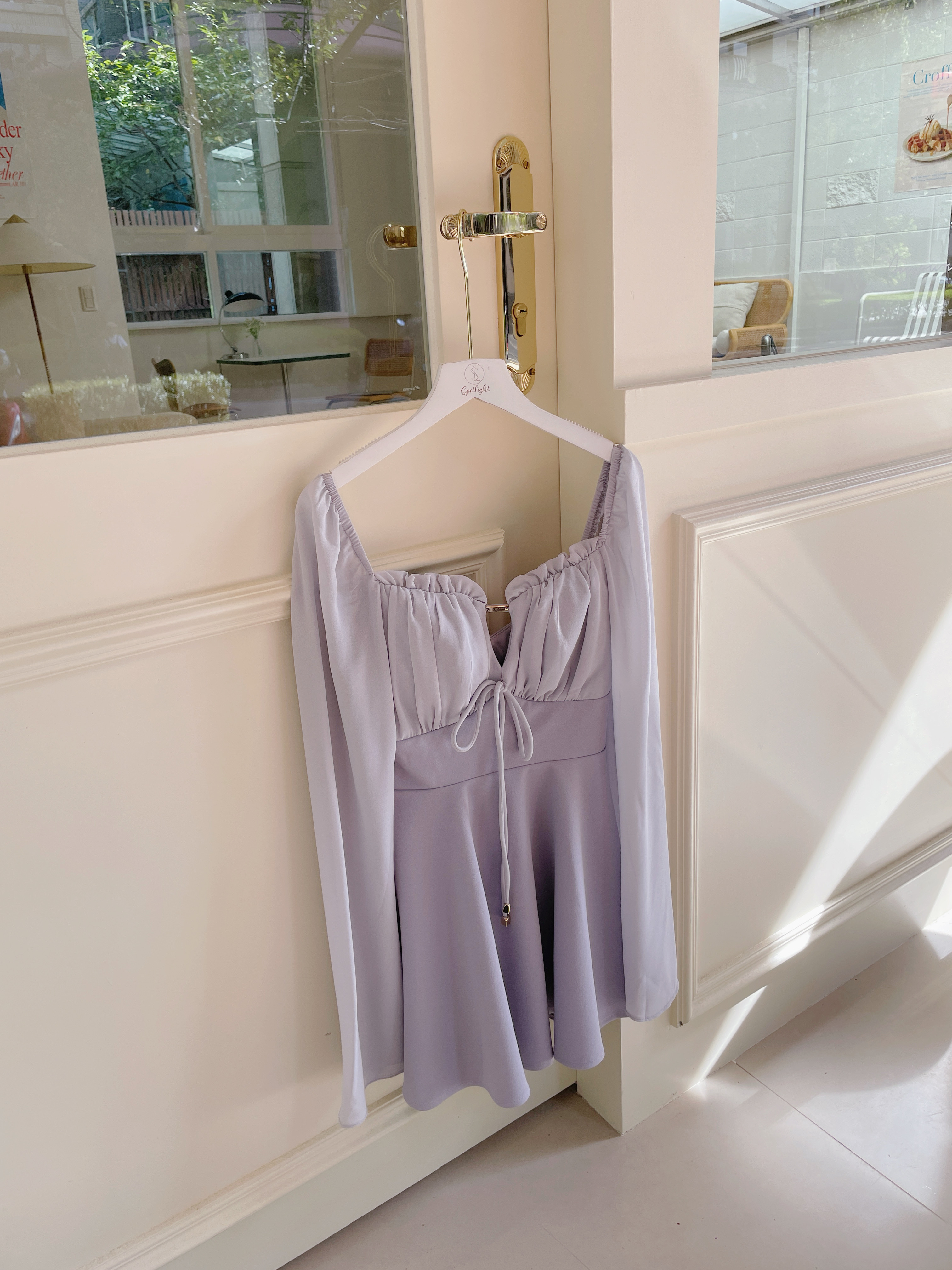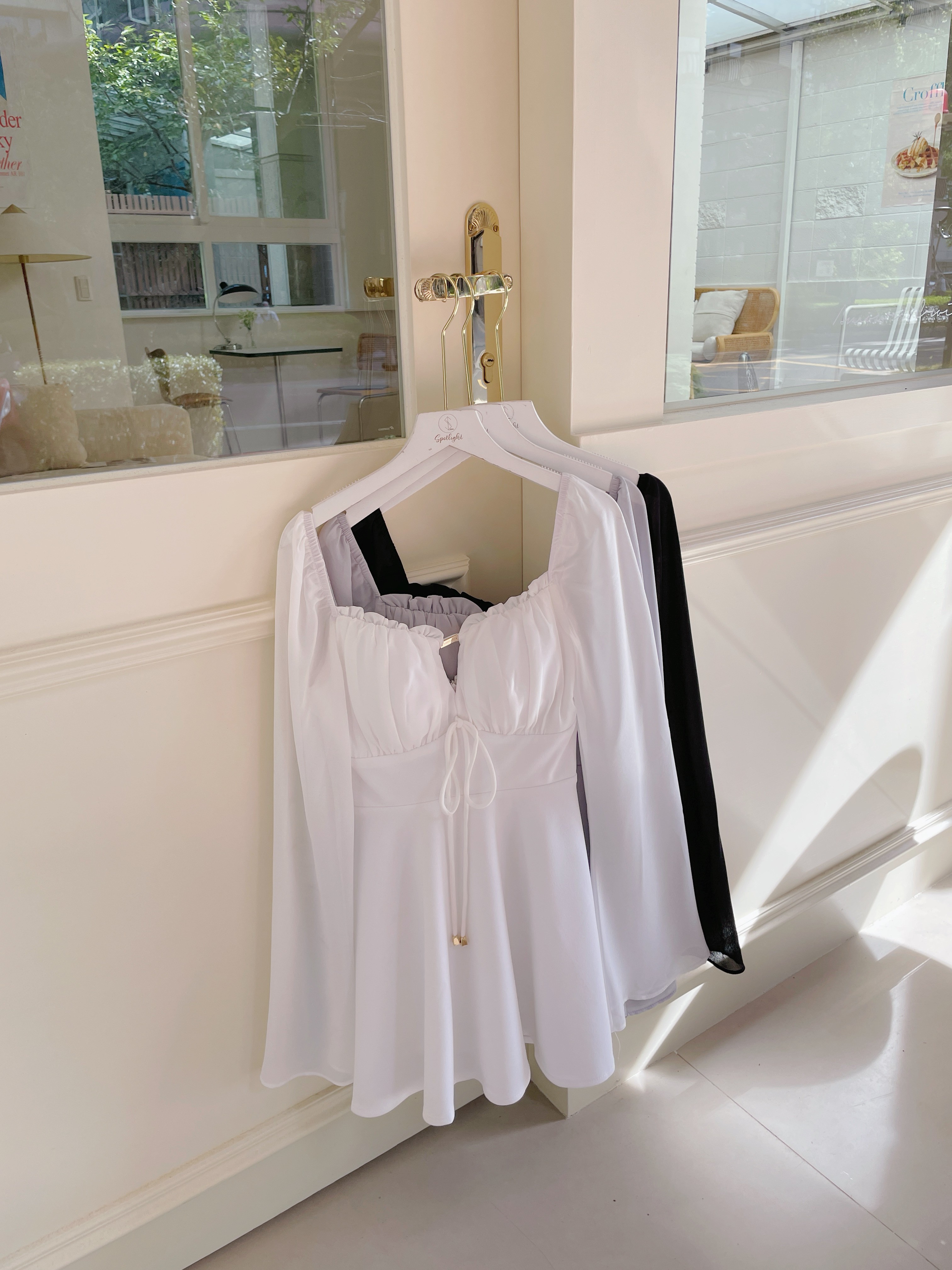 【SET】訂製款 月霧輕紗 花苞金標拼雪紡袖下傘短洋