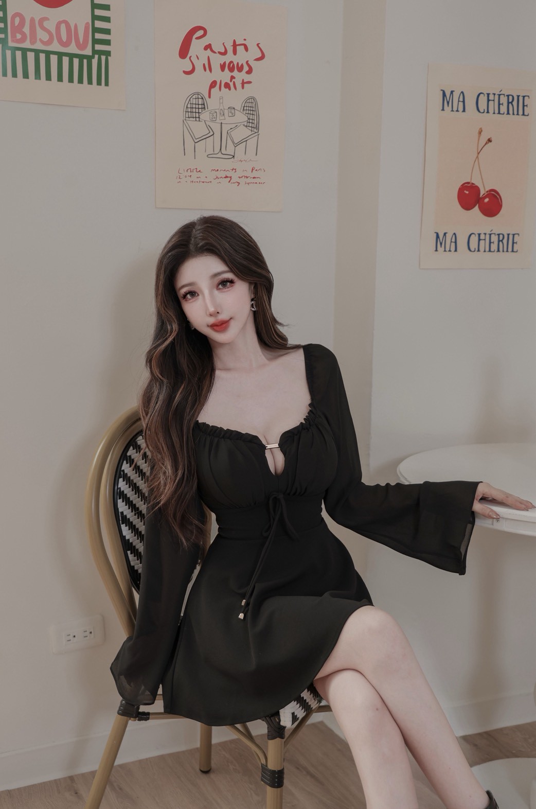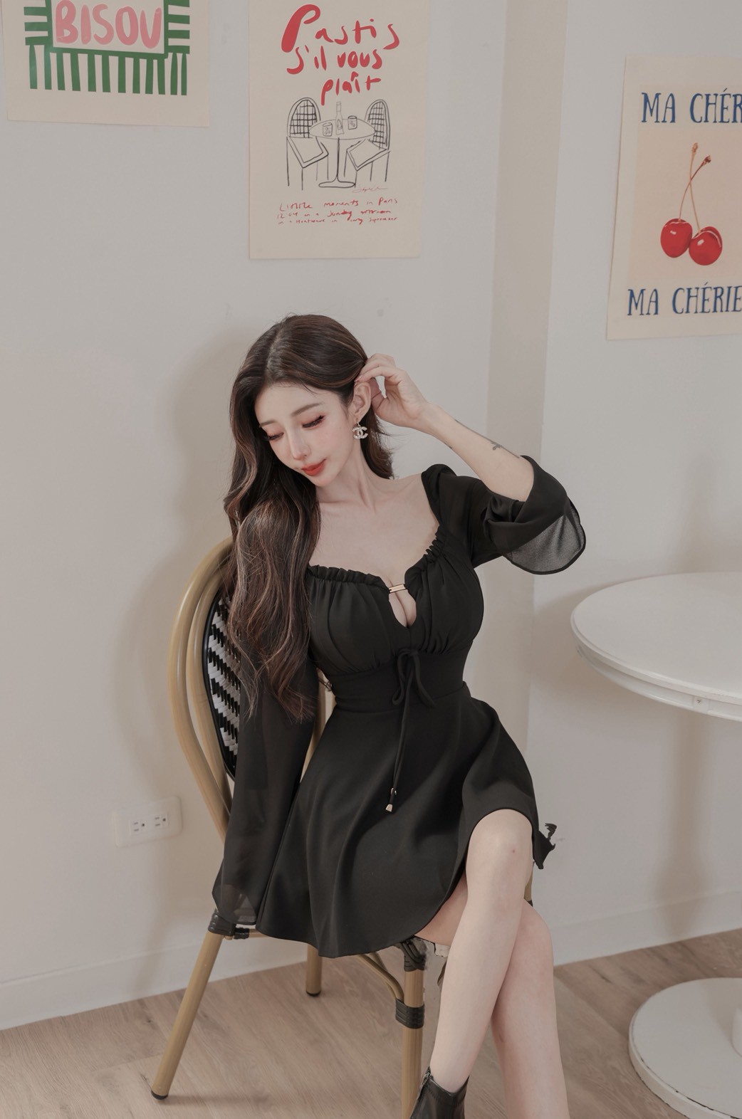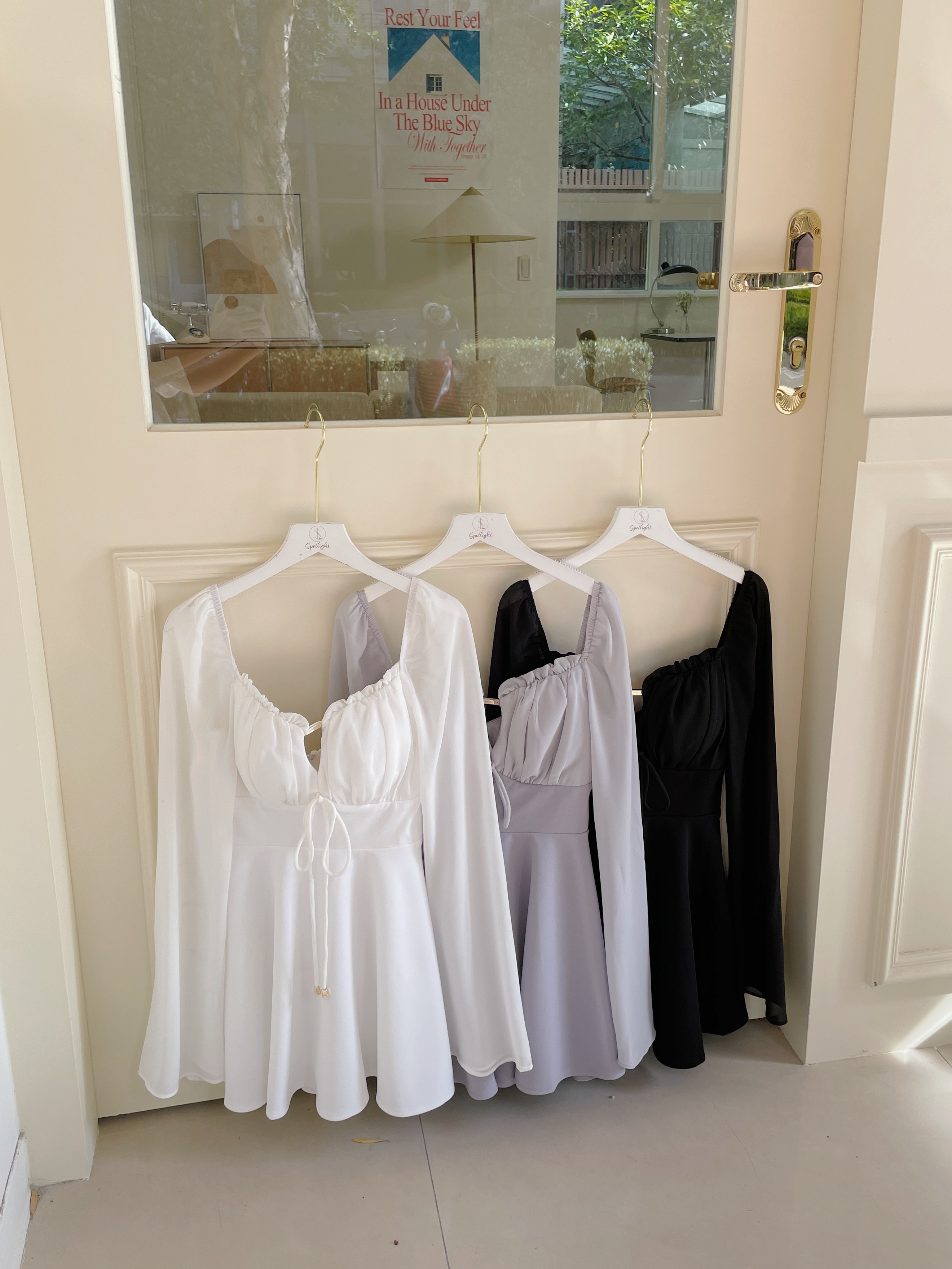 【SET】訂製款 月霧輕紗 花苞金標拼雪紡袖下傘短洋