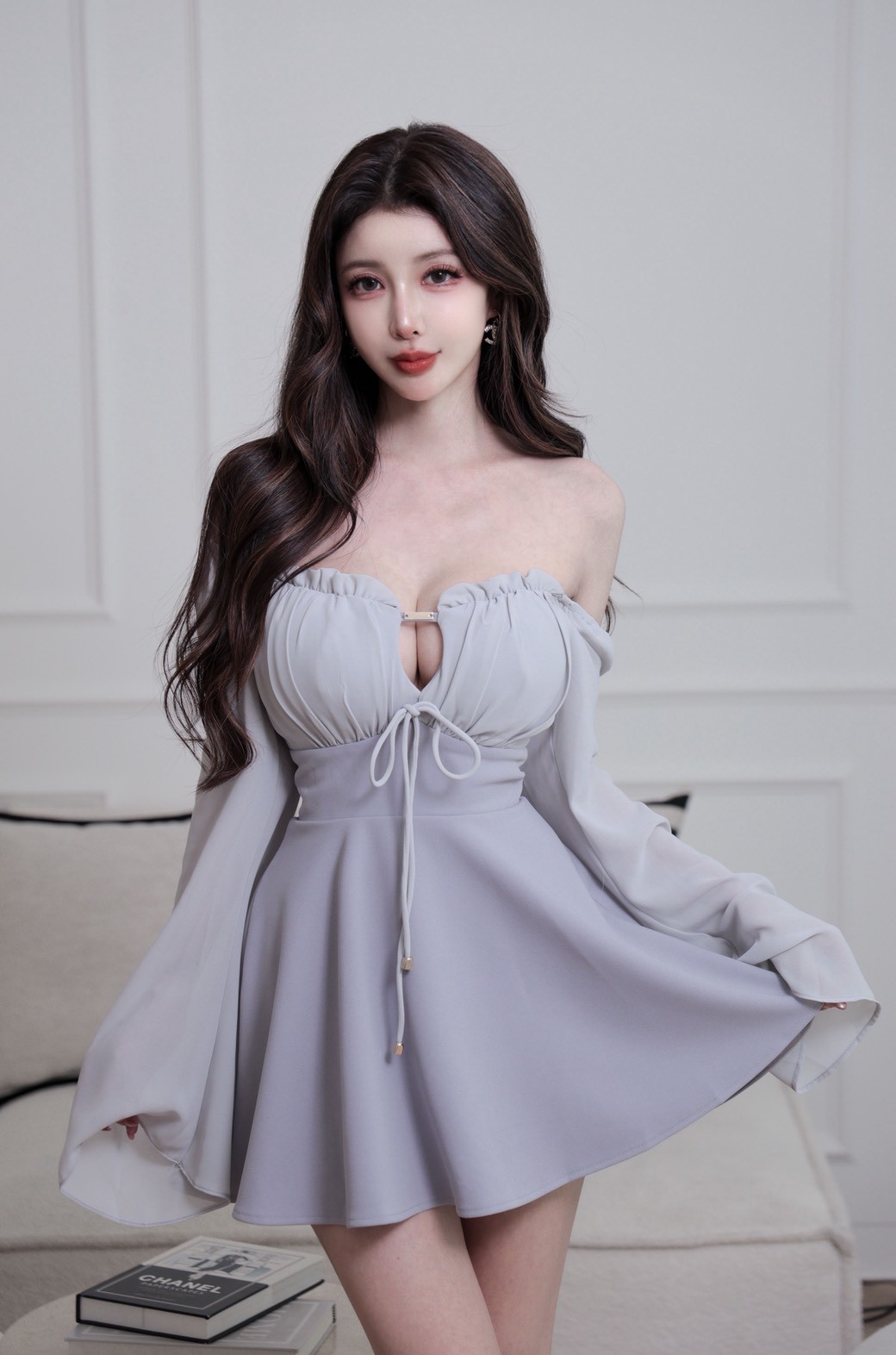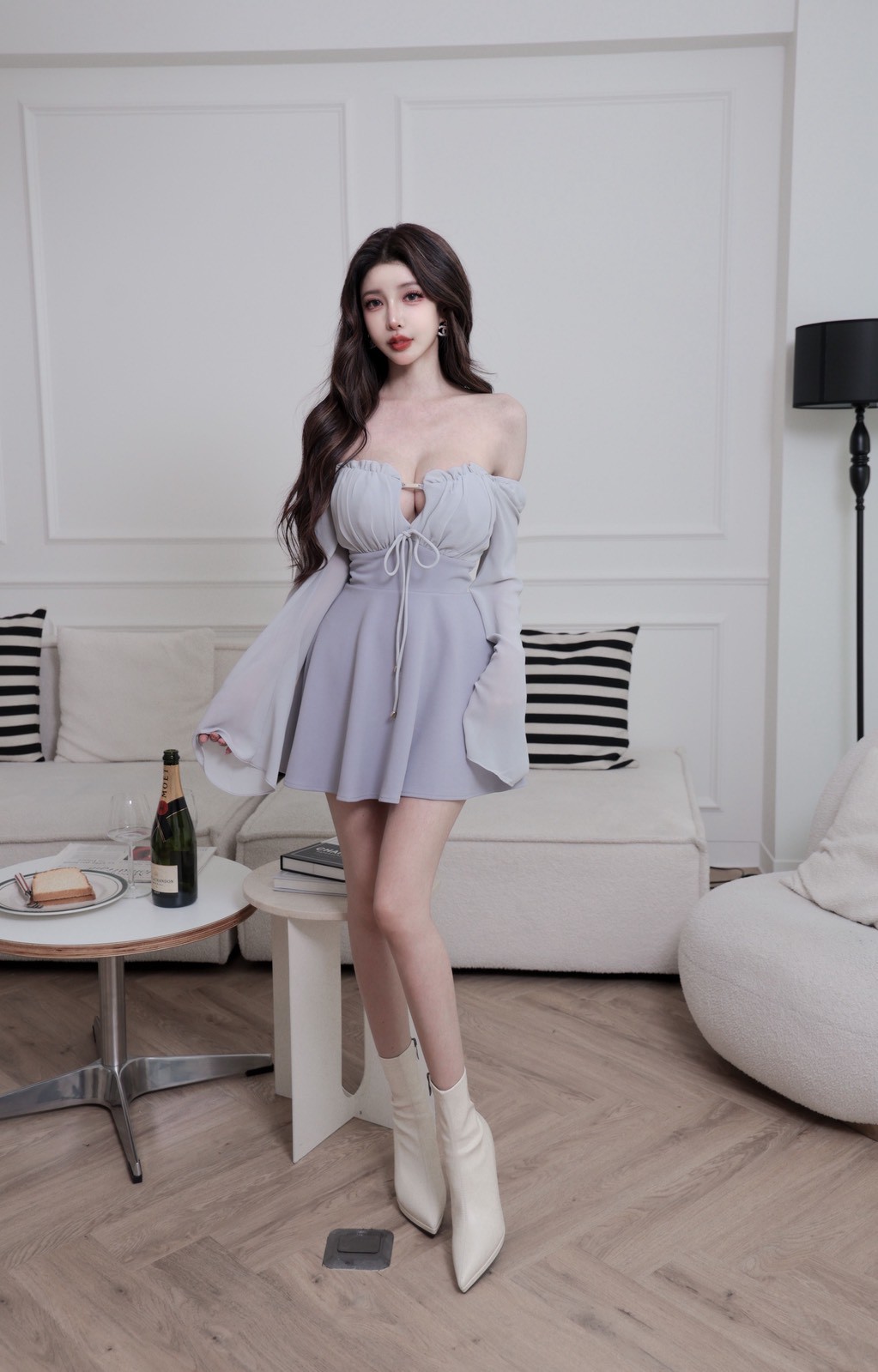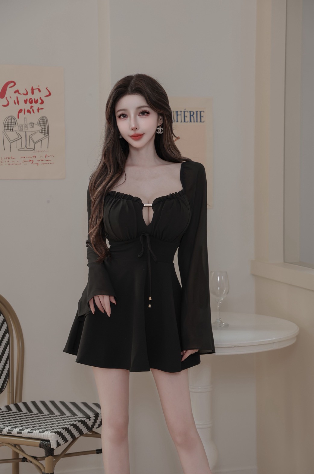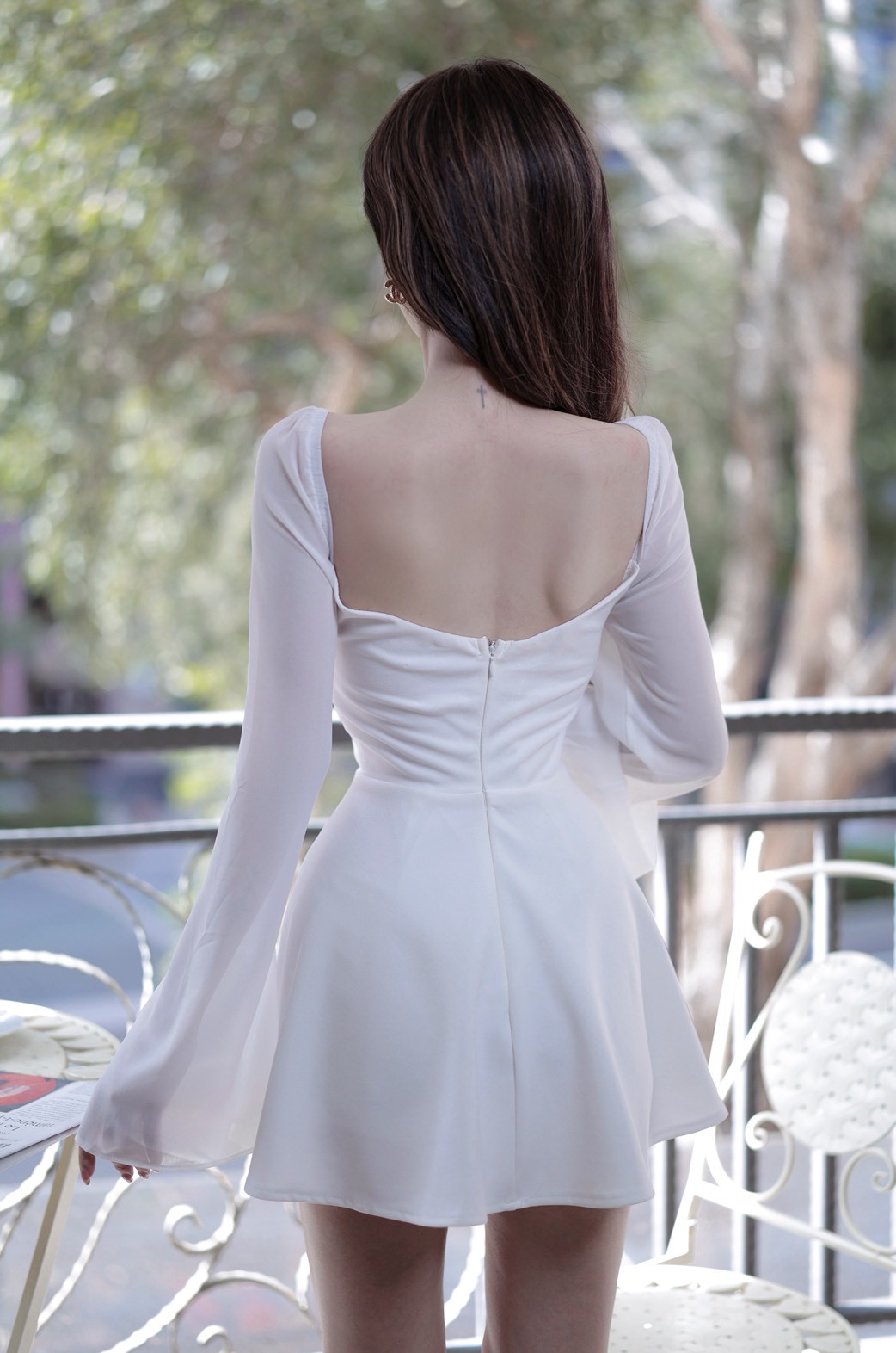 【SET】訂製款 月霧輕紗 花苞金標拼雪紡袖下傘短洋