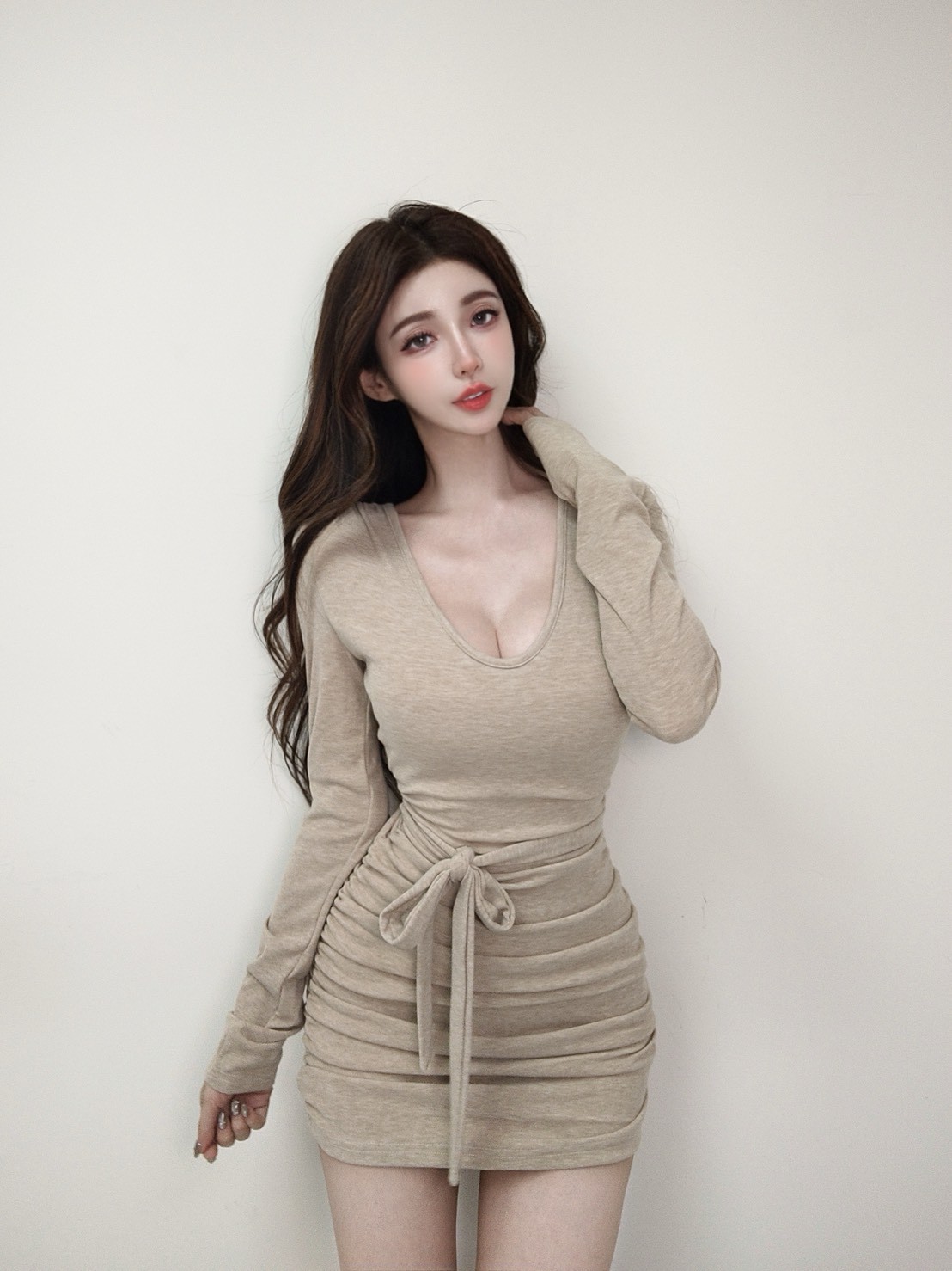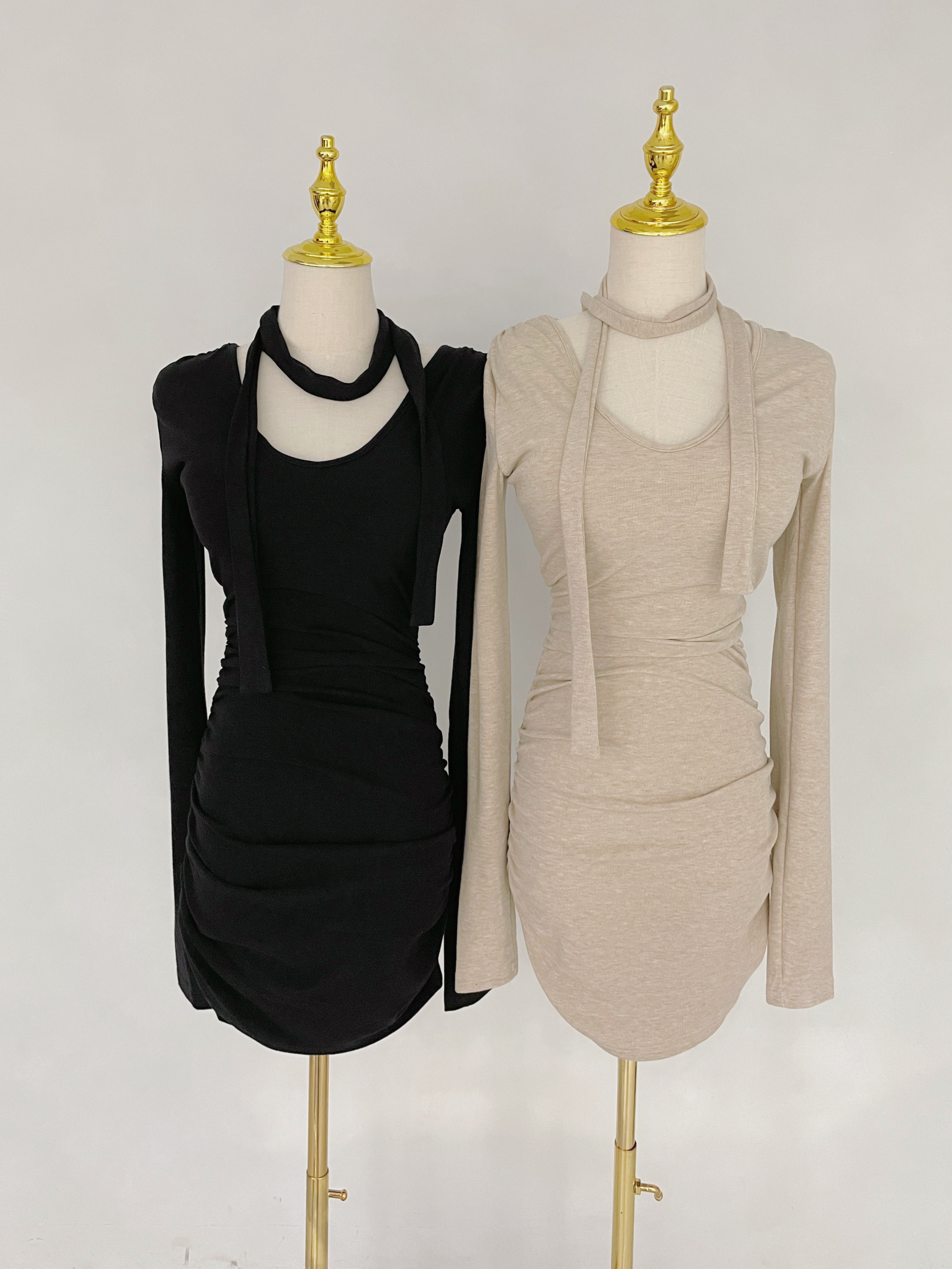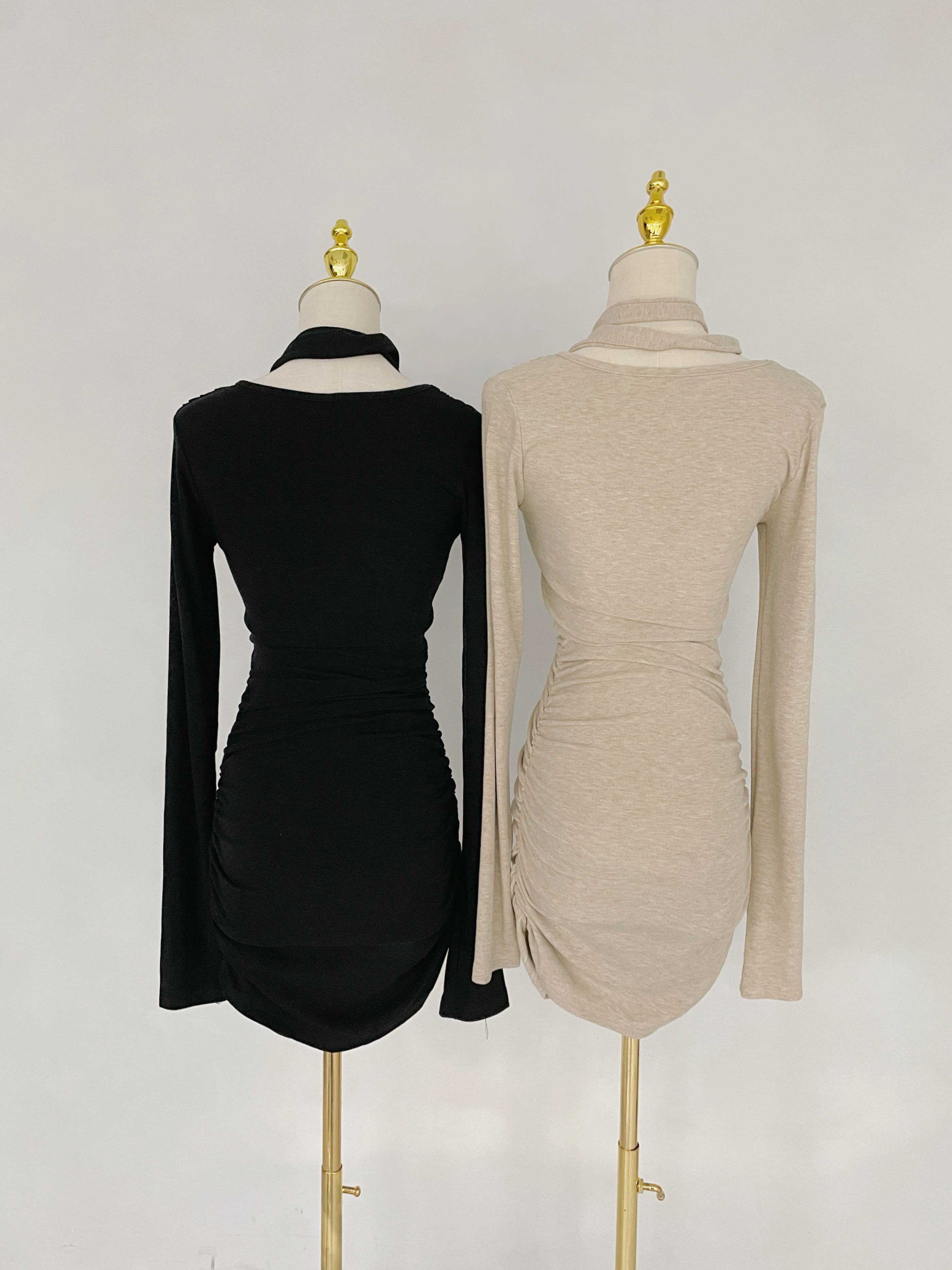 V領收腰繞脖綁帶短洋