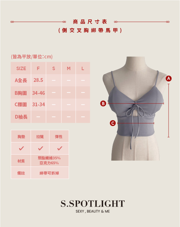 精心設計的側交叉胸綁帶,微露性感胸型,展現獨特魅力💘