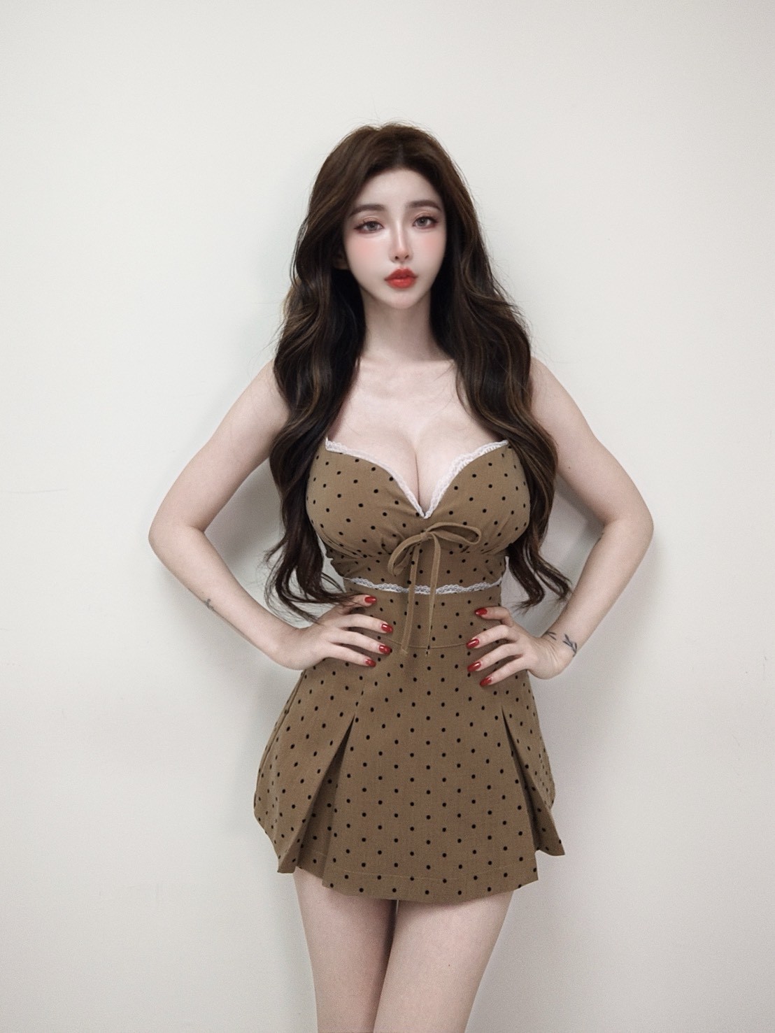 【SET】訂製款 法式初戀 蕾絲波點背心+百褶裙