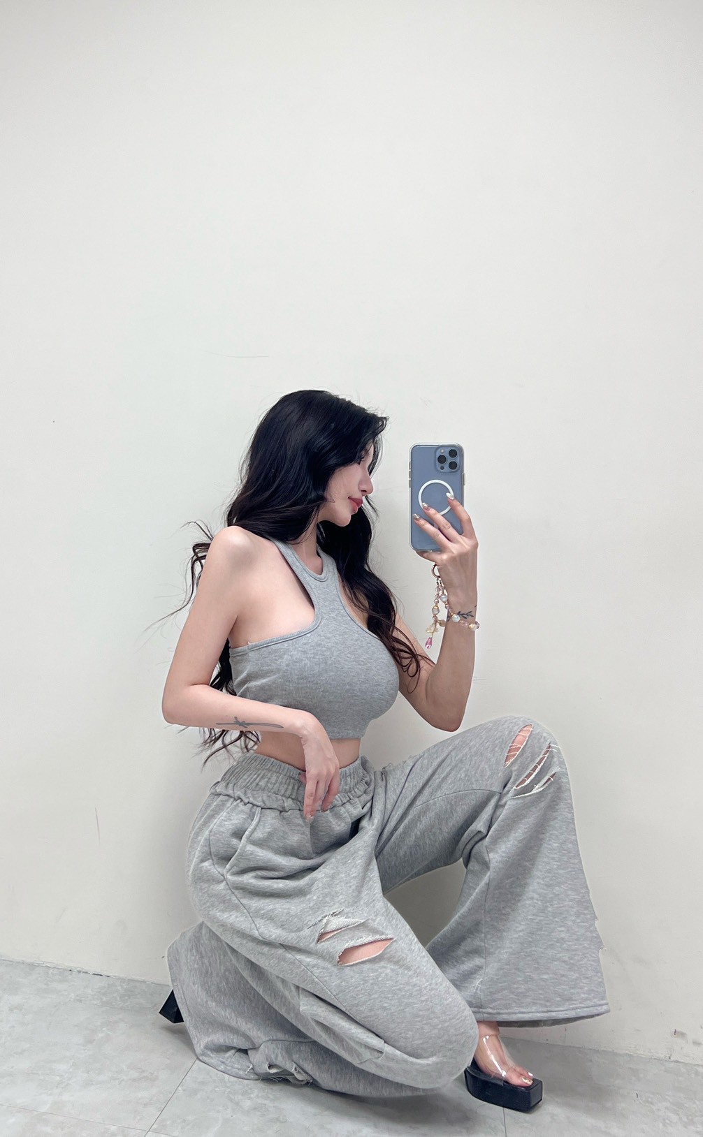 上衣長度太長可以像禹霏女神一樣把上衣摺進去唷~