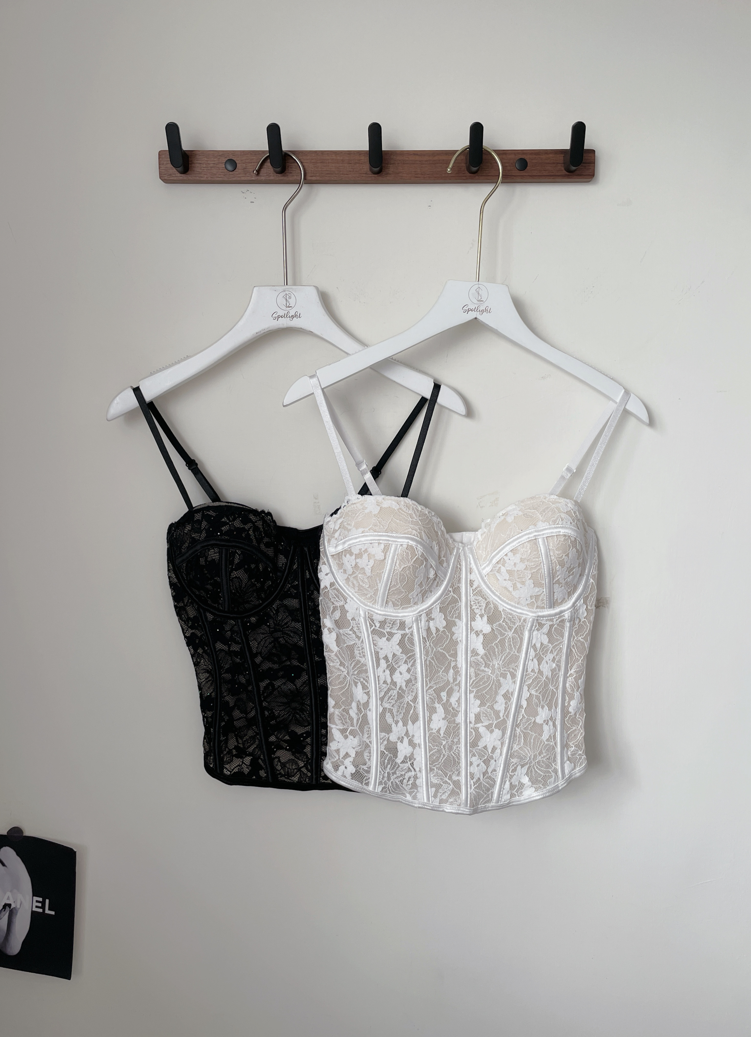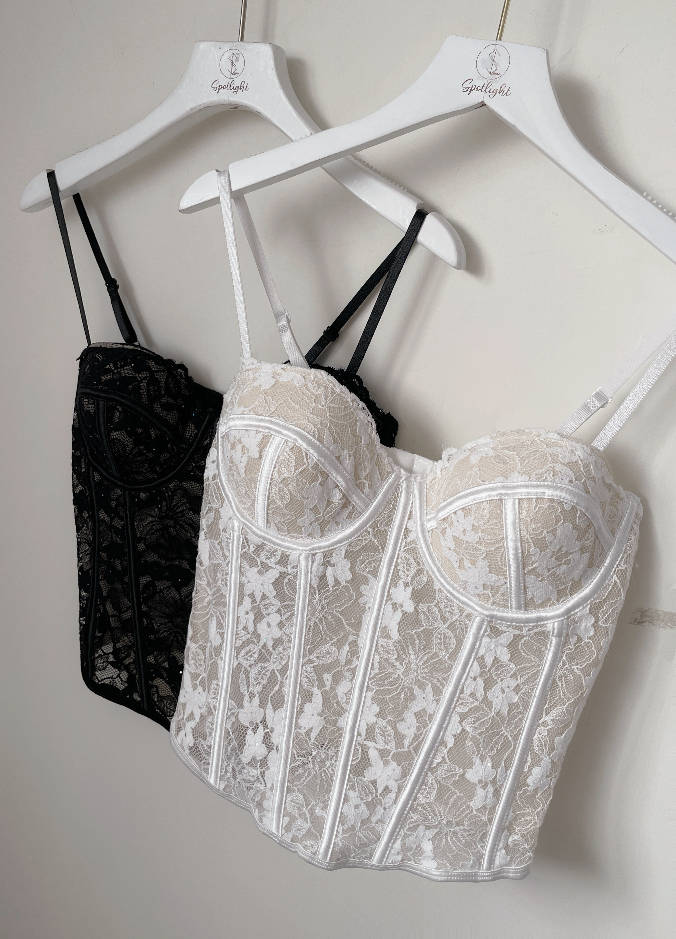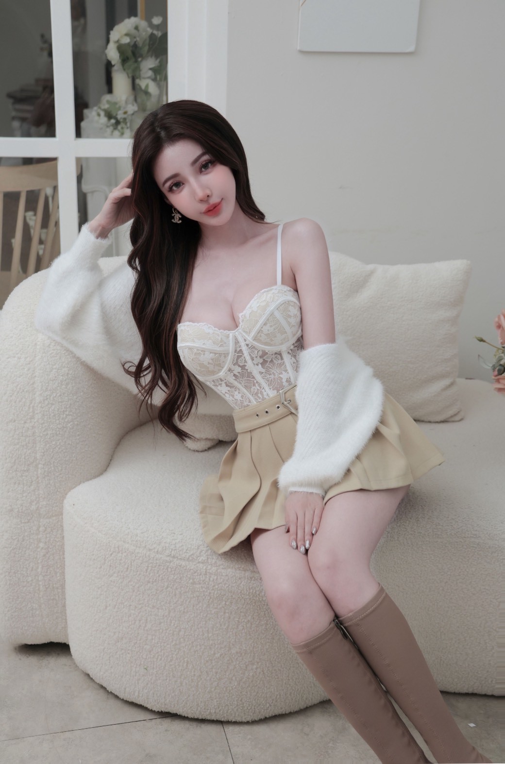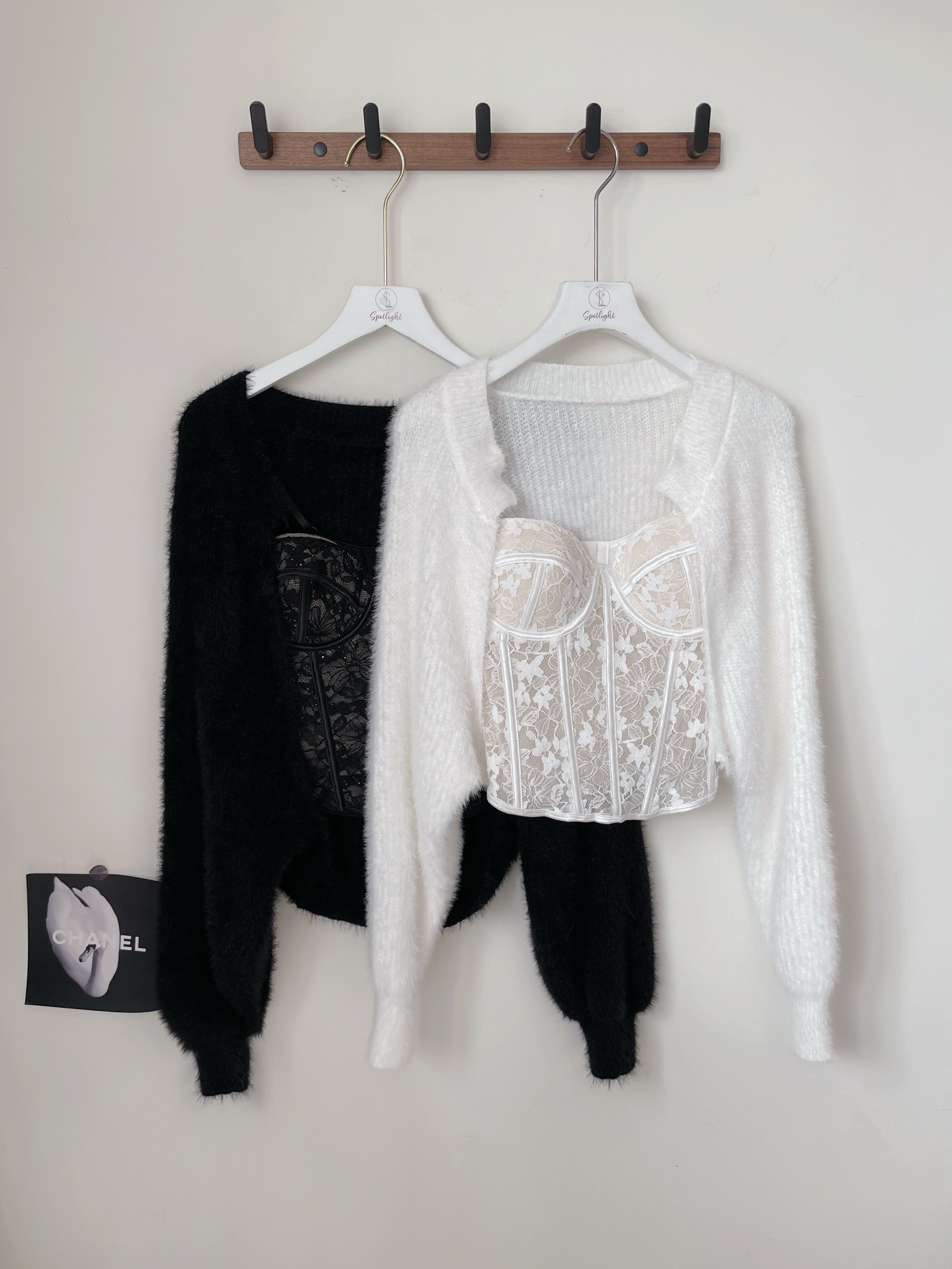 【SET】亮片蕾絲魚骨馬甲+毛毛短版外套