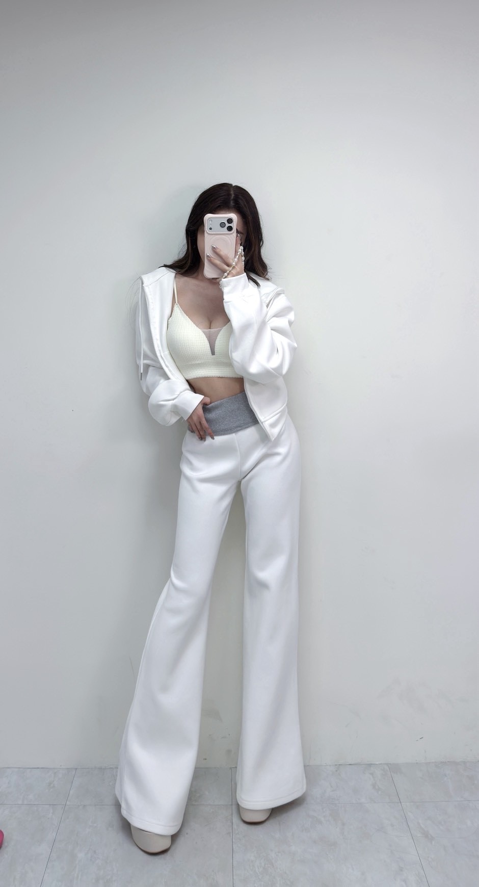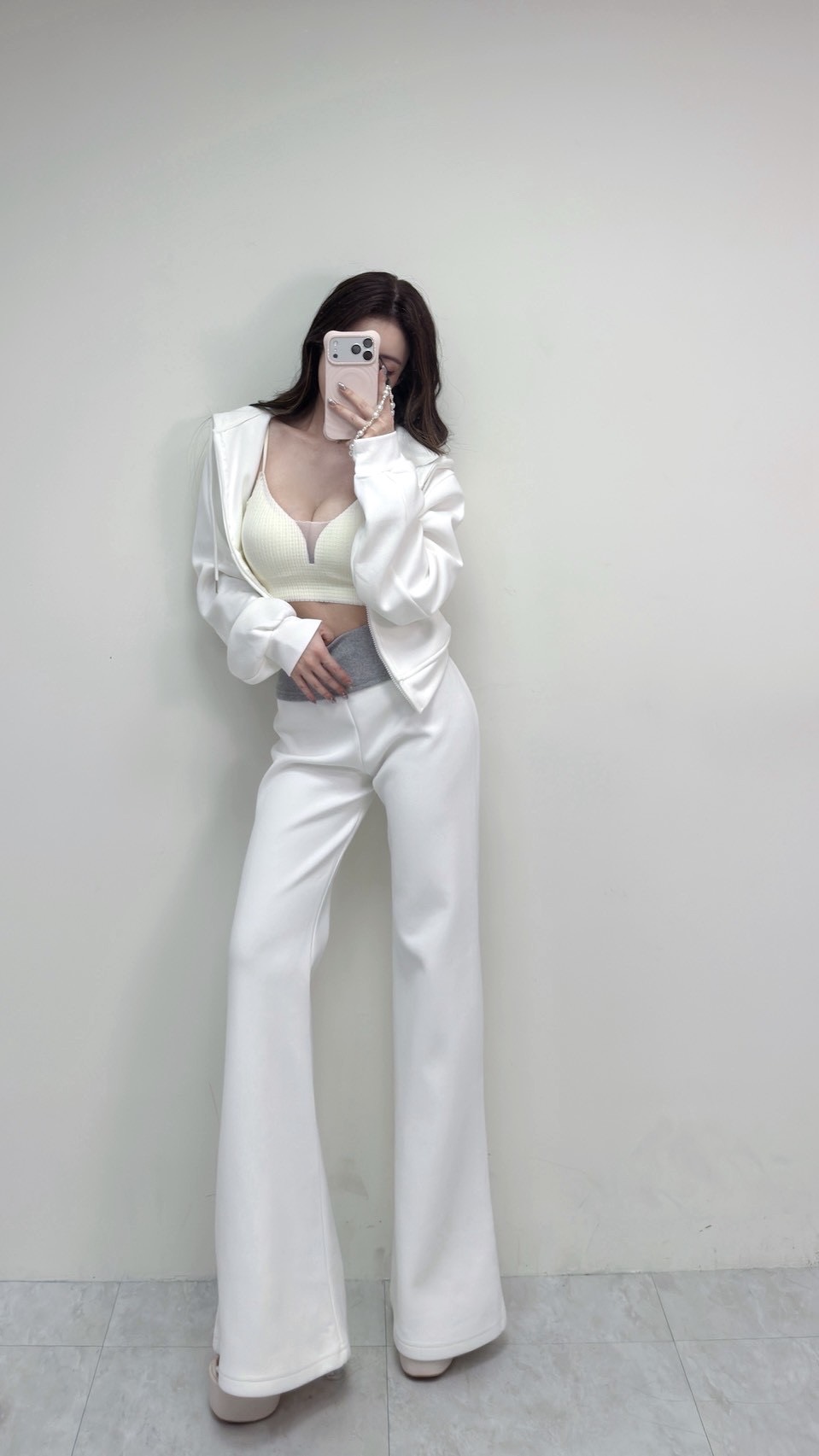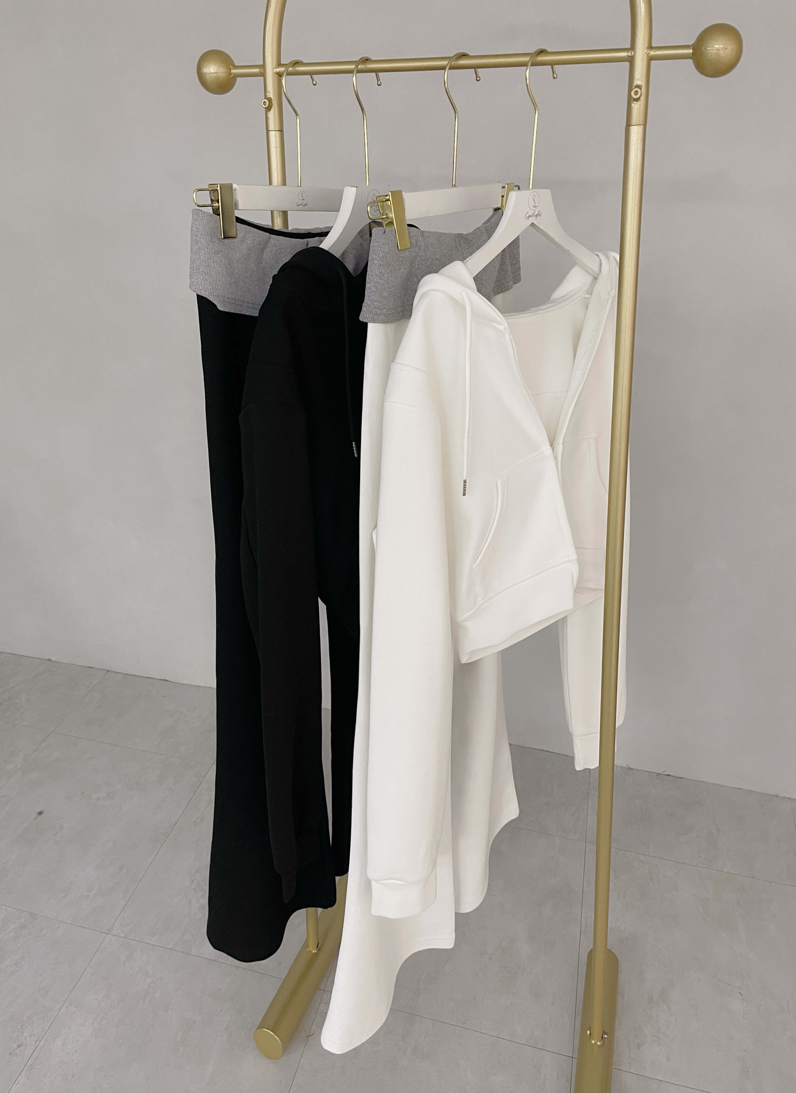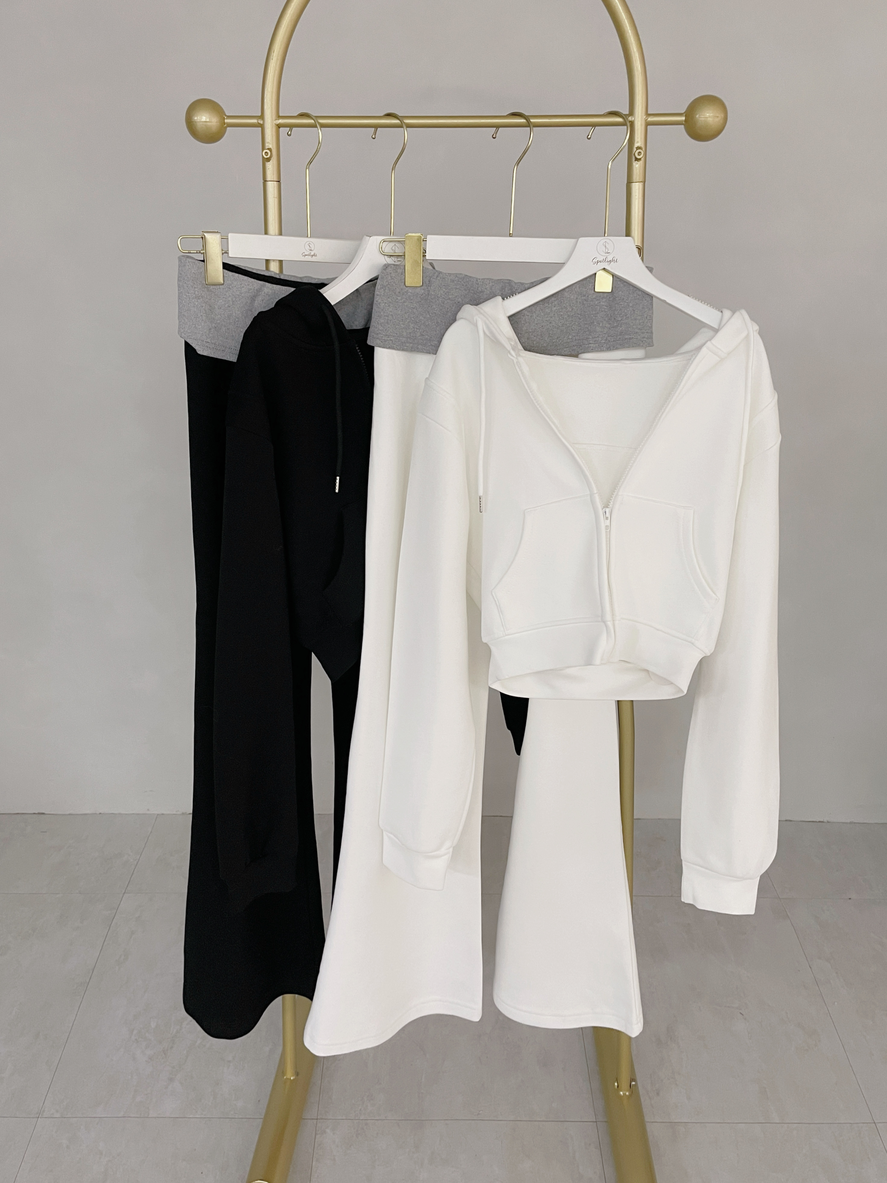 【SET】厚磅質感 韓國短版連帽外套+反折撞色喇叭褲