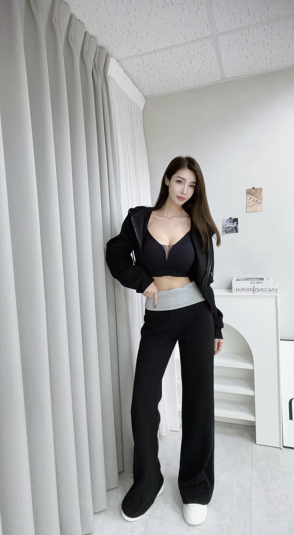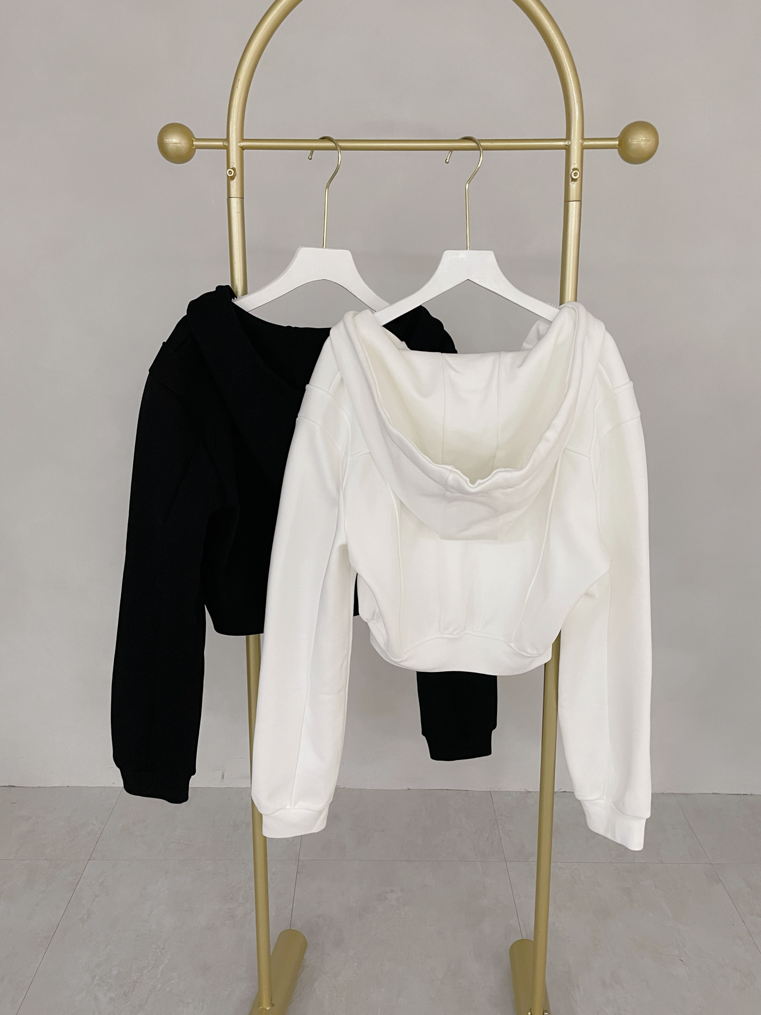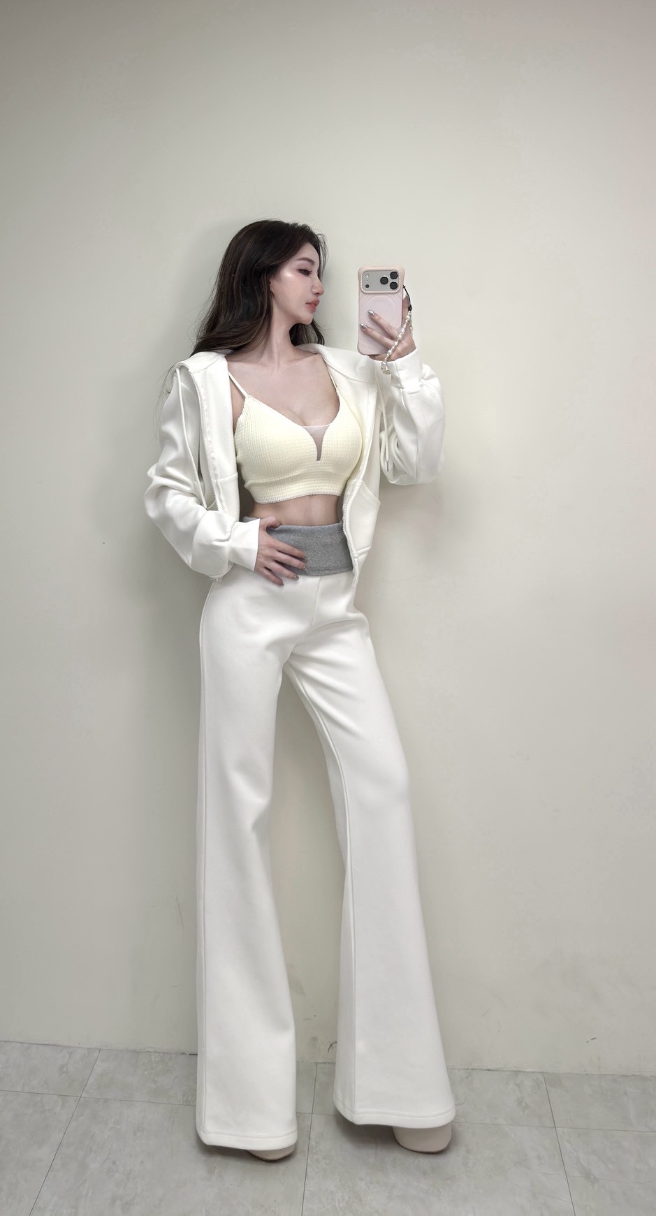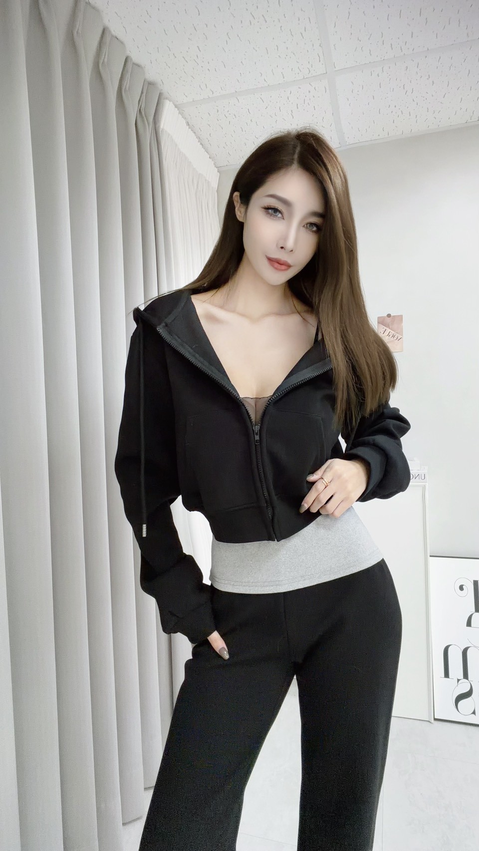 【SET】厚磅質感 韓國短版連帽外套+反折撞色喇叭褲