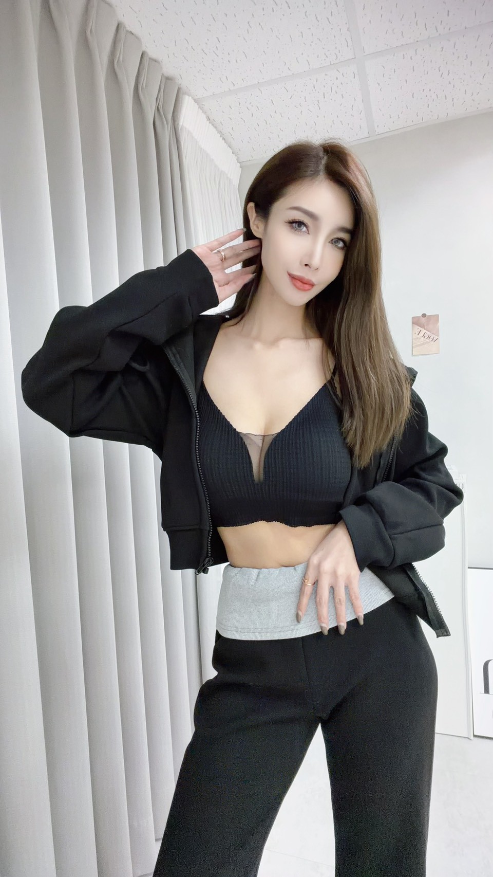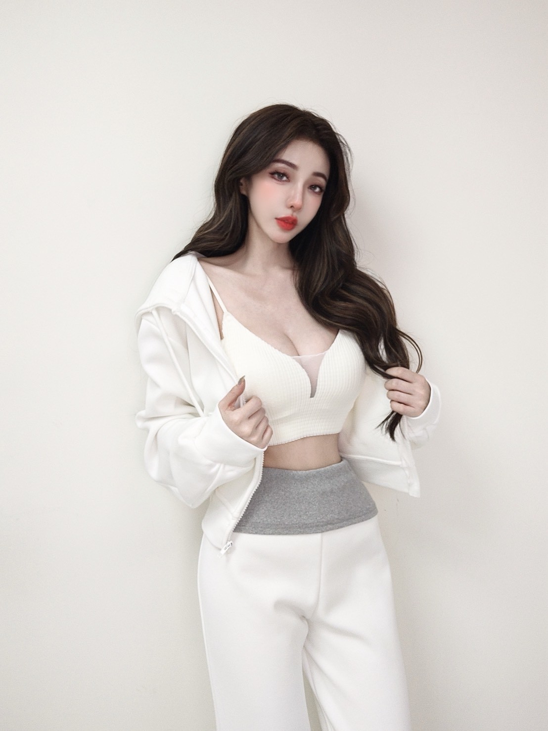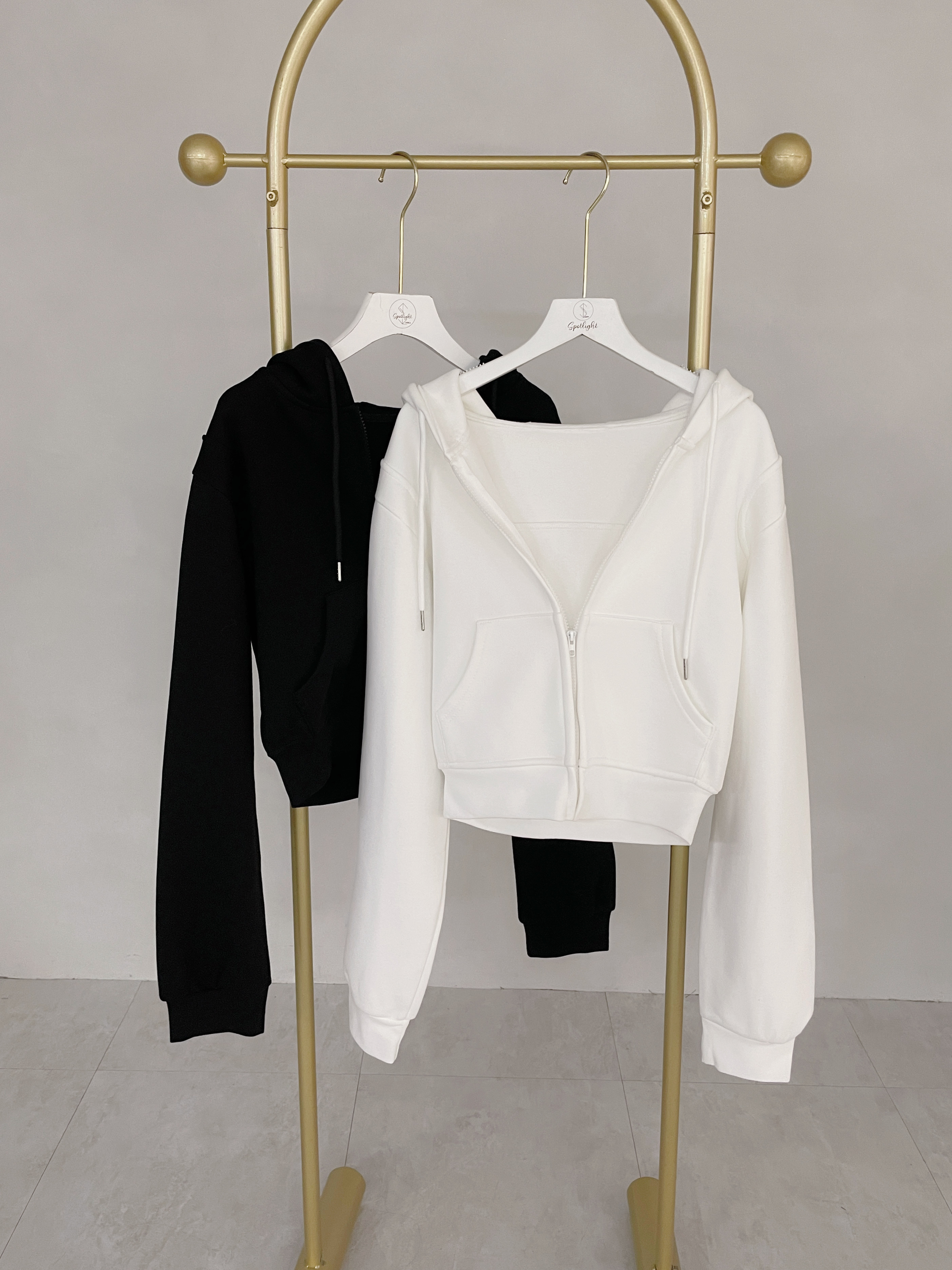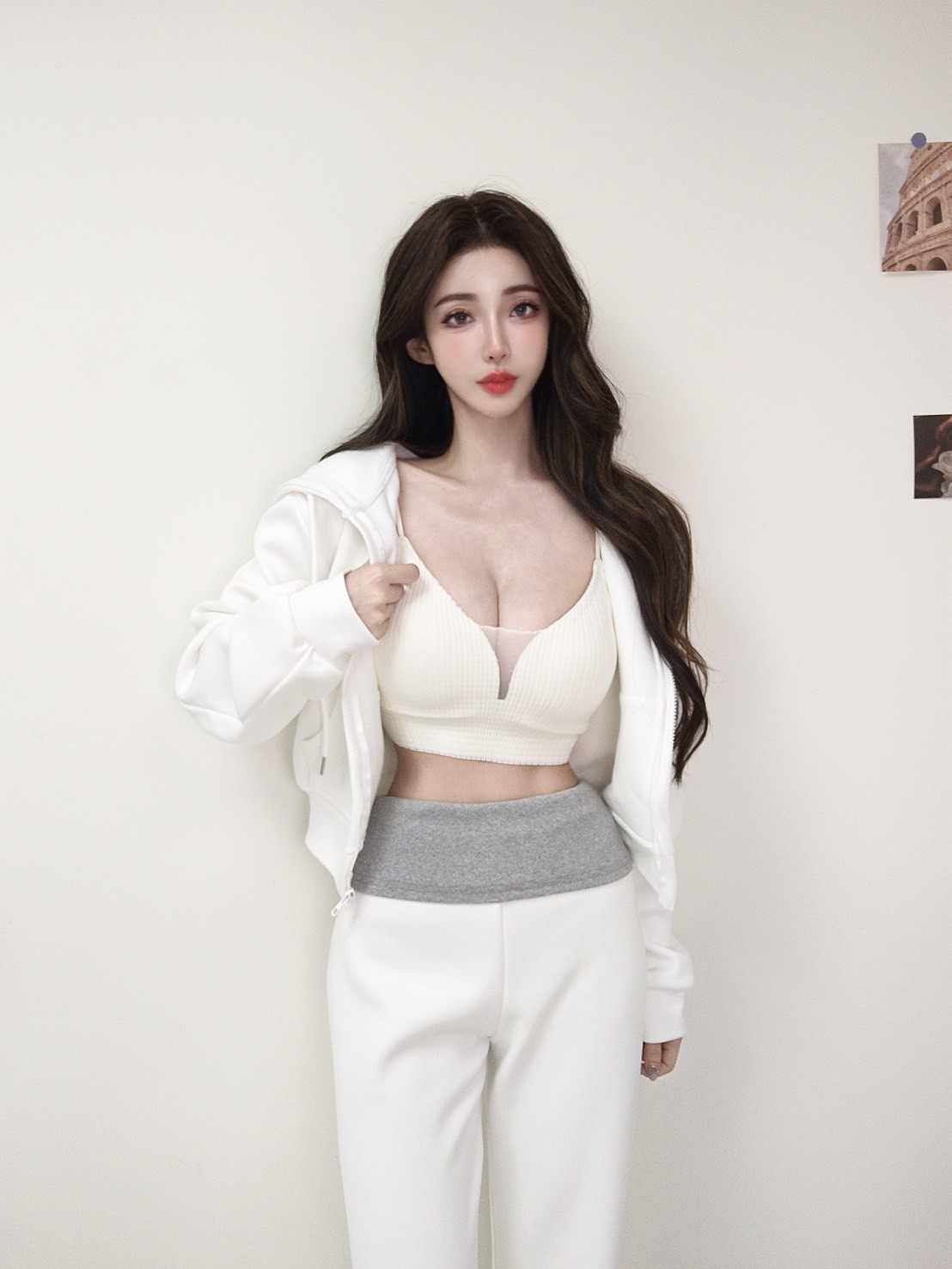 【SET】厚磅質感 韓國短版連帽外套+反折撞色喇叭褲