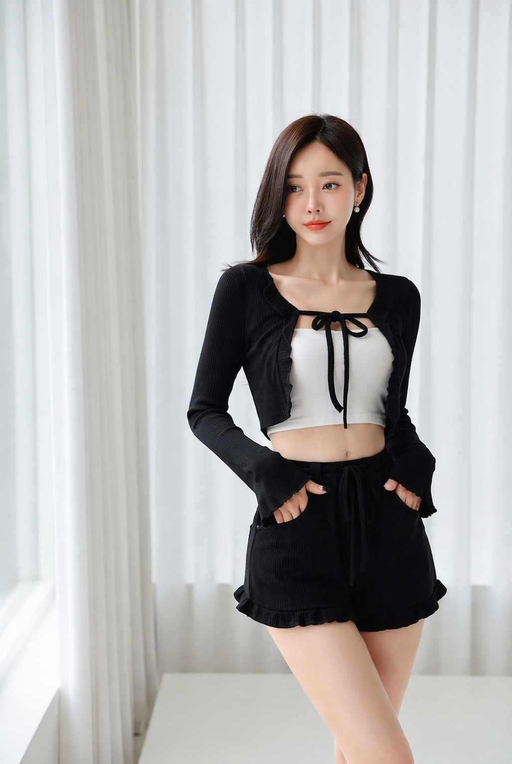 外套綁帶設計可依喜好調整鬆緊,慵懶隨性感。