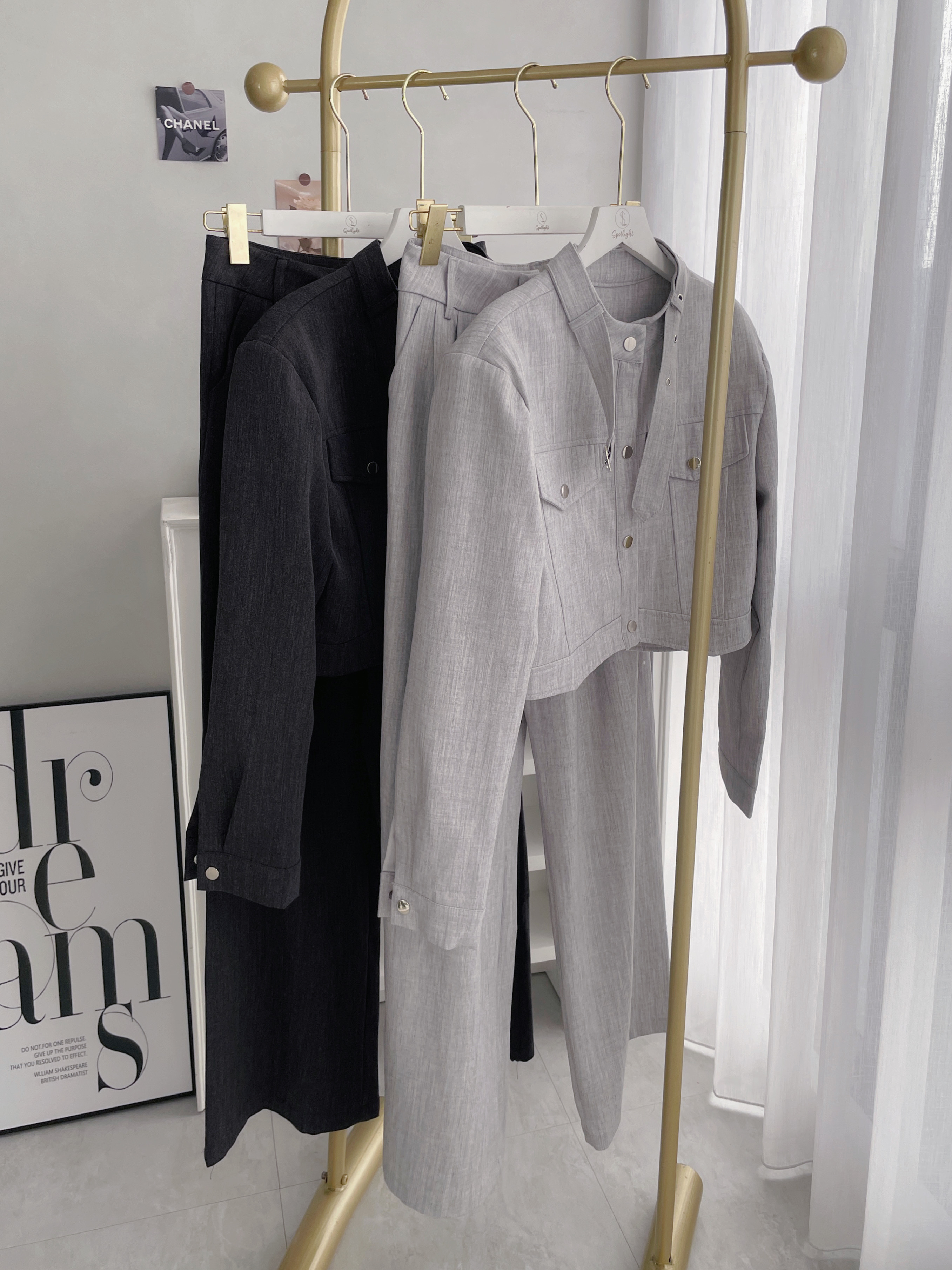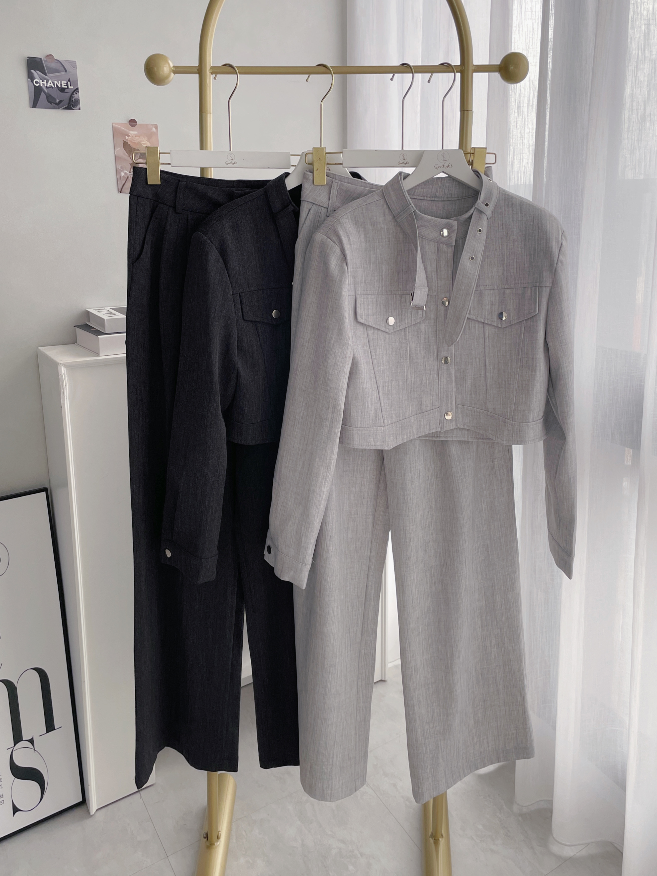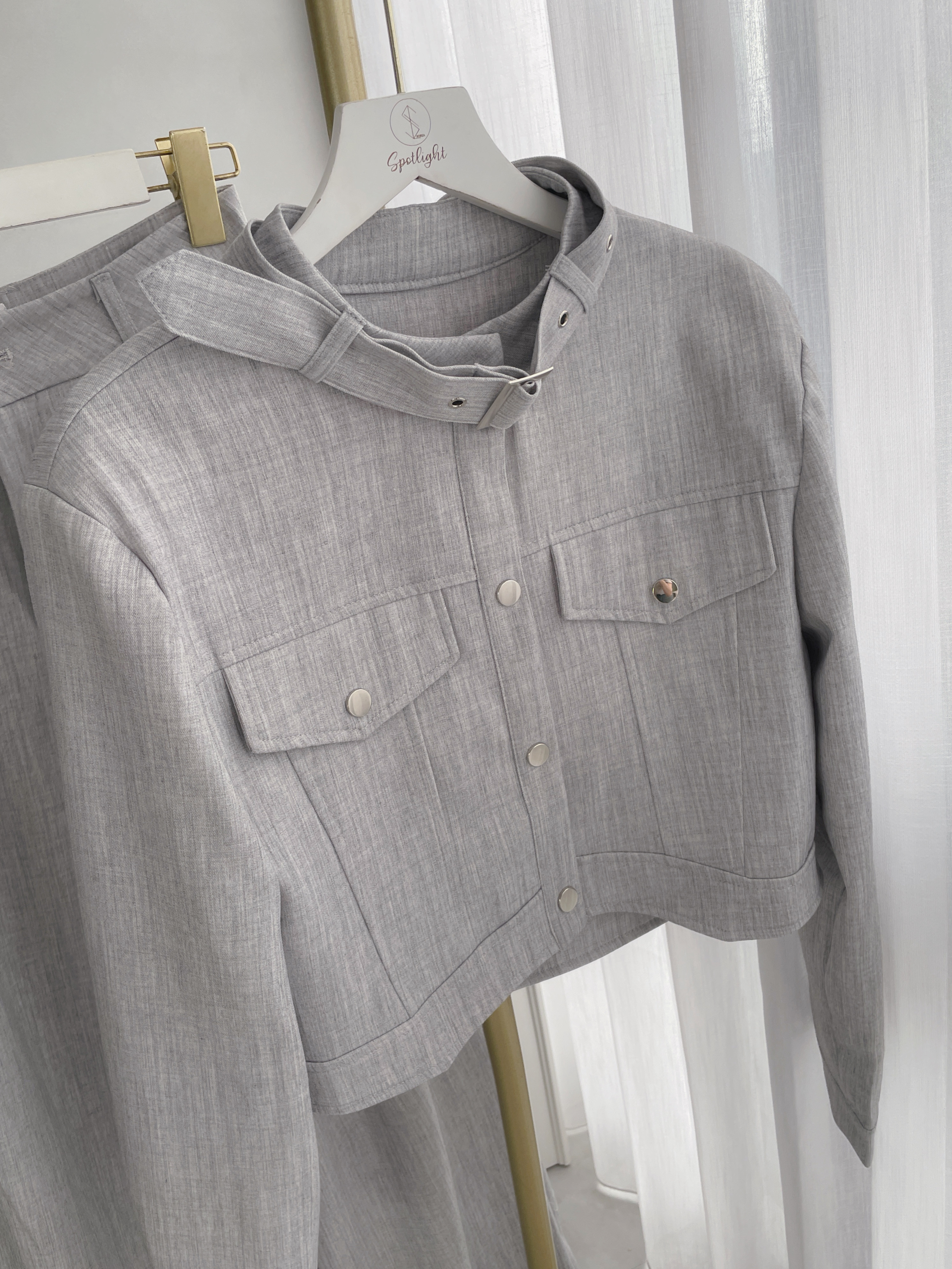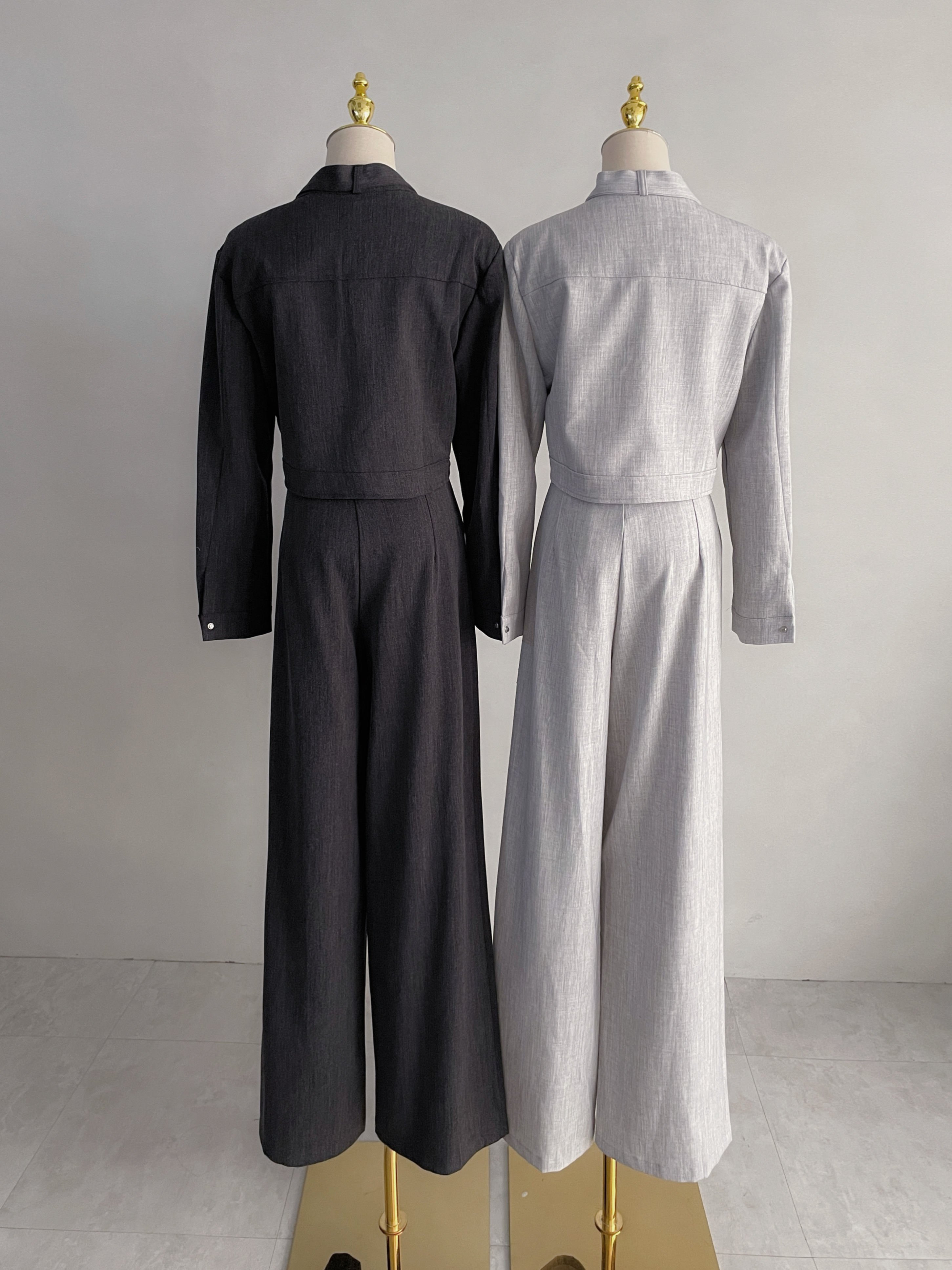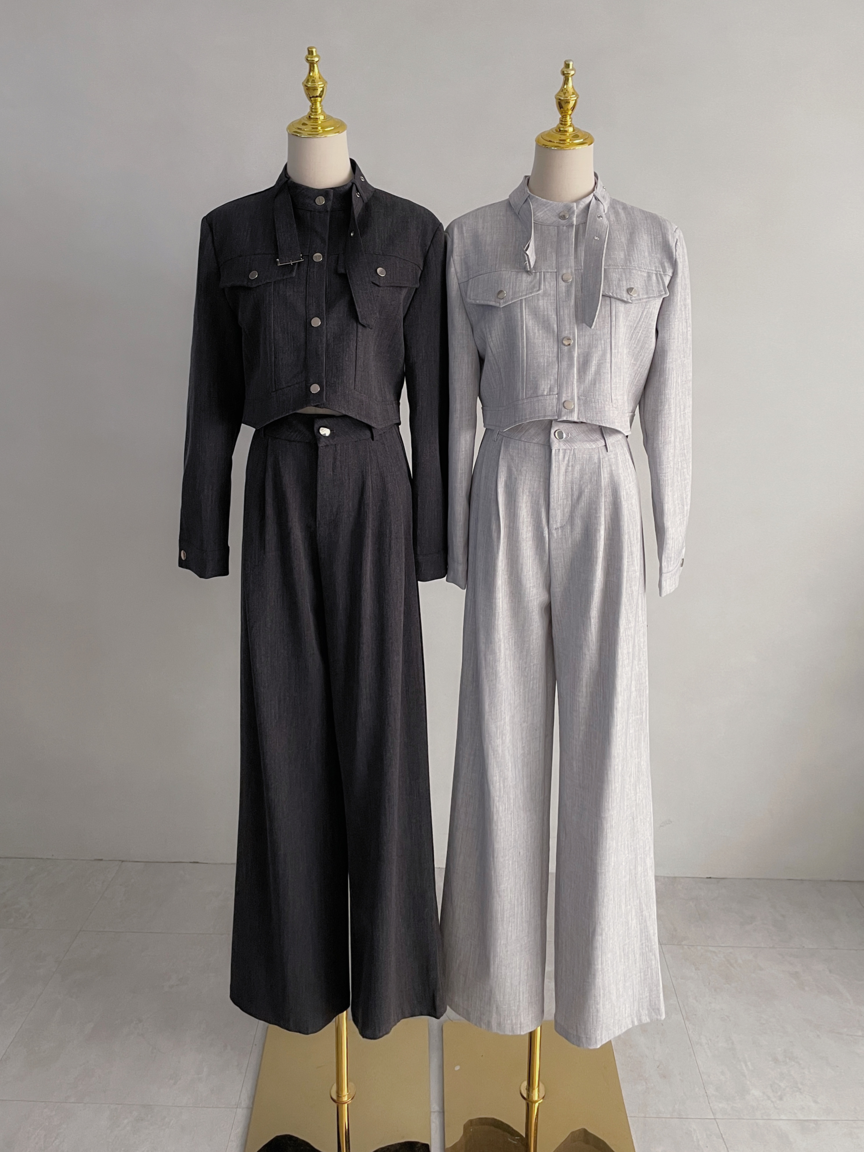 【SET】皮帶領口設計銀釦工裝套組