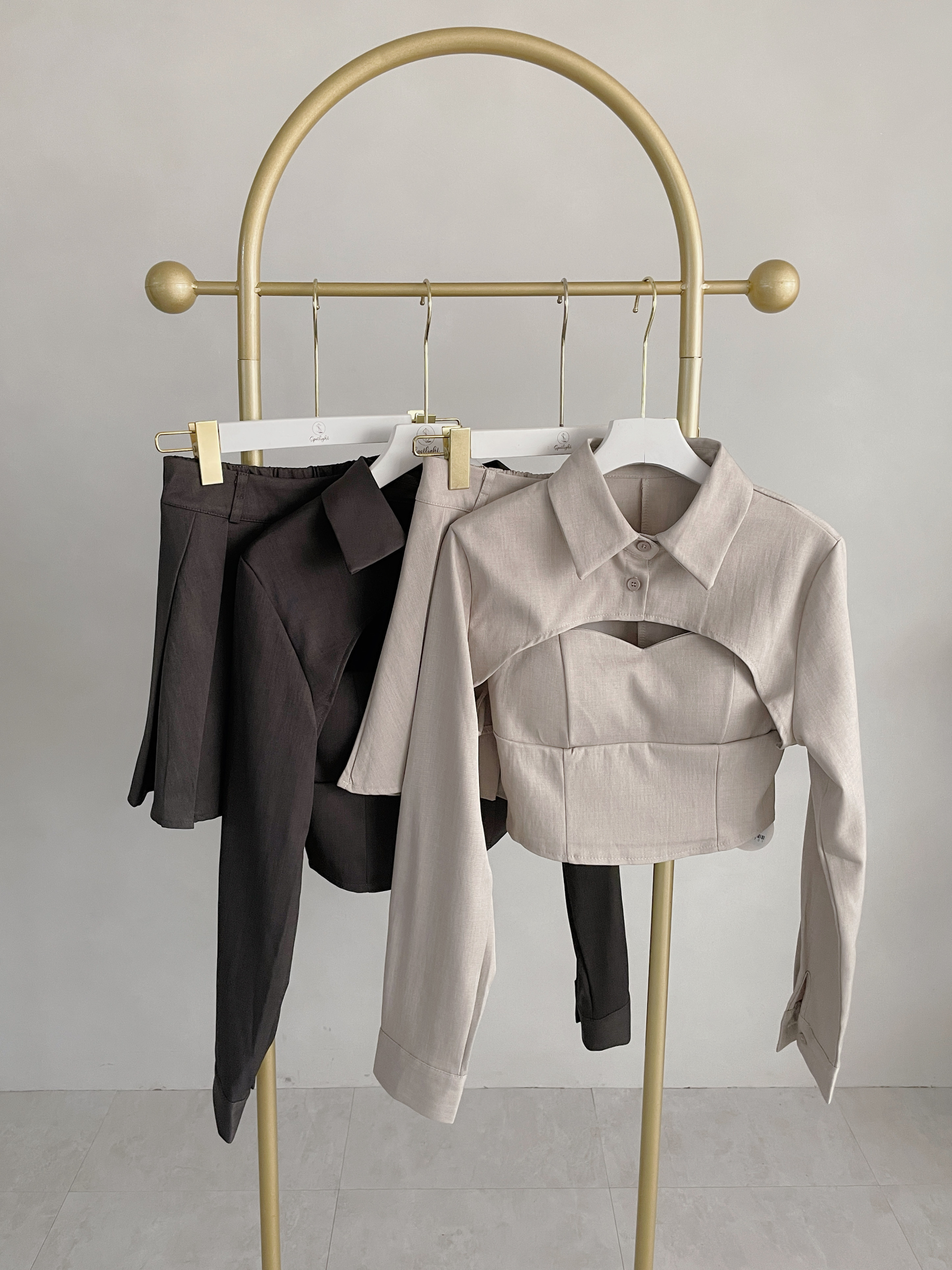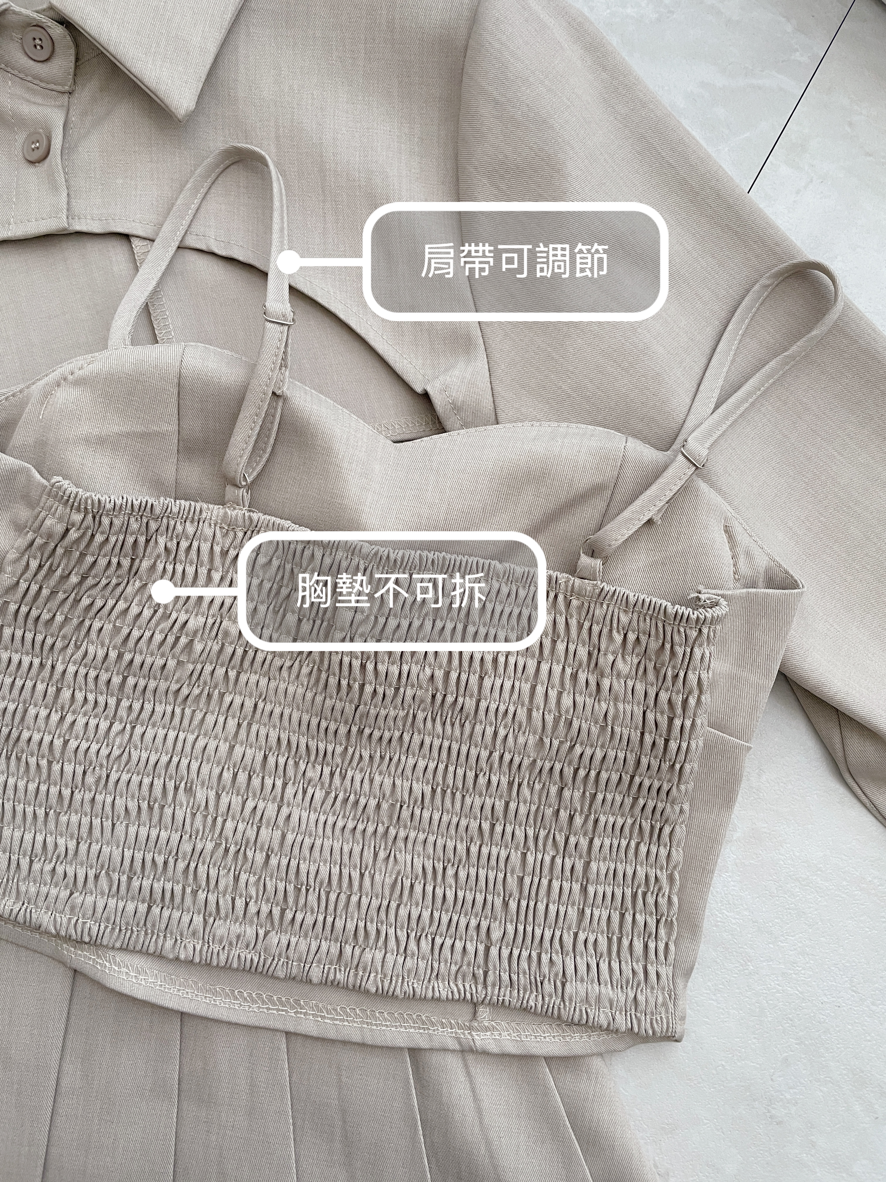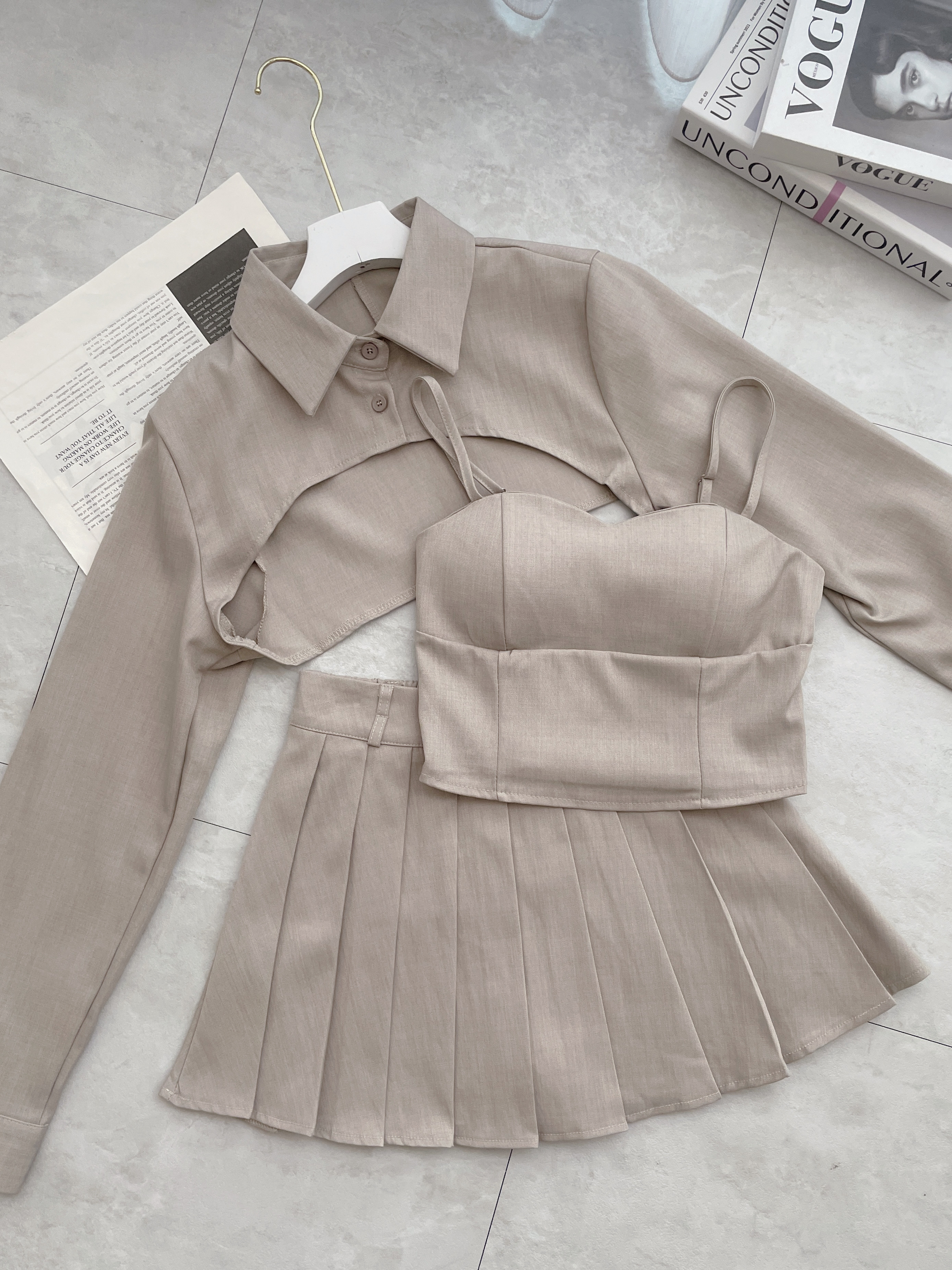 【SET】細肩背心+短版上衣+百褶裙