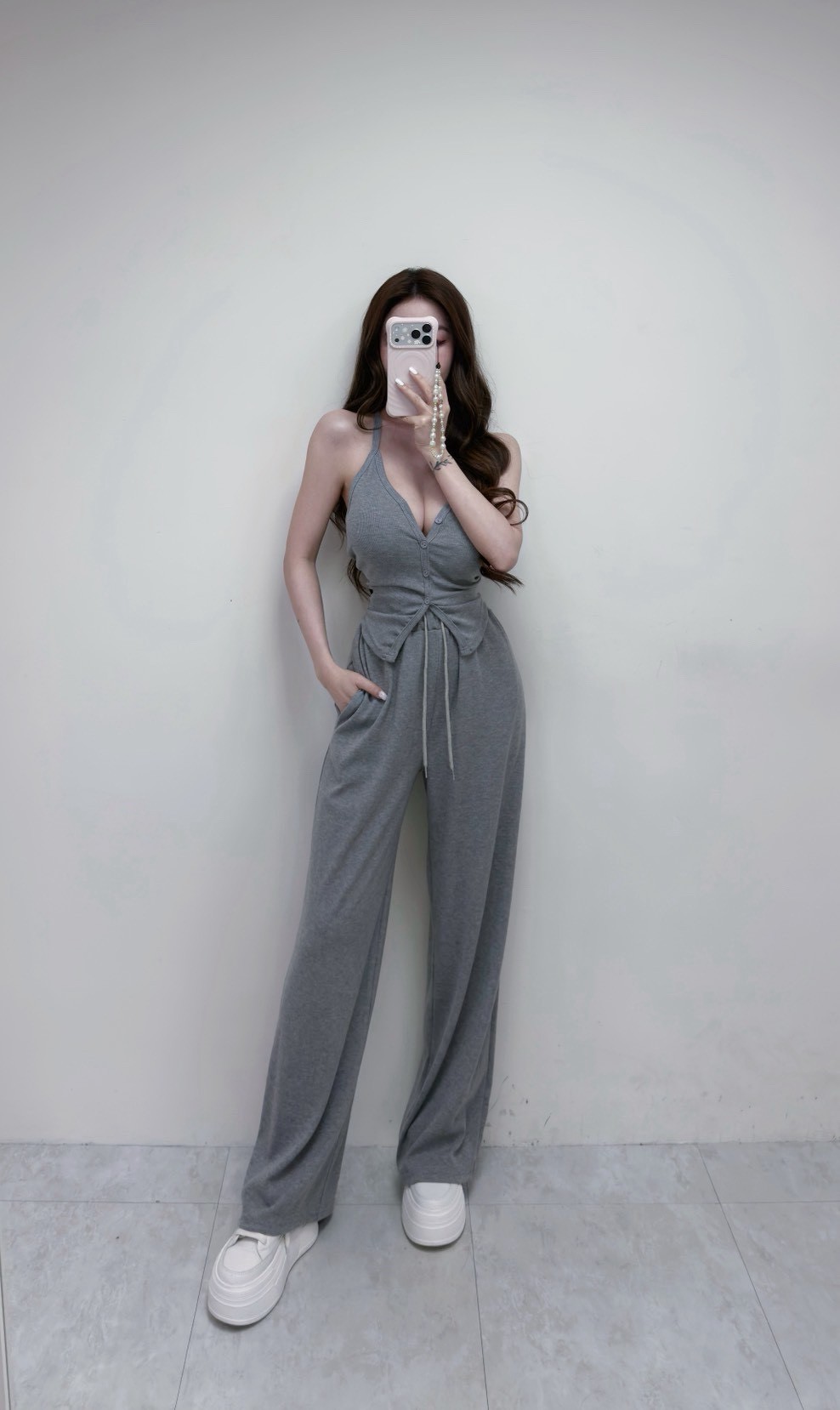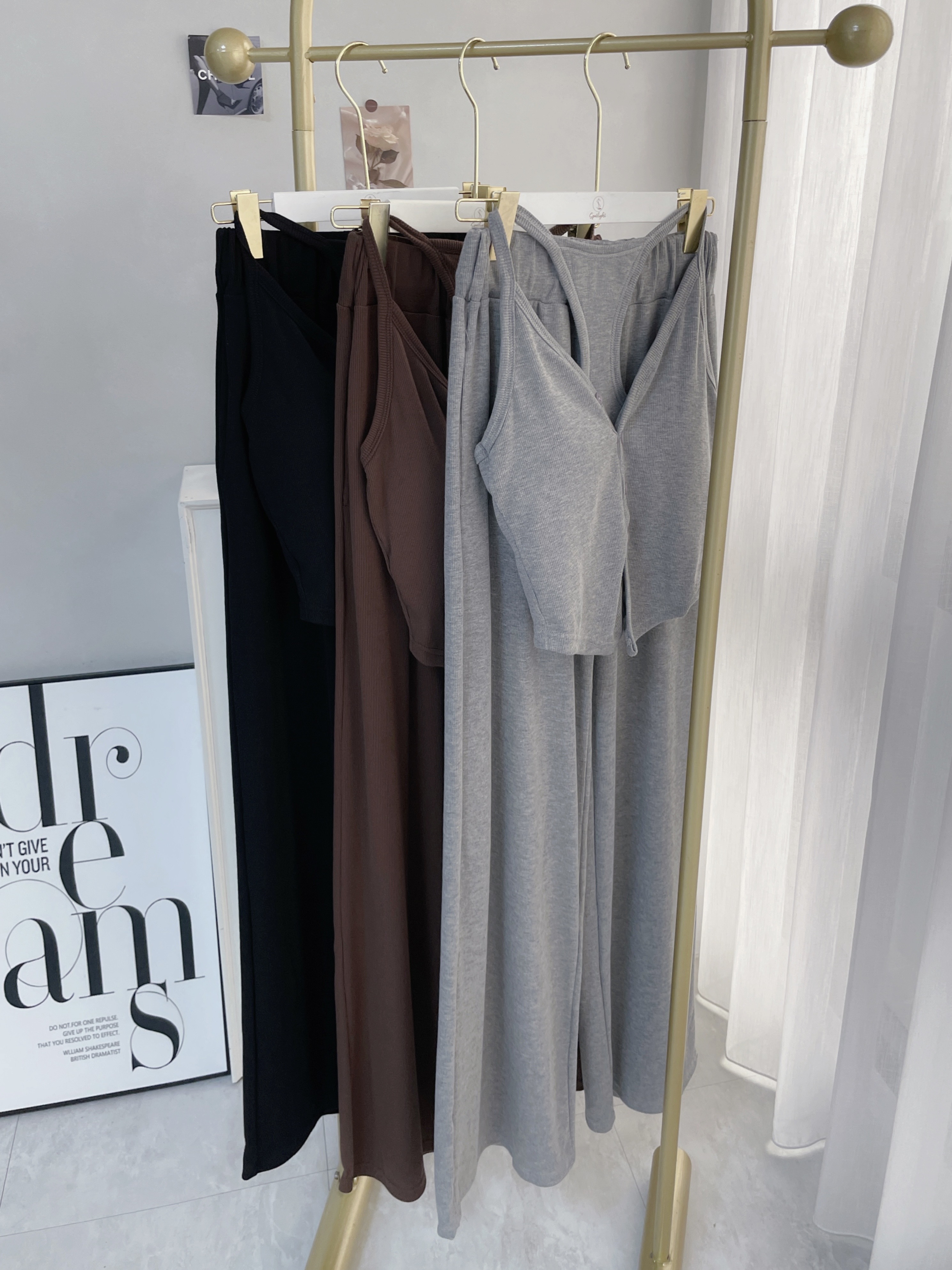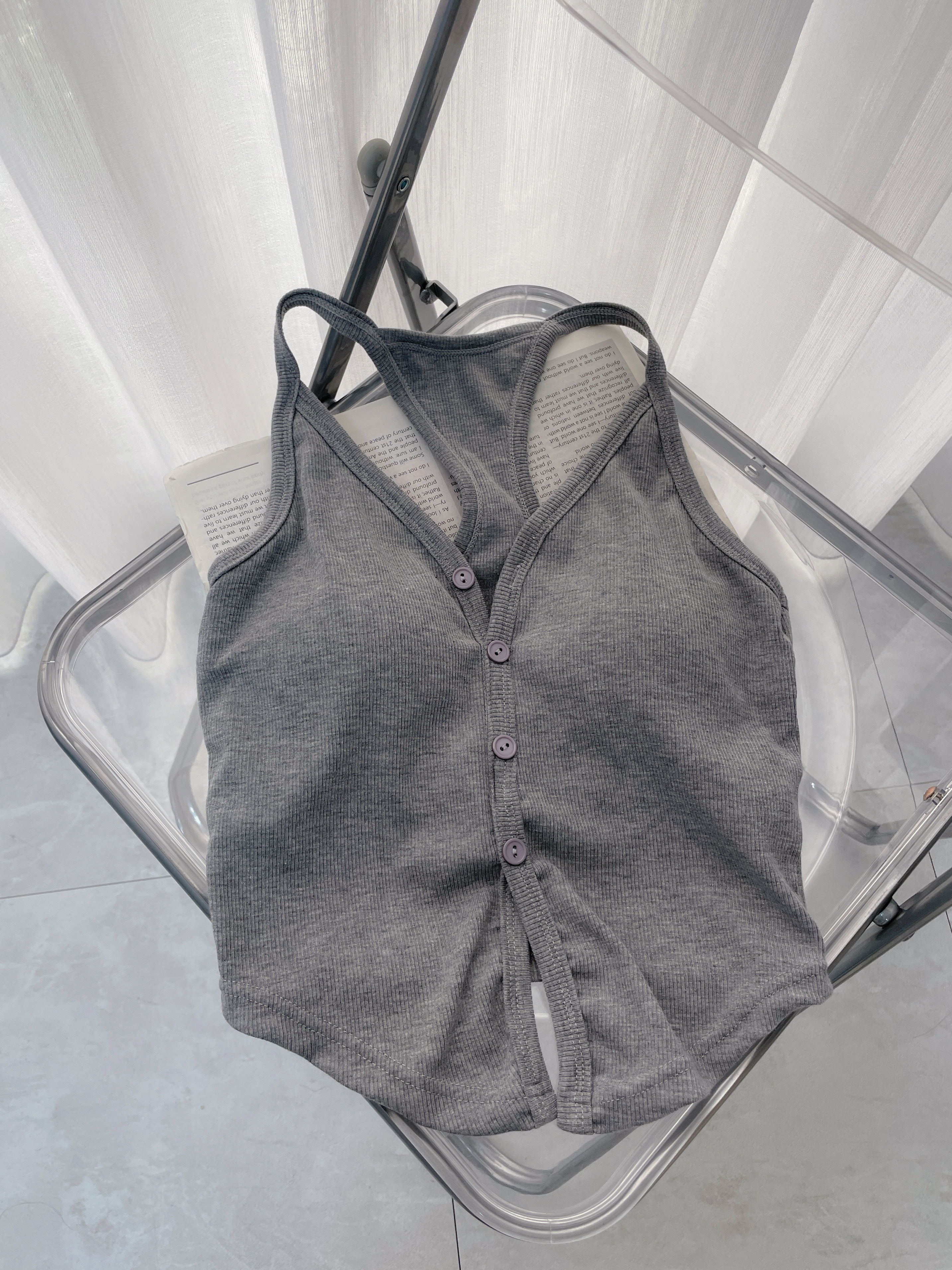 【SET】羅紋排釦挖背背心+抽繩棉褲