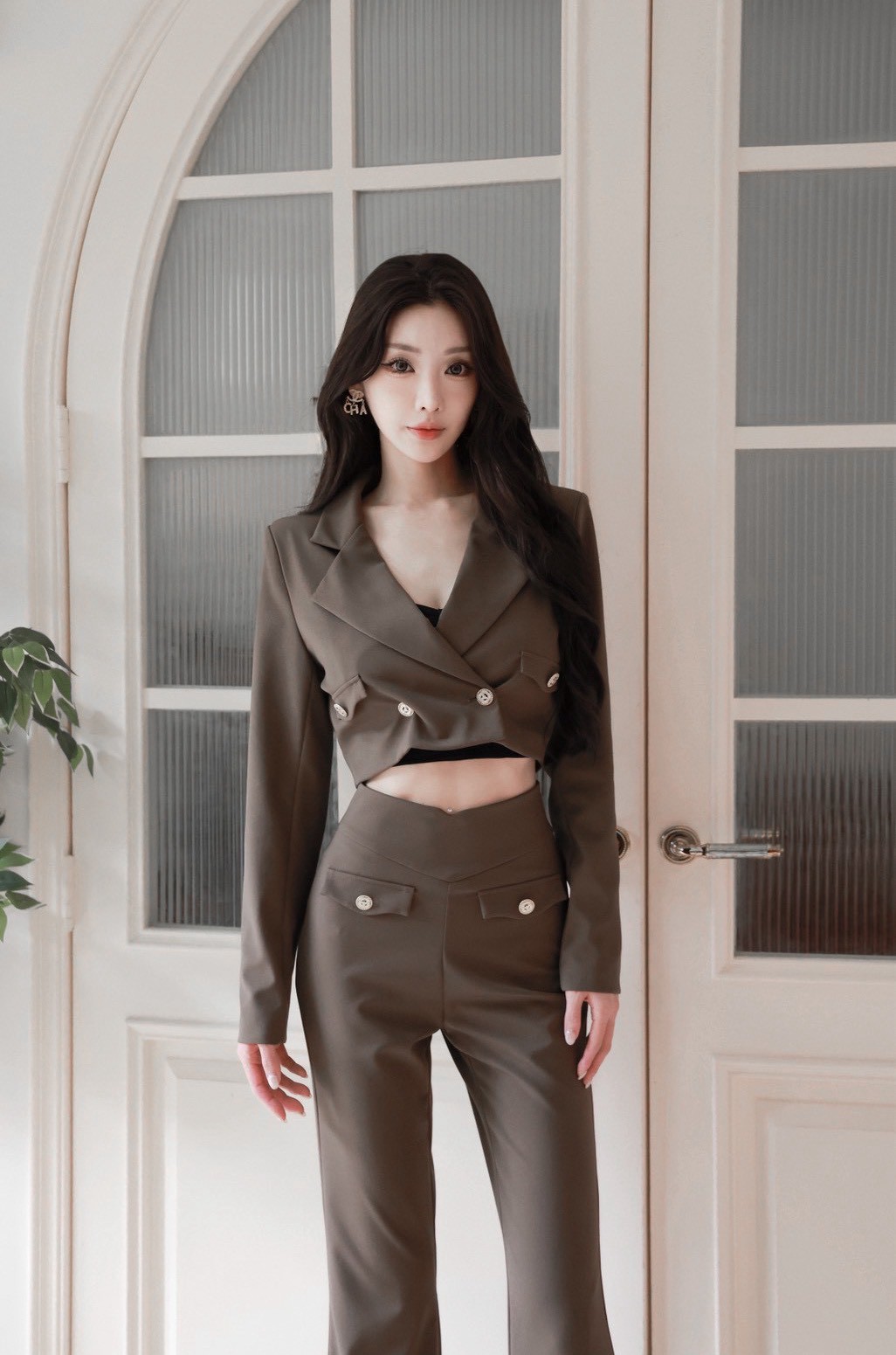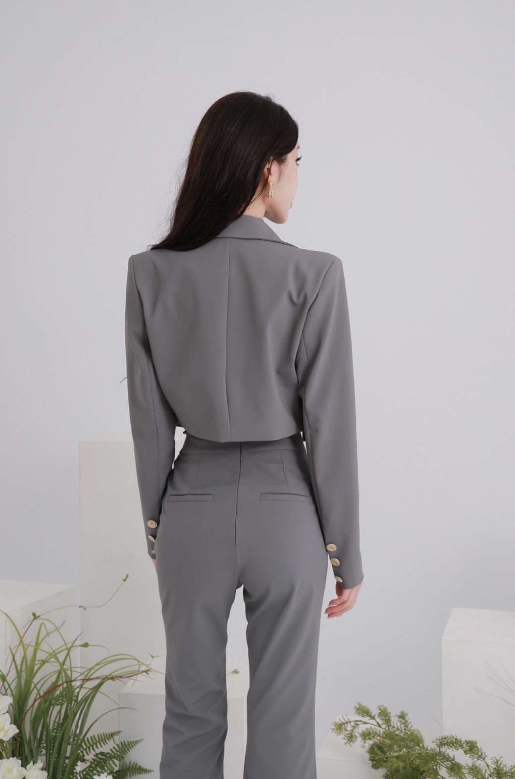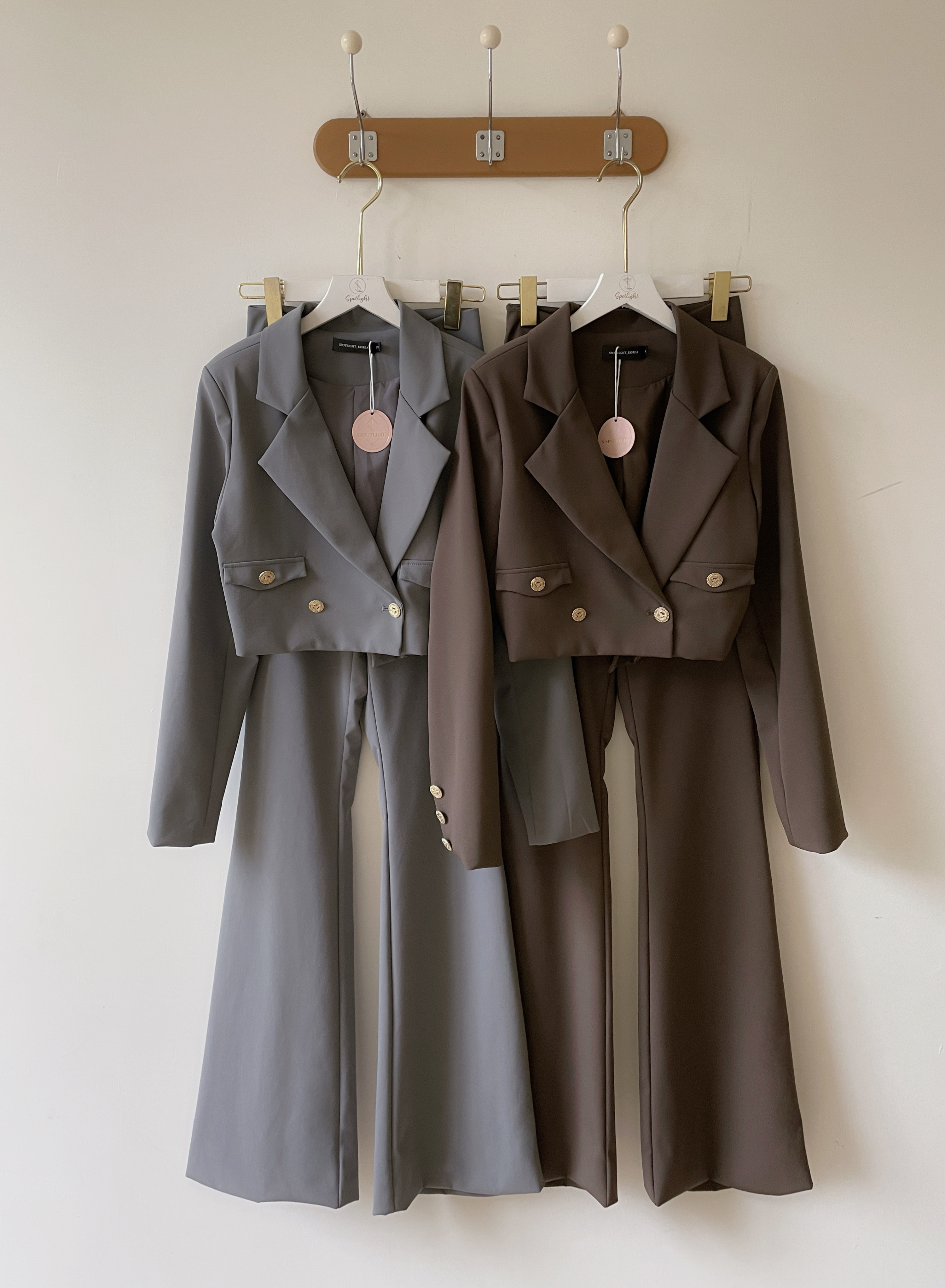 【SET】訂製款 時尚總監 金釦翻領西裝外套+高腰西裝喇叭褲