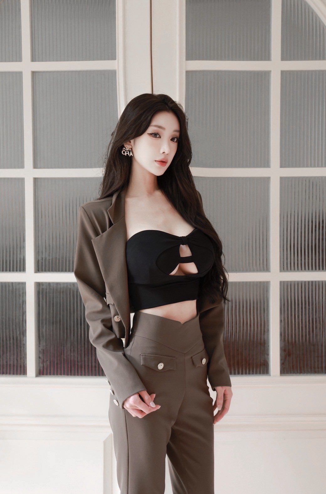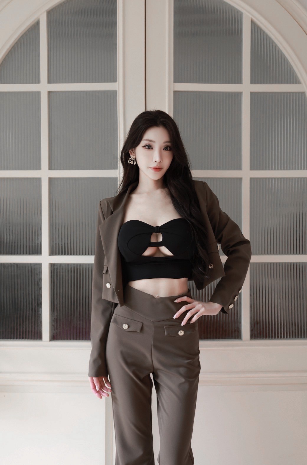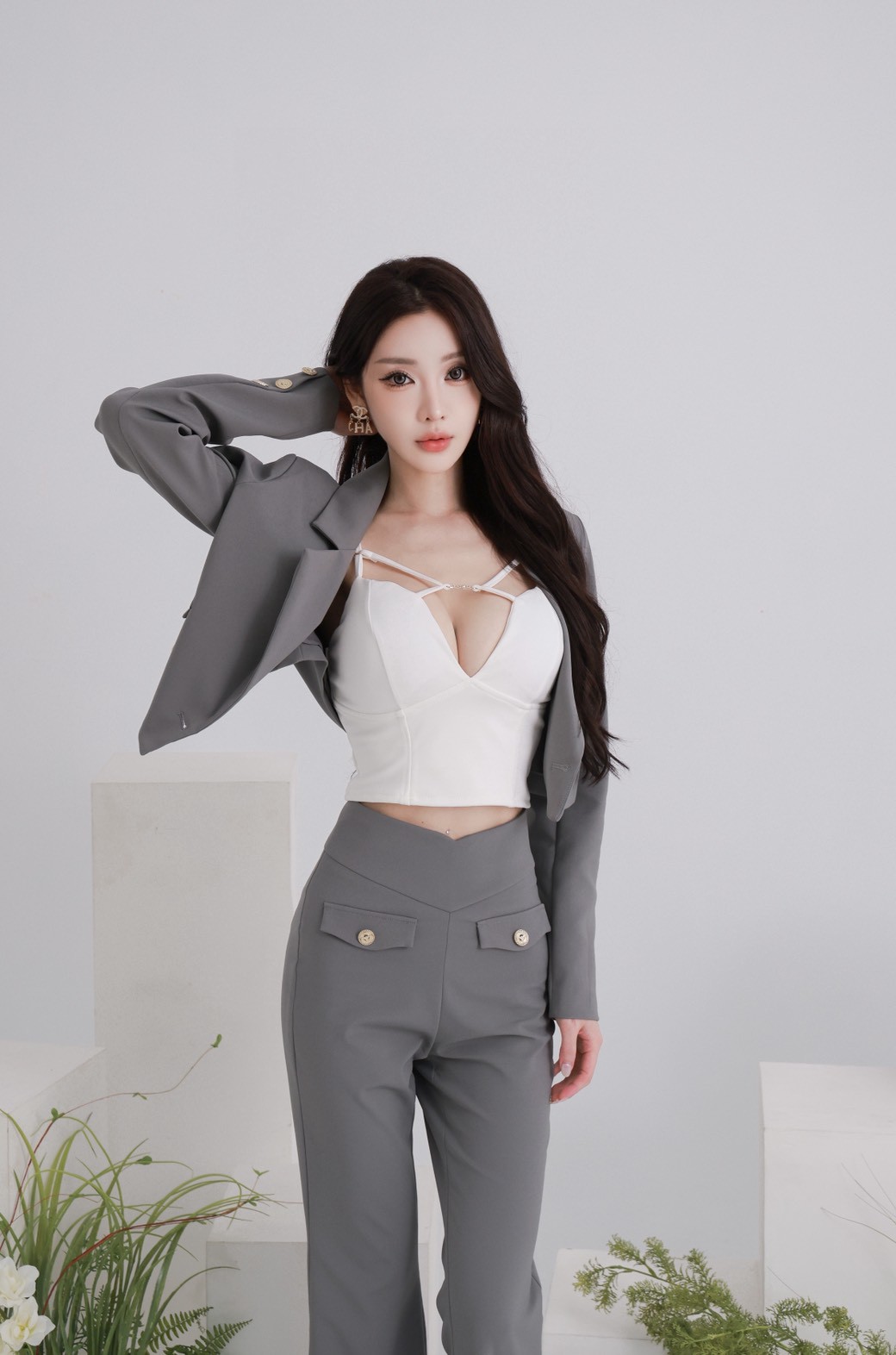 【SET】訂製款 時尚總監 金釦翻領西裝外套+高腰西裝喇叭褲