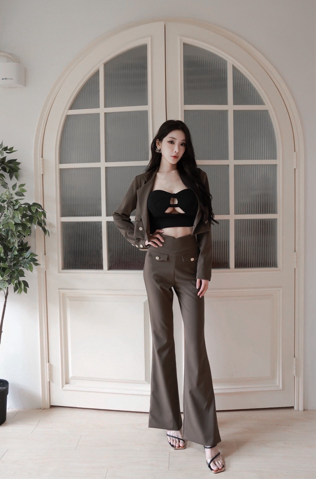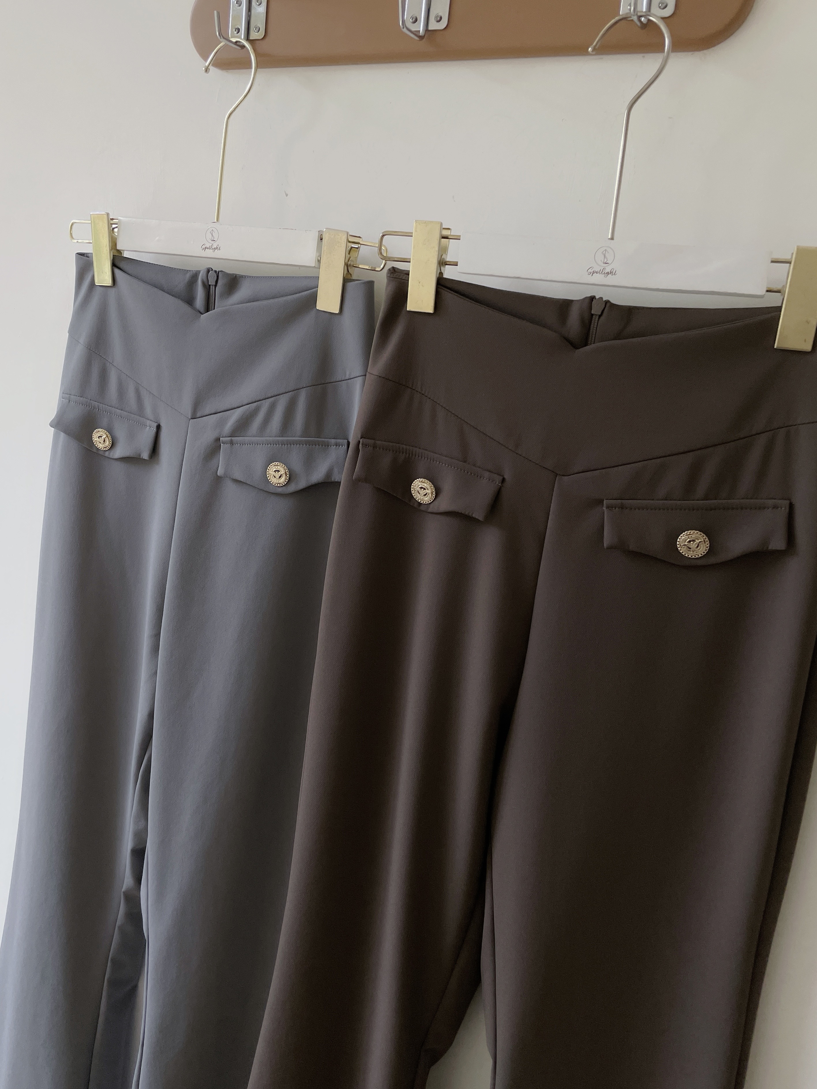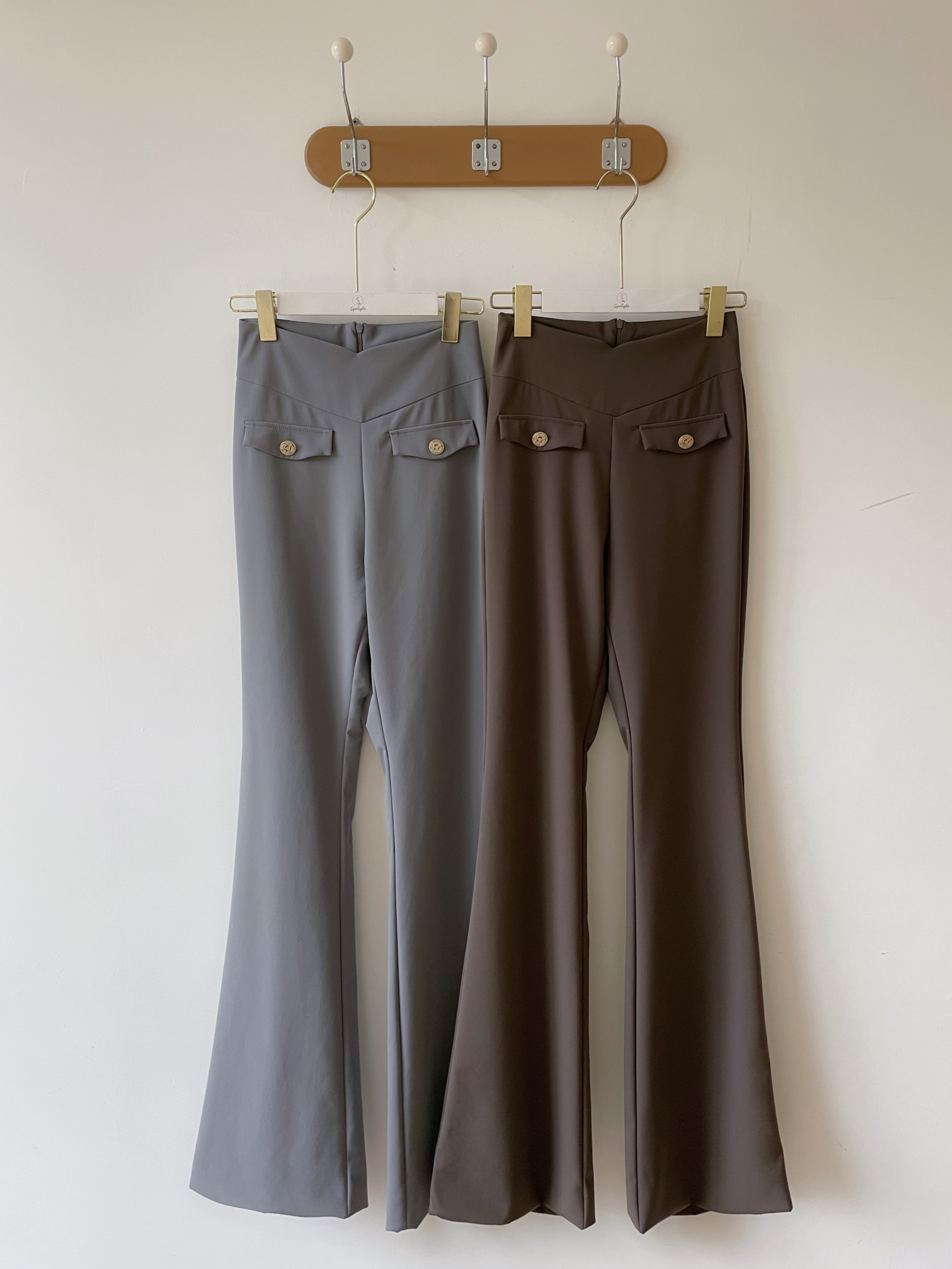高腰喇叭褲版型 拉長腿部線條,顯瘦又顯腿長。
