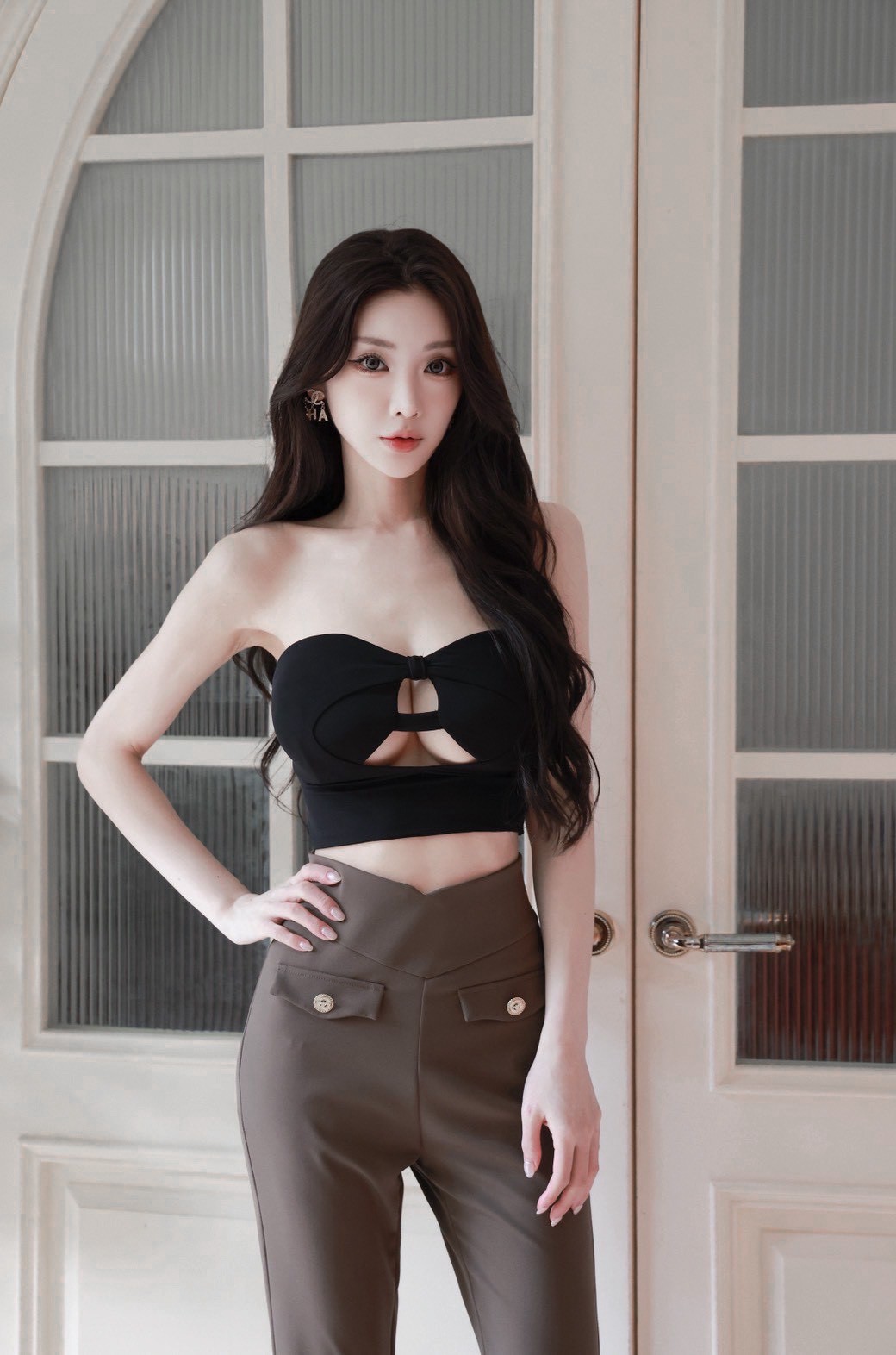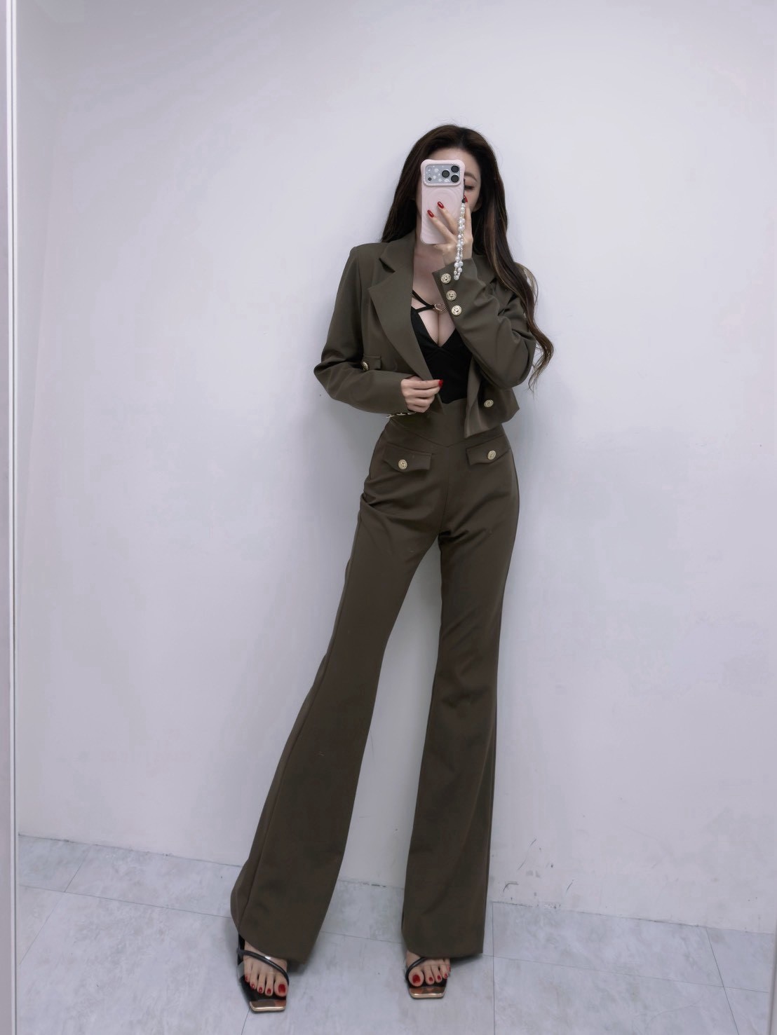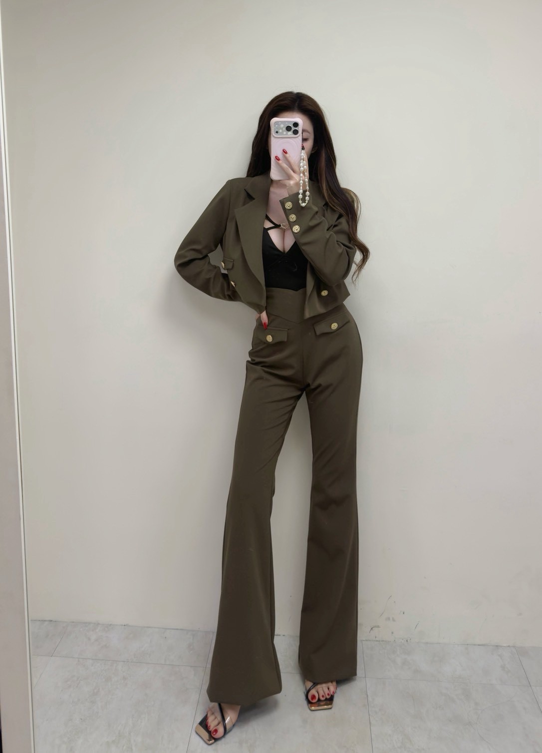 高腰喇叭褲版型 拉長腿部線條,顯瘦又顯腿長。