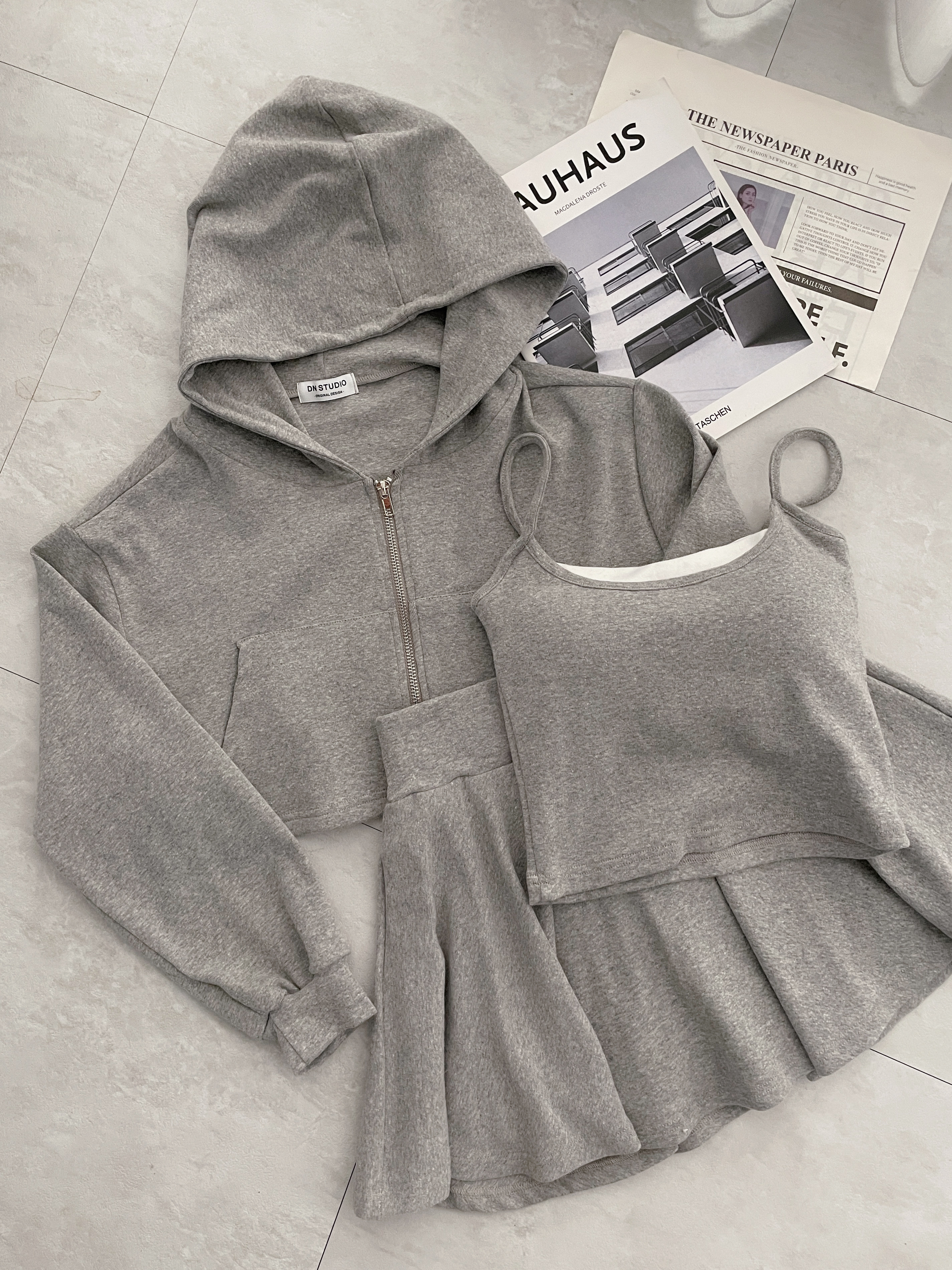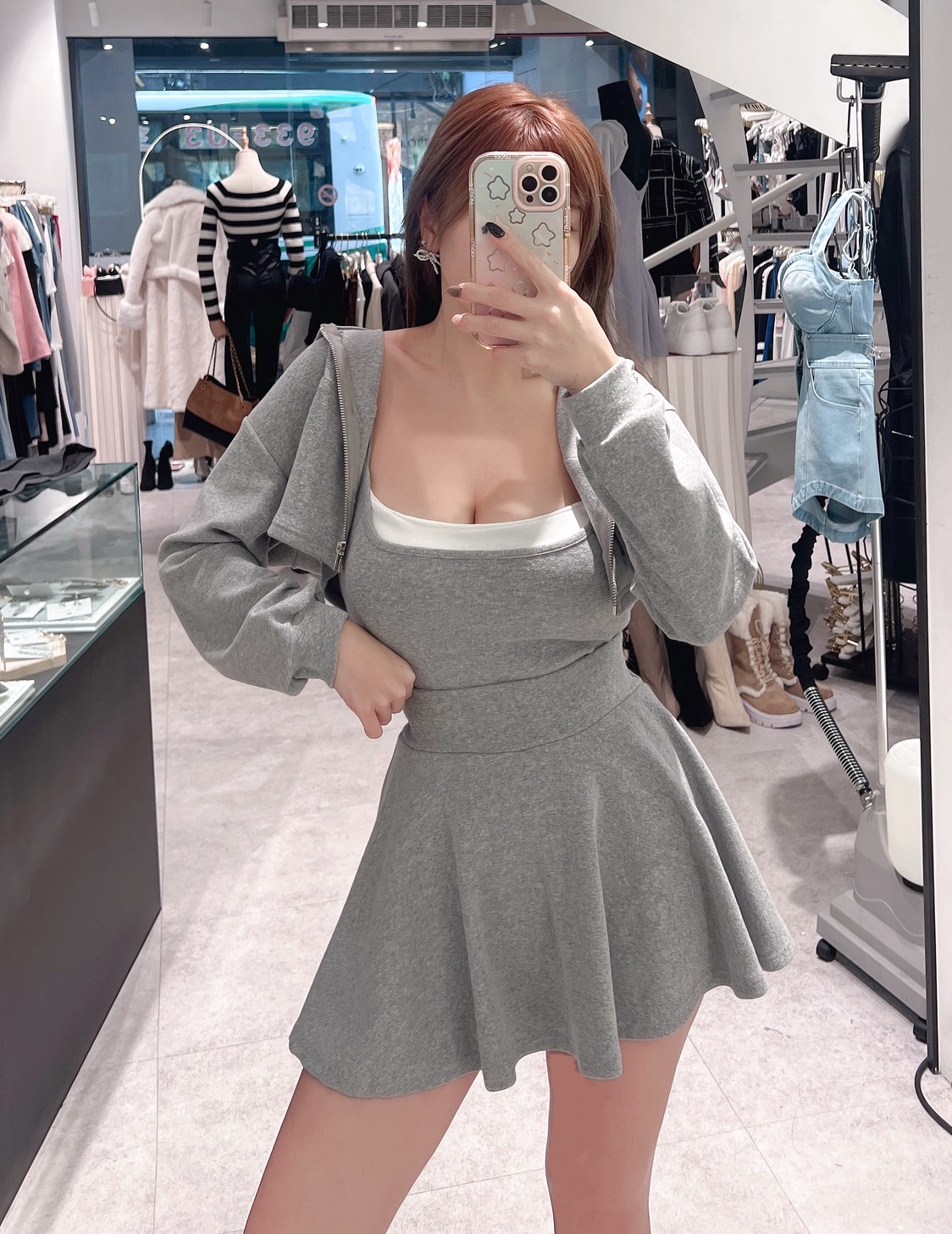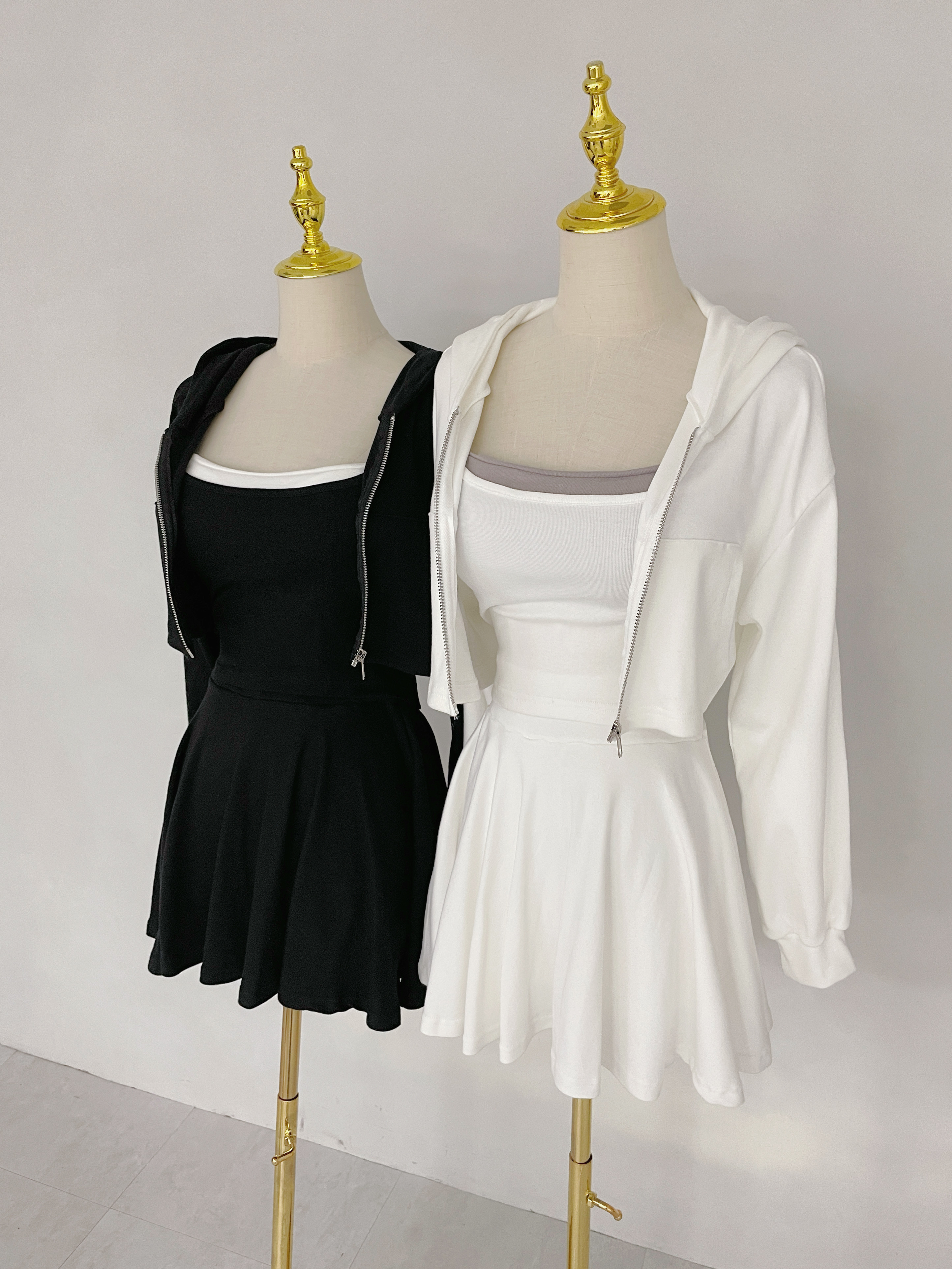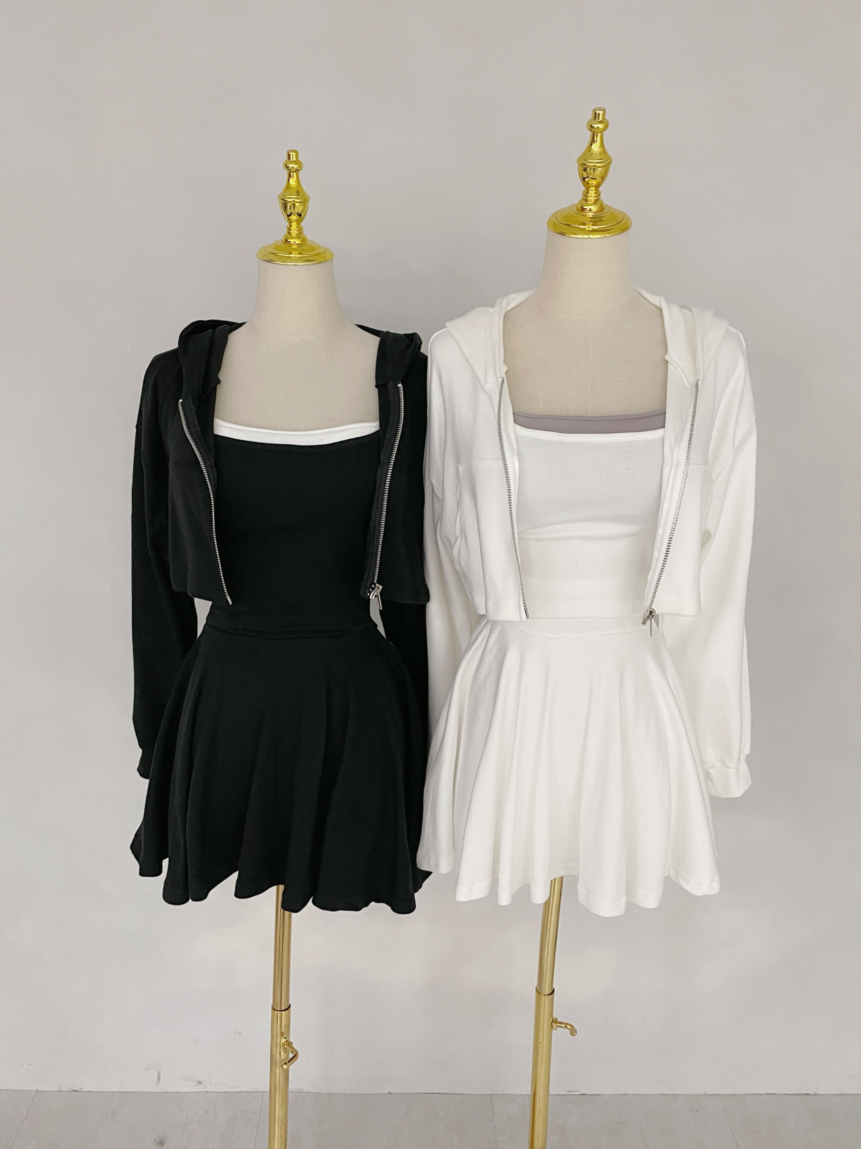 【SET】韓國棉質撞色背心+短版外套+傘裙