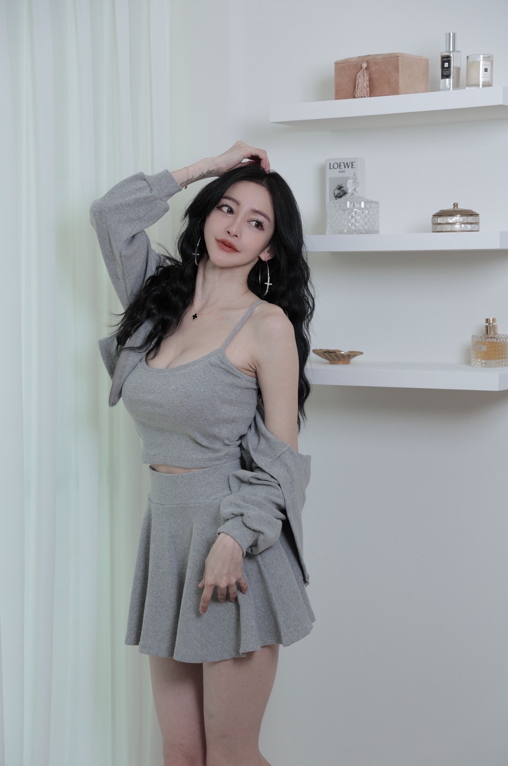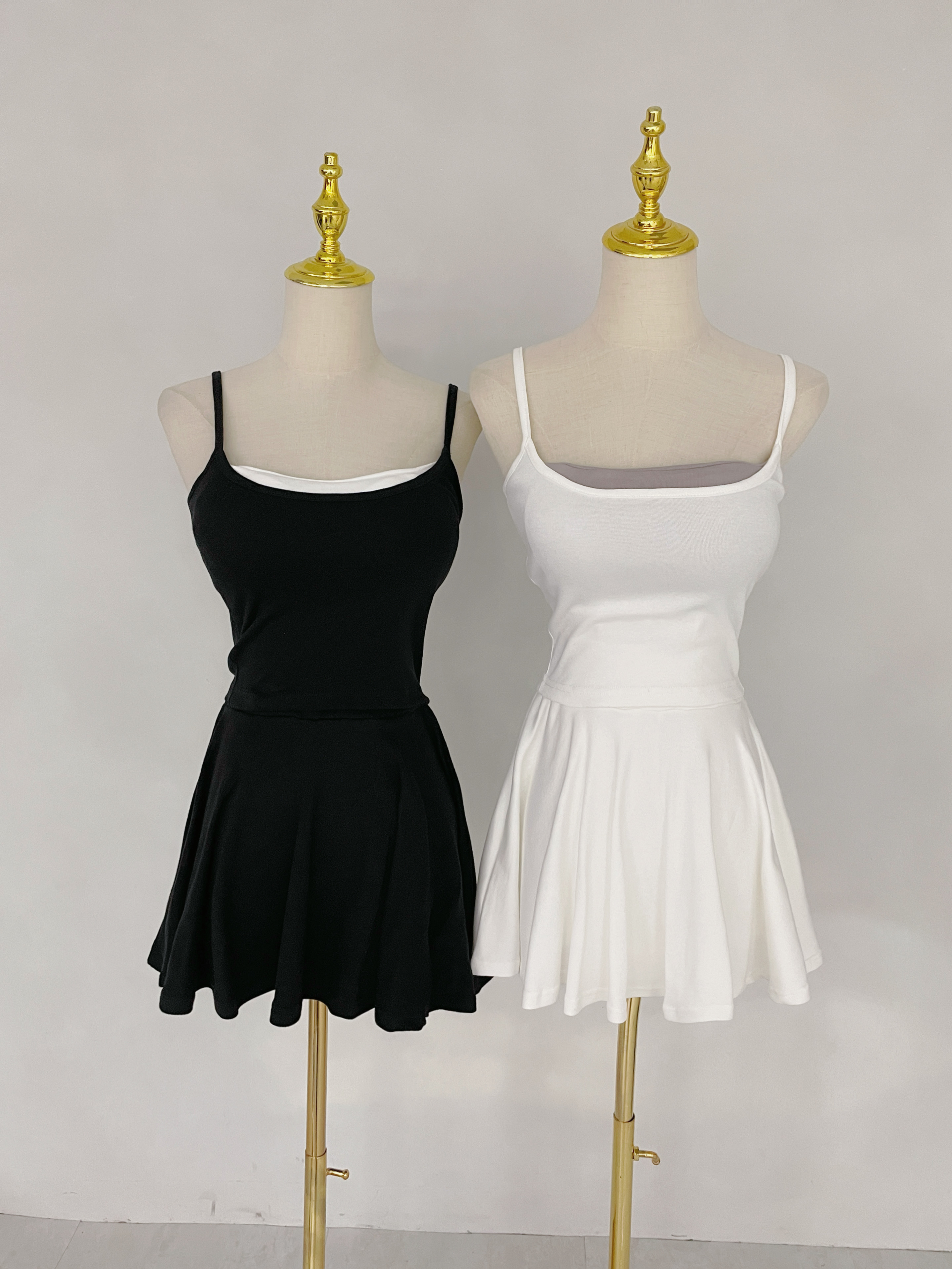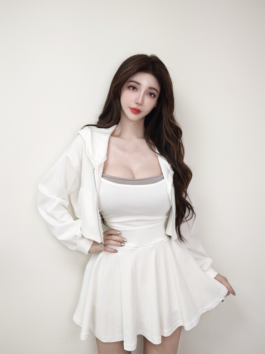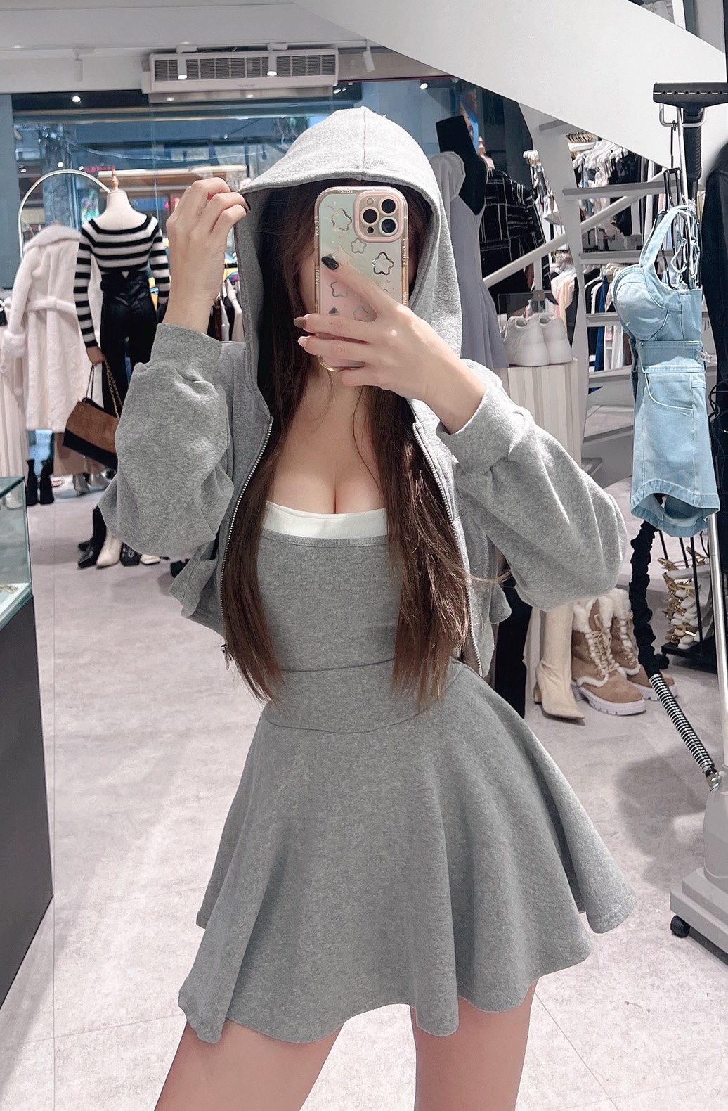 【SET】韓國棉質撞色背心+短版外套+傘裙