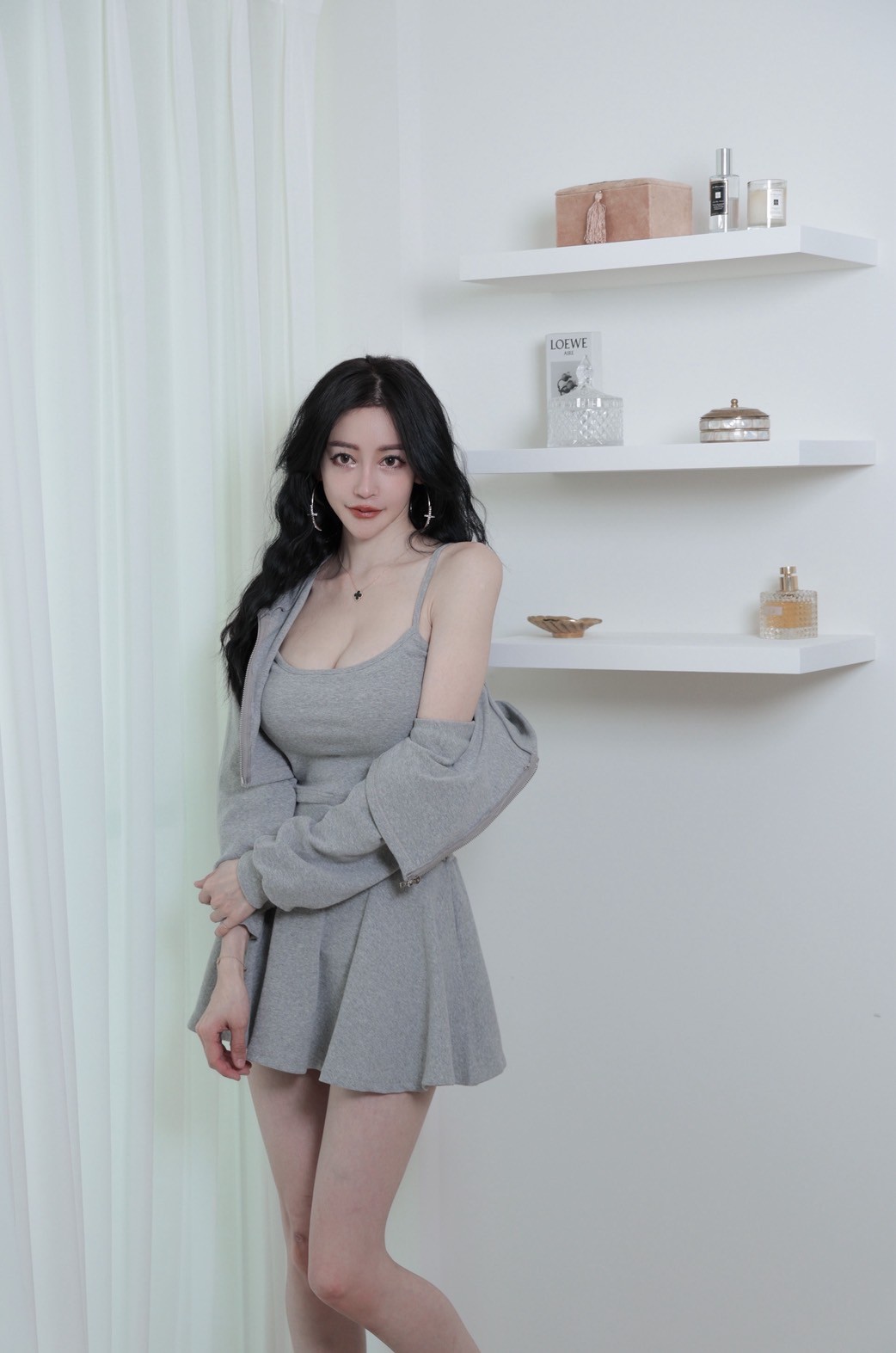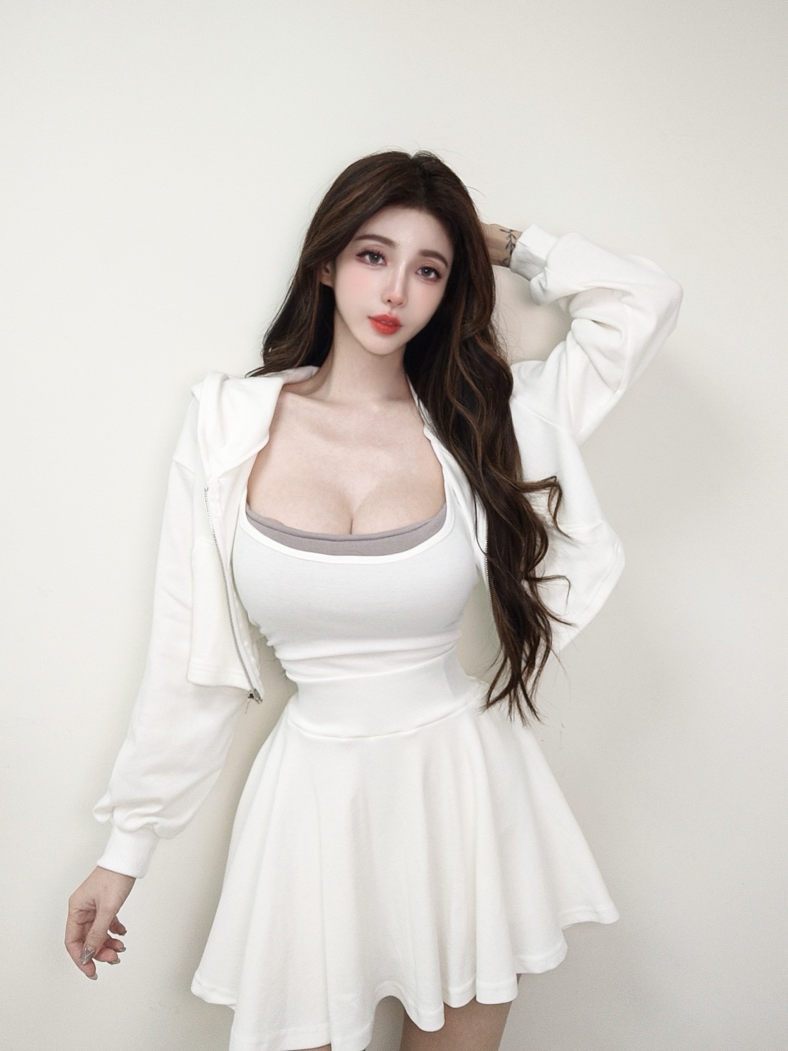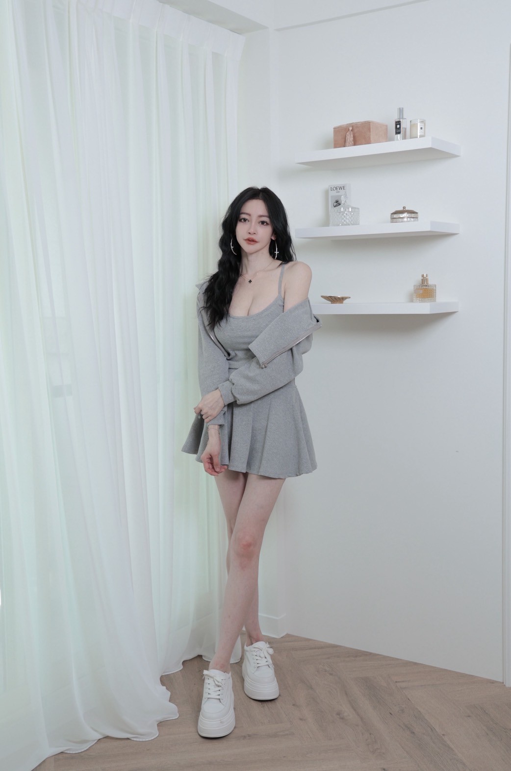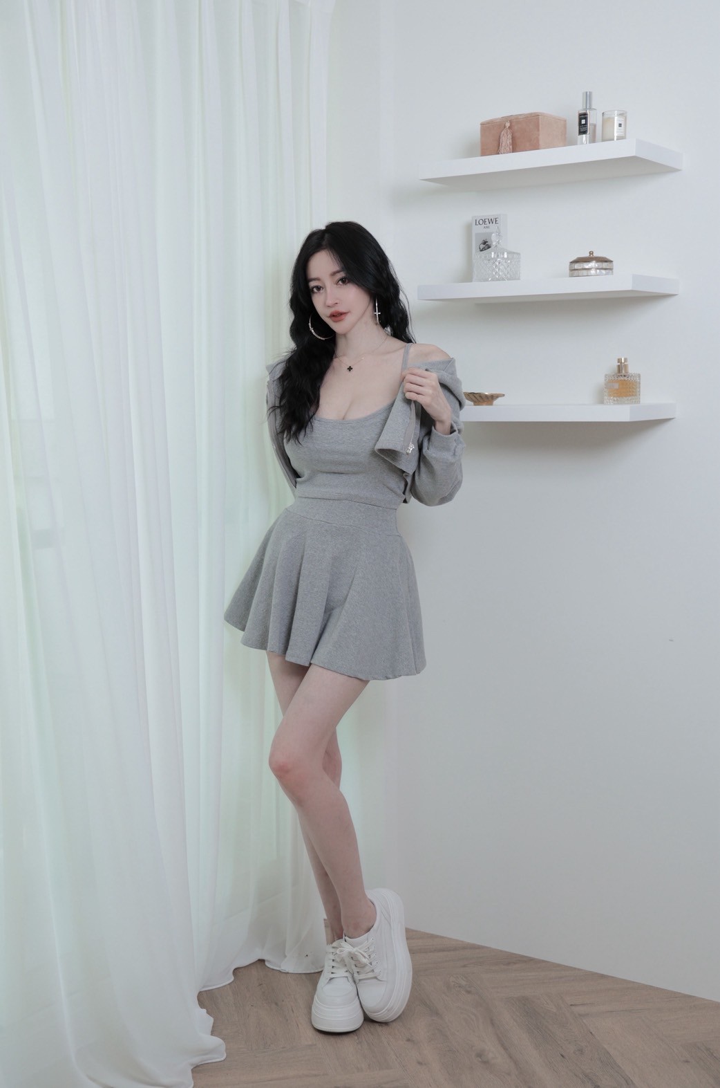 【SET】韓國棉質撞色背心+短版外套+傘裙