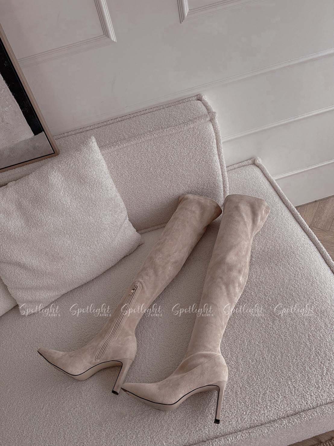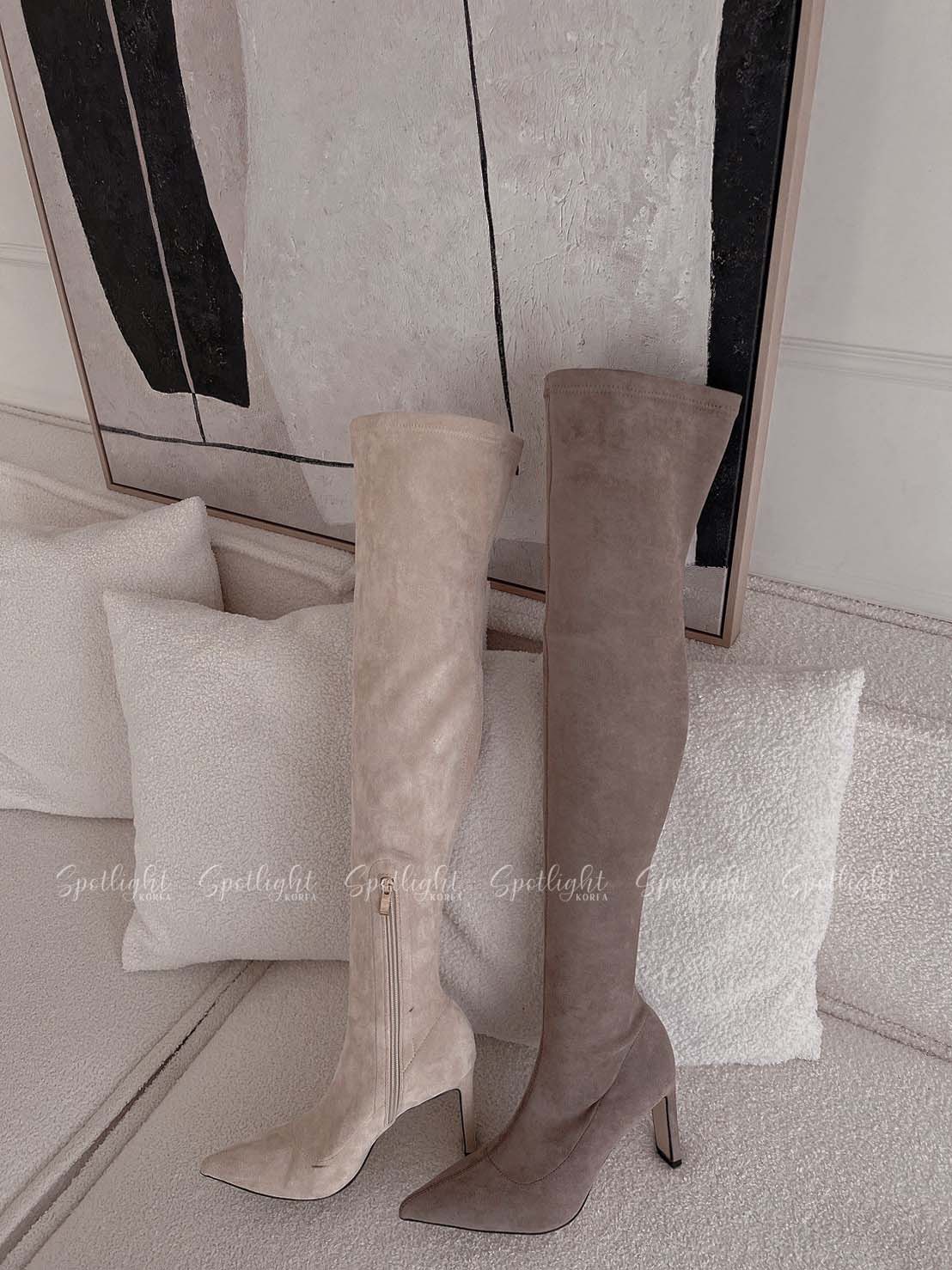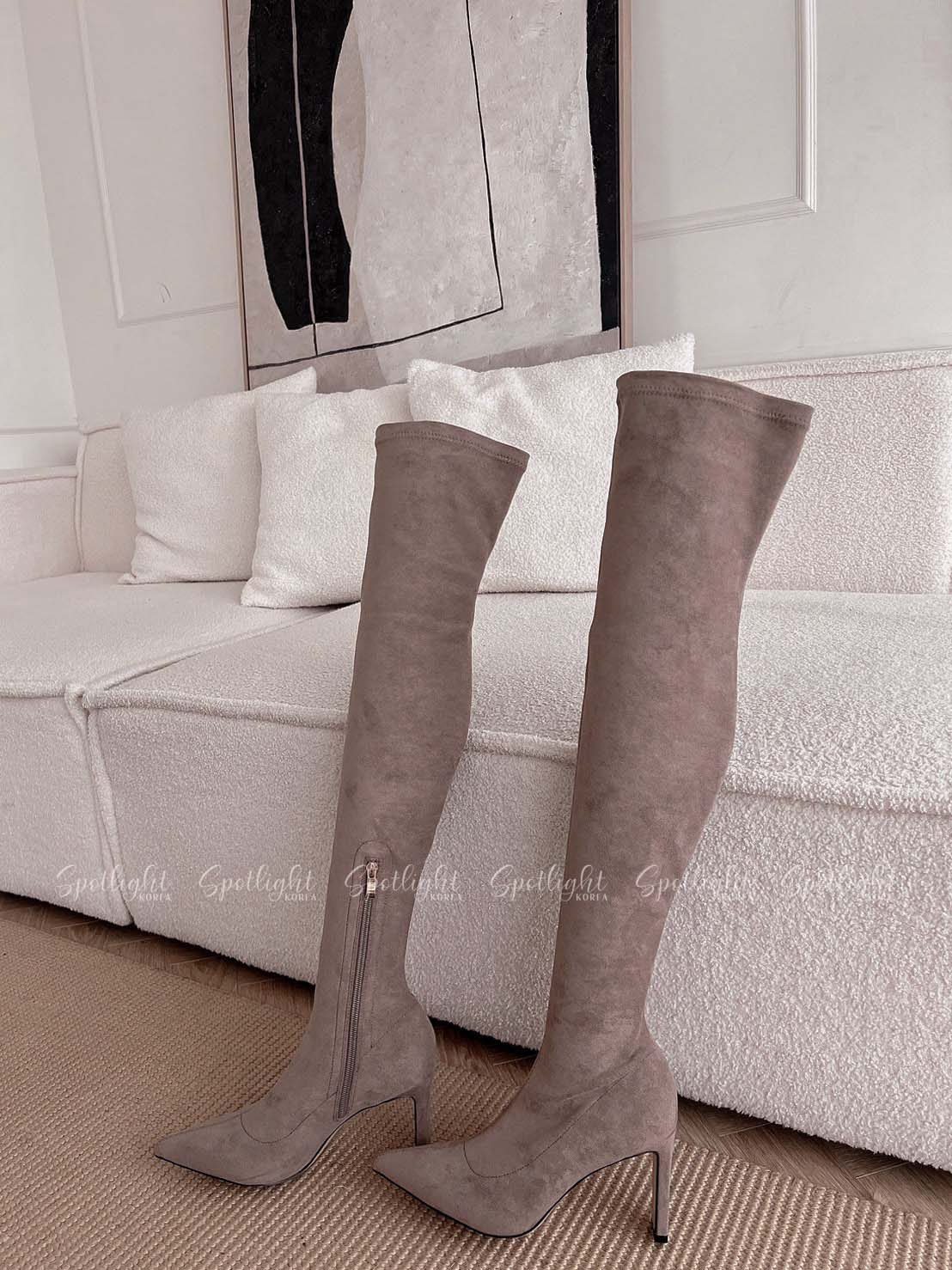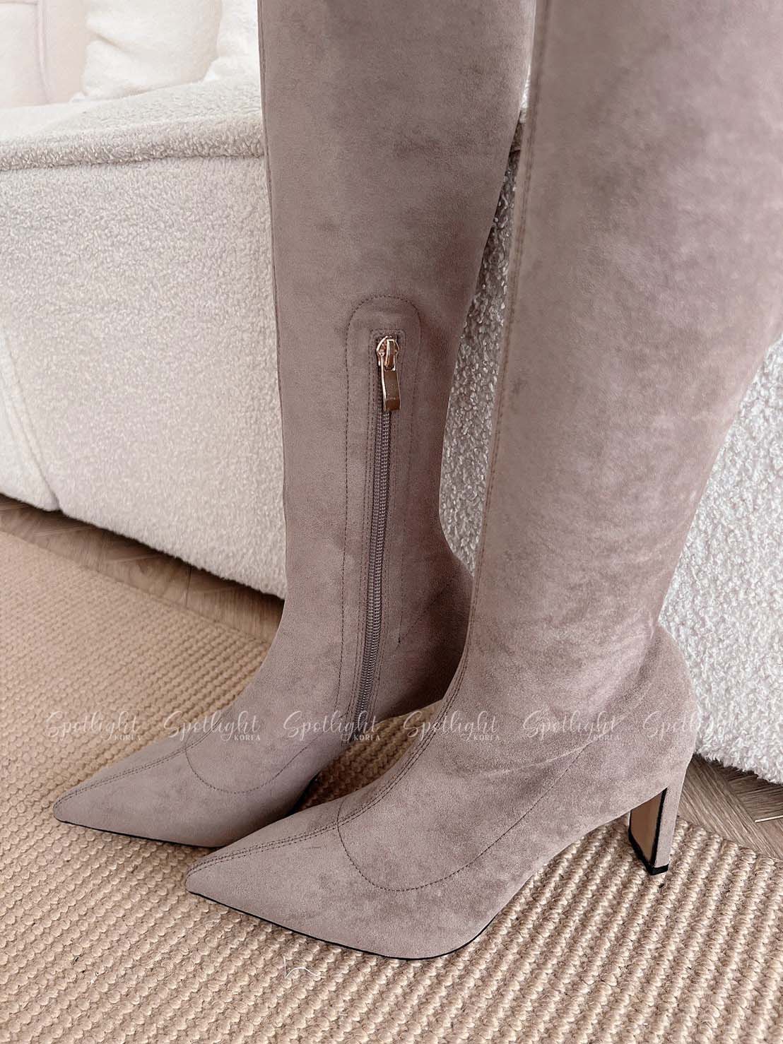 極致貼腿扁跟麂皮過膝長靴