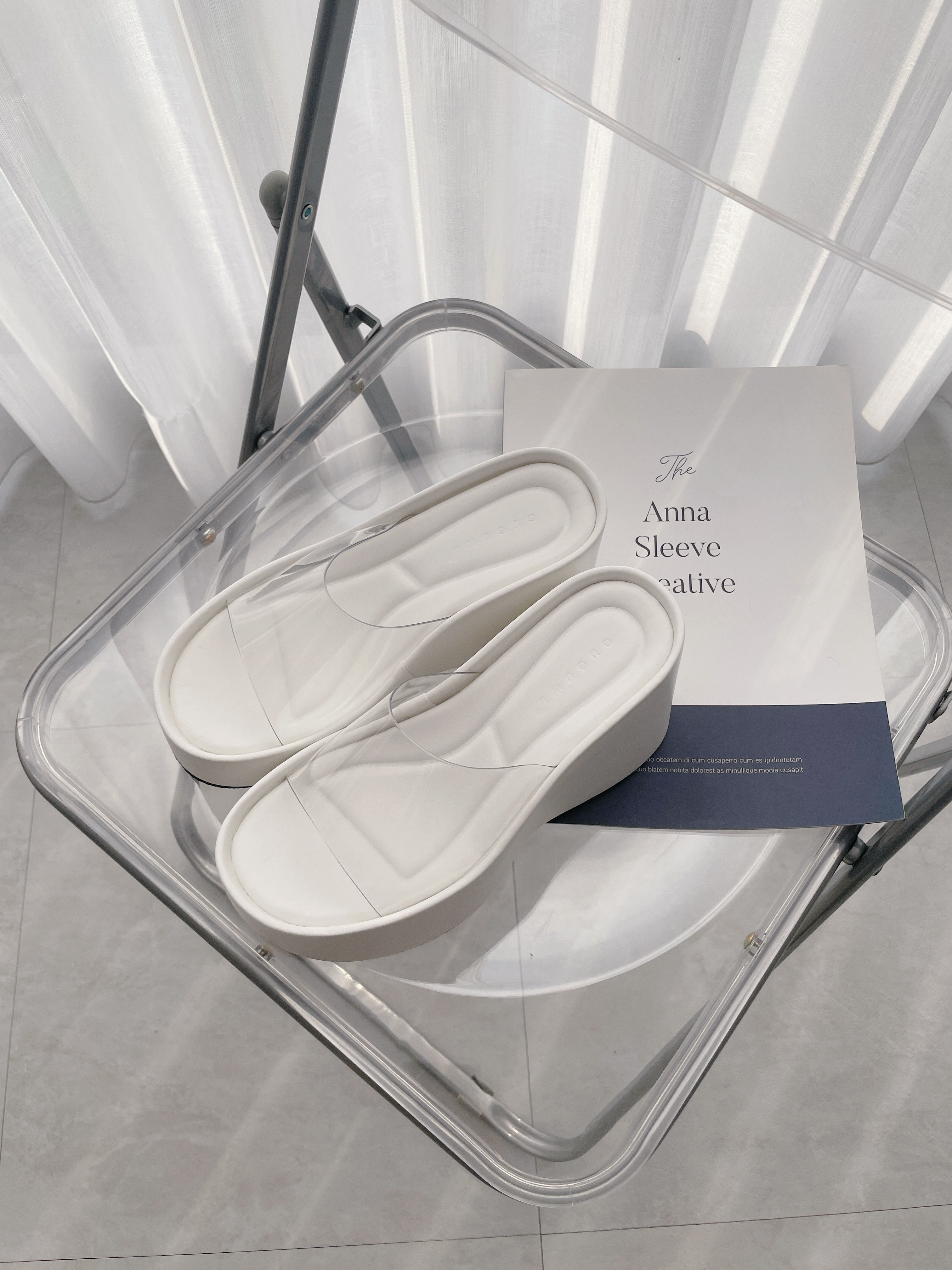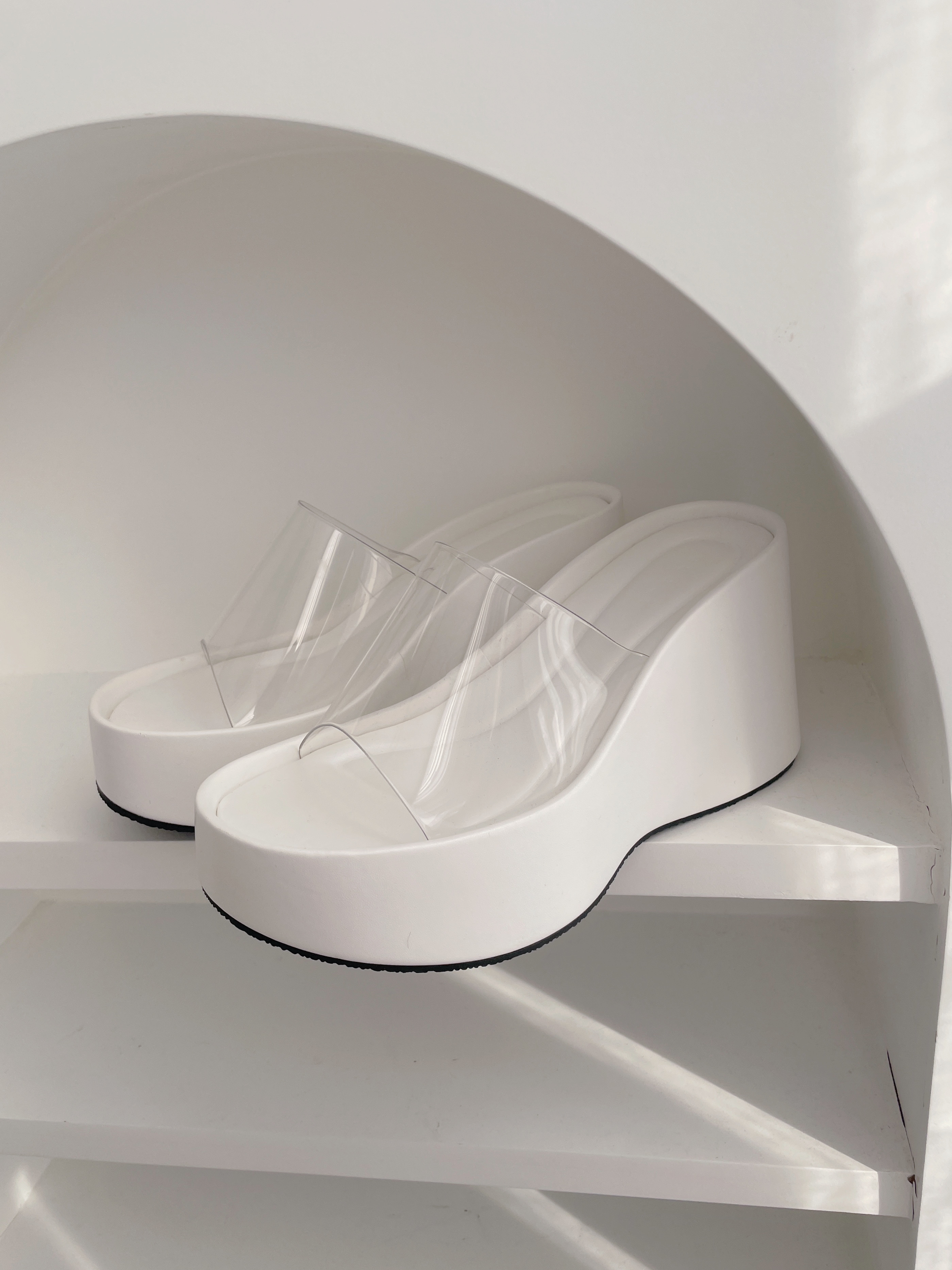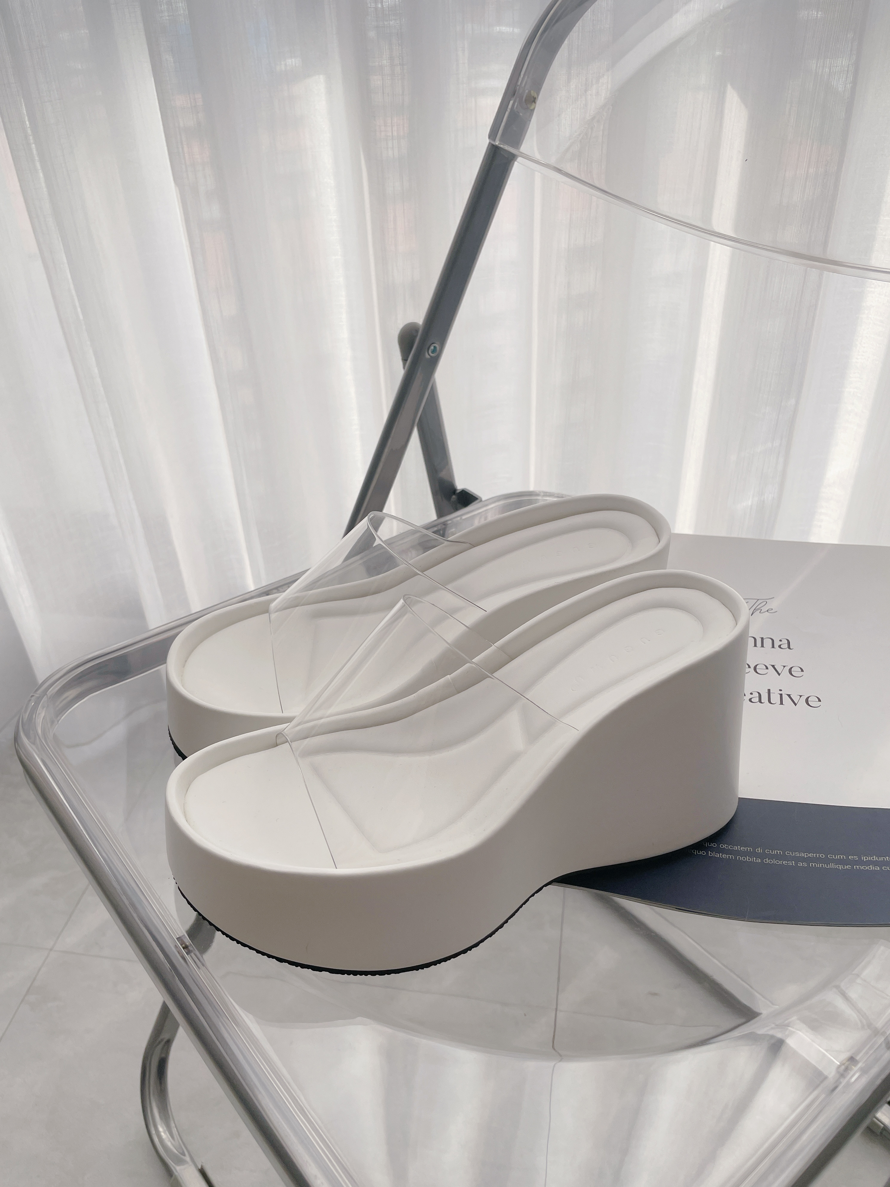 透明帶厚底高跟拖