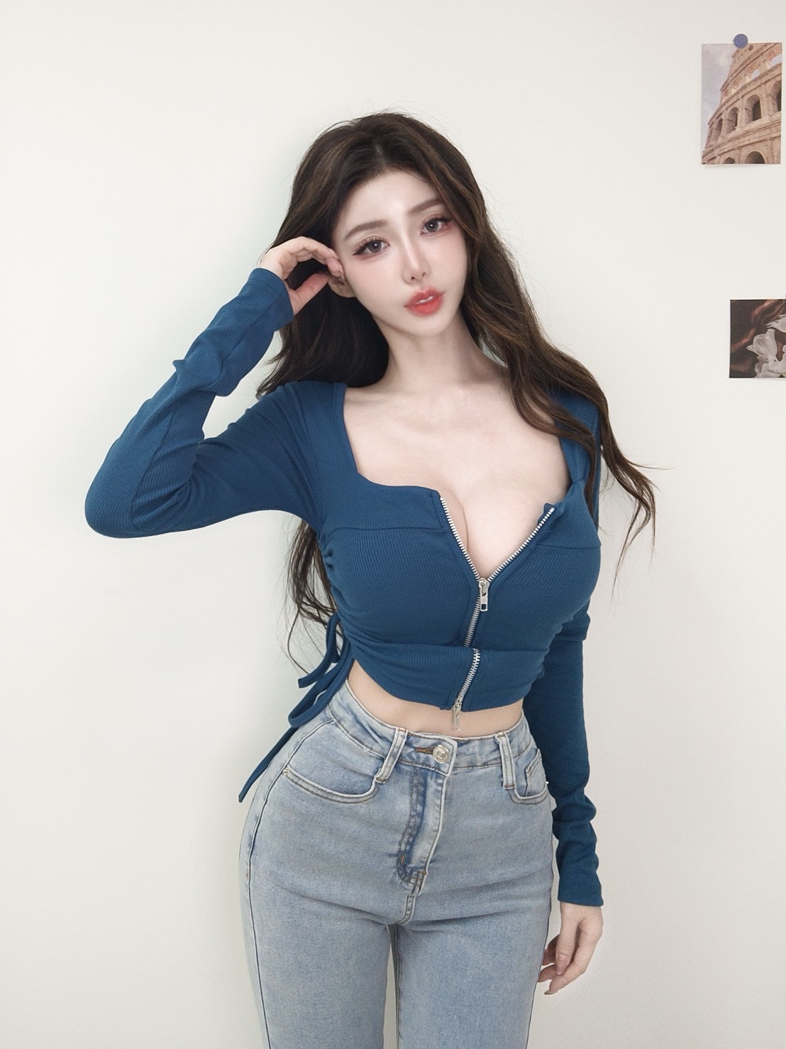 心動禁區 韓國雙拉鏈側抽繩上衣