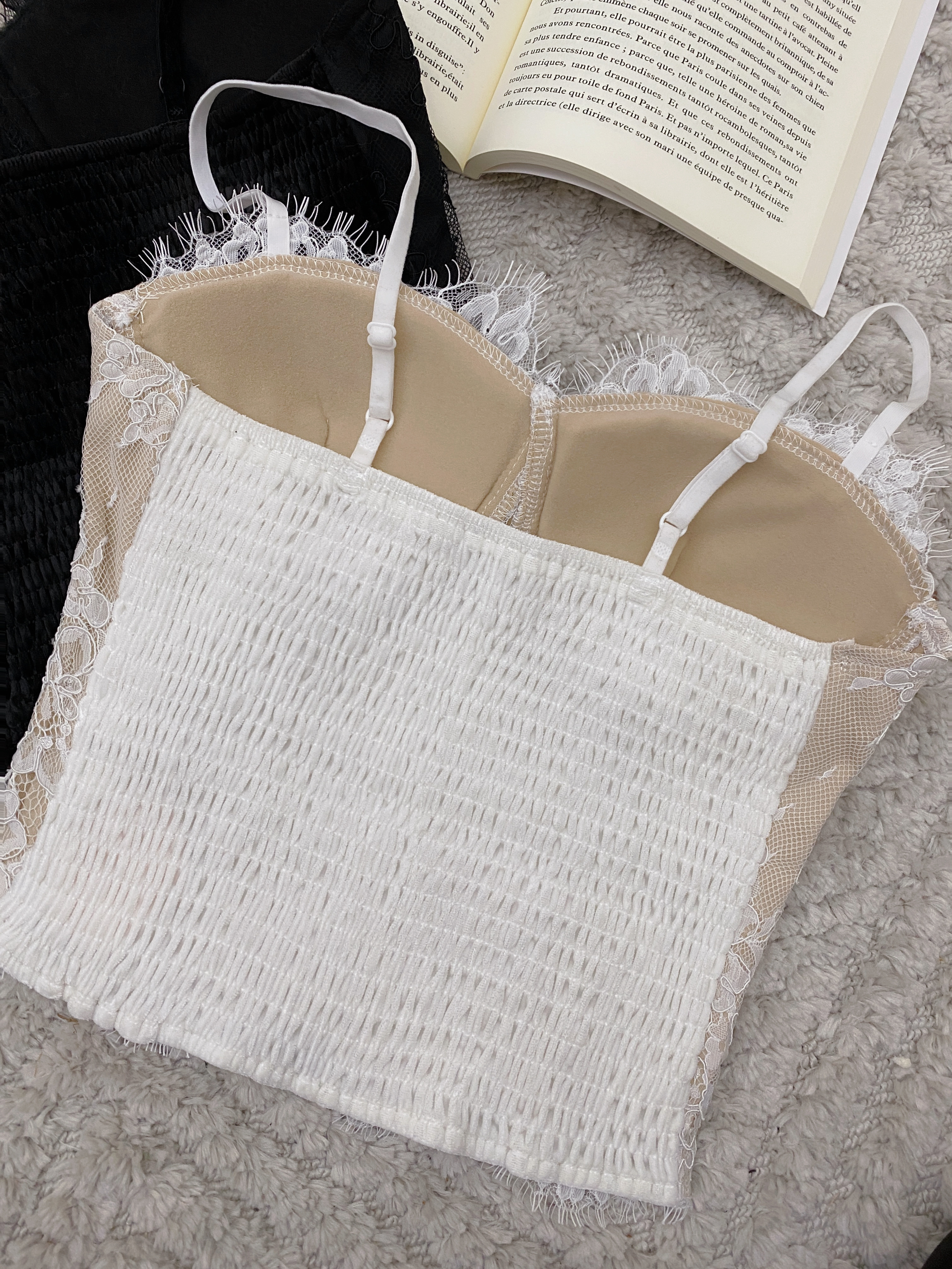 歐式性感 細肩蕾絲綁帶磨毛馬甲