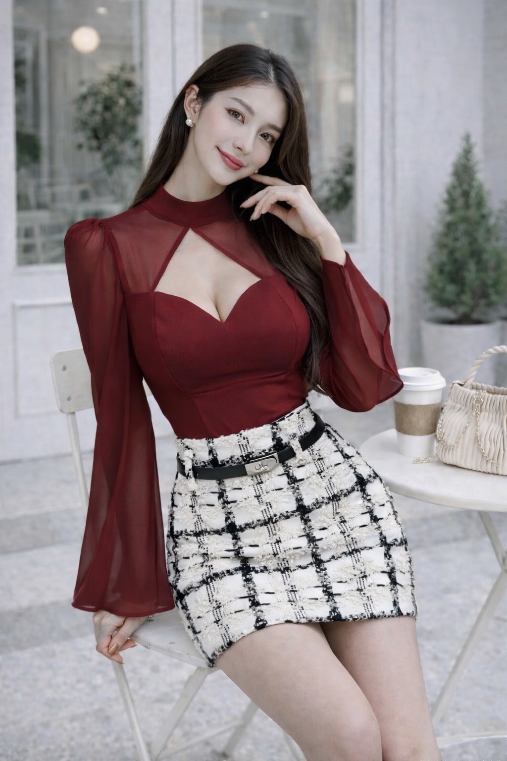 火辣性感 桃心網紗長袖上衣