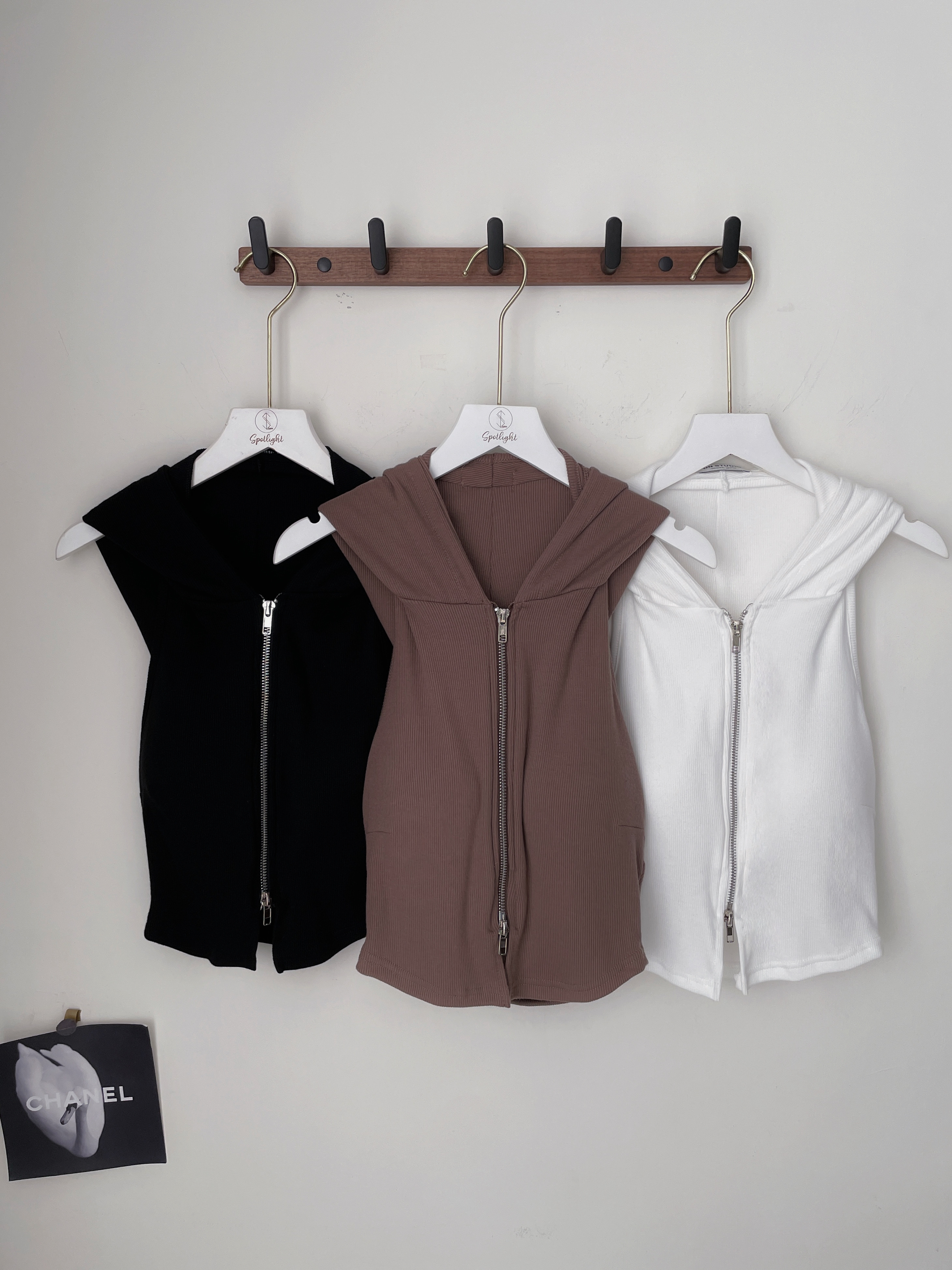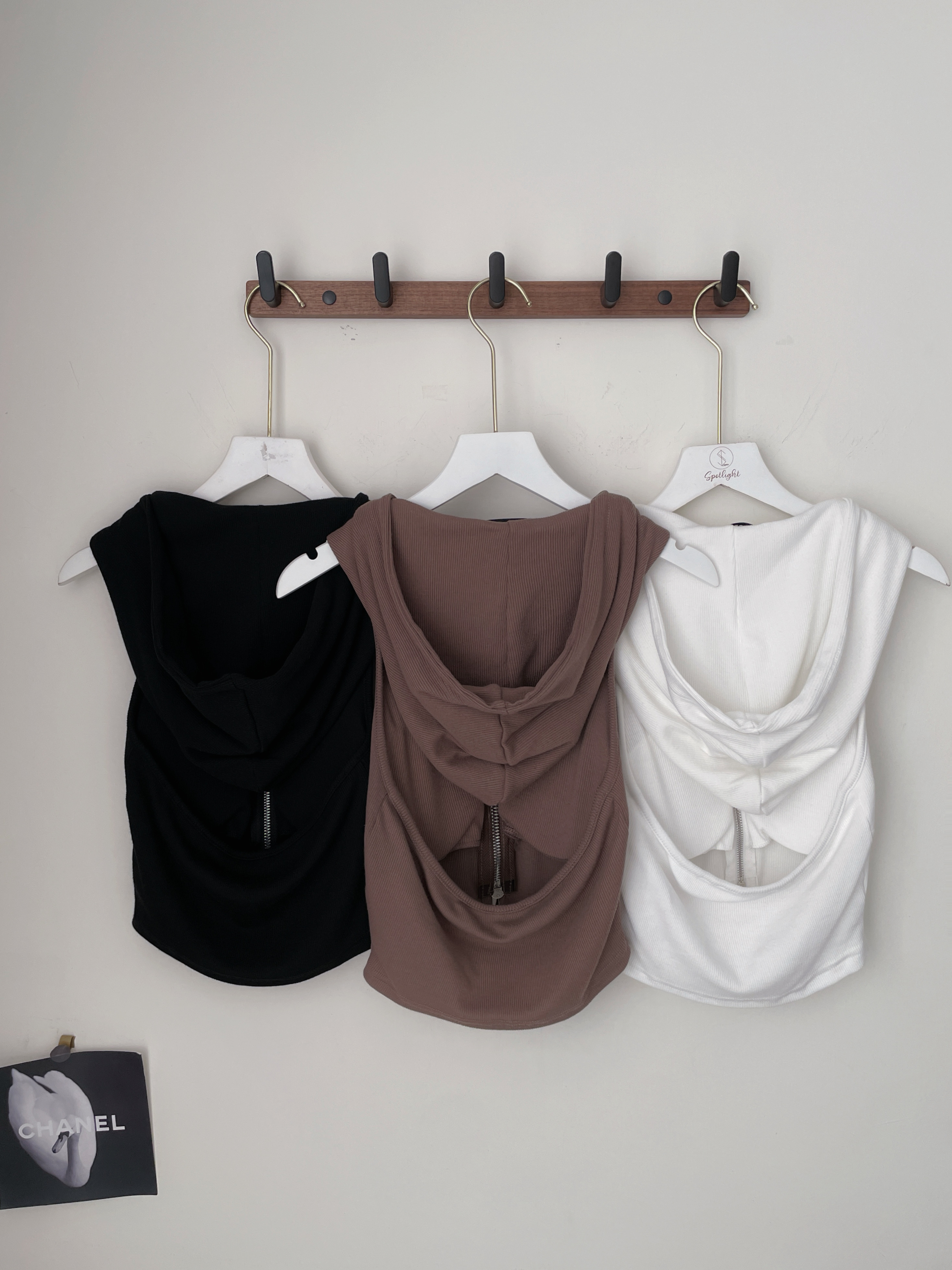 百搭單品 削肩雙拉鏈連帽罩杯背心